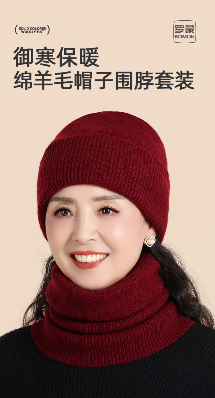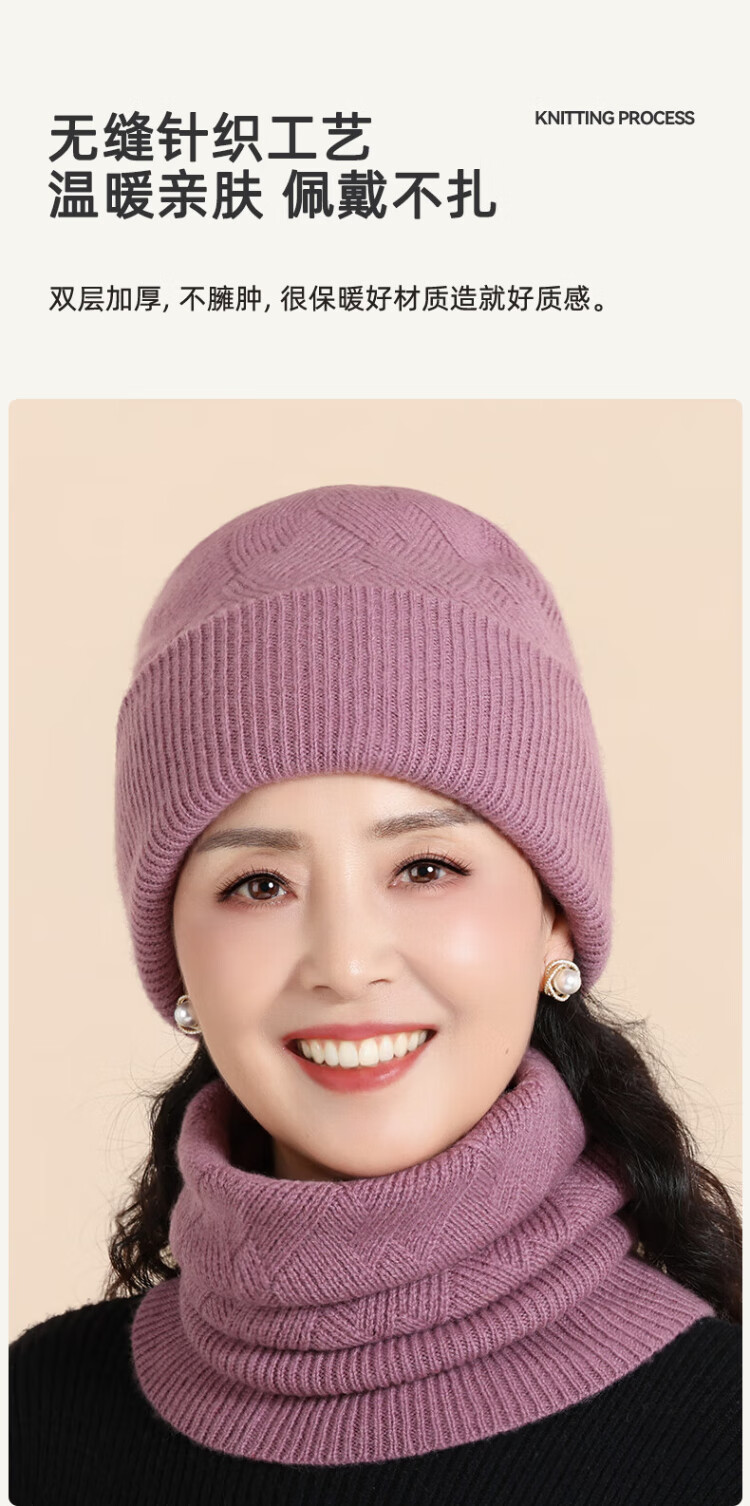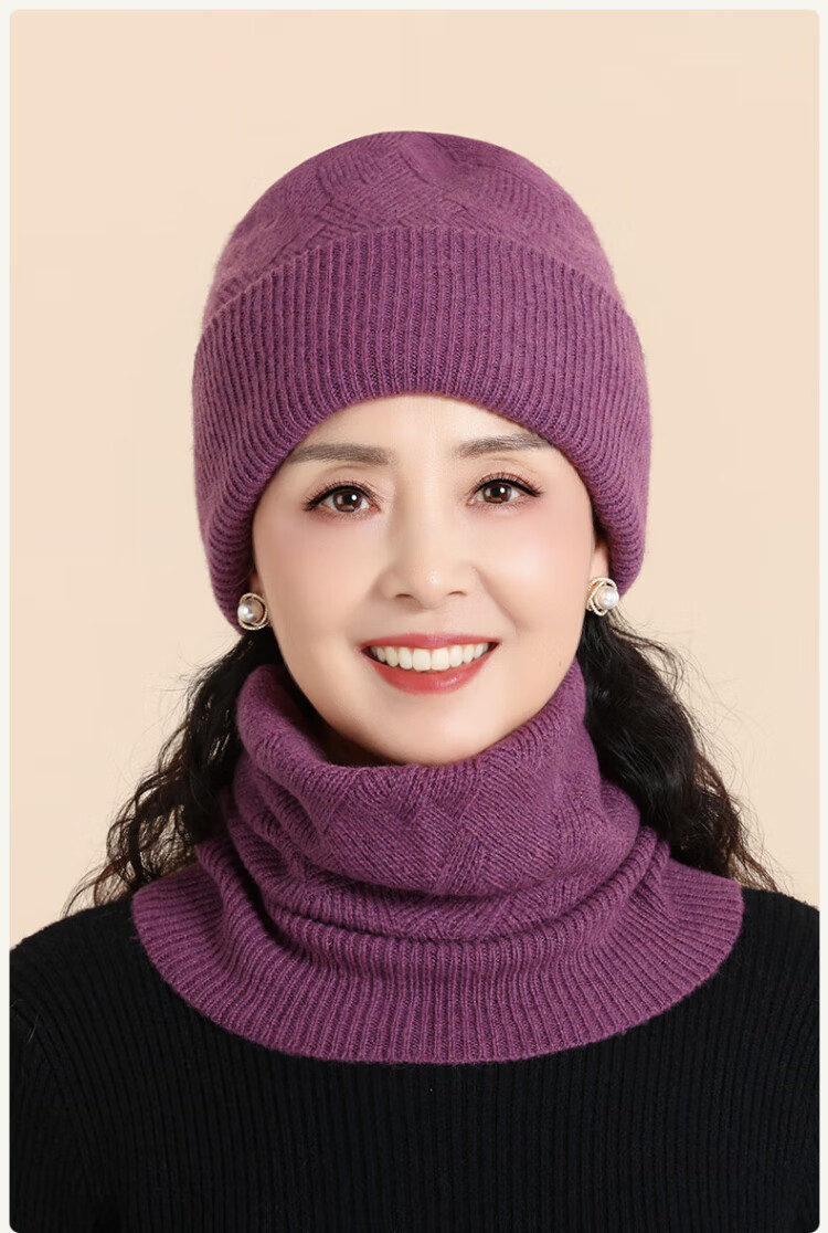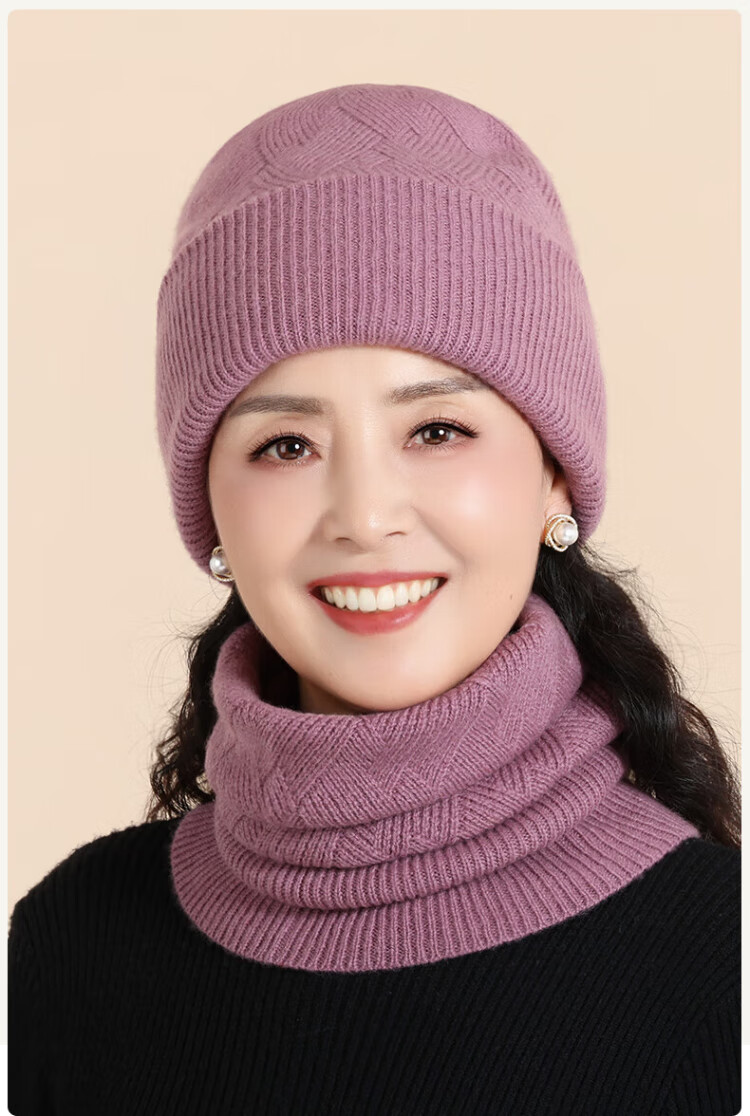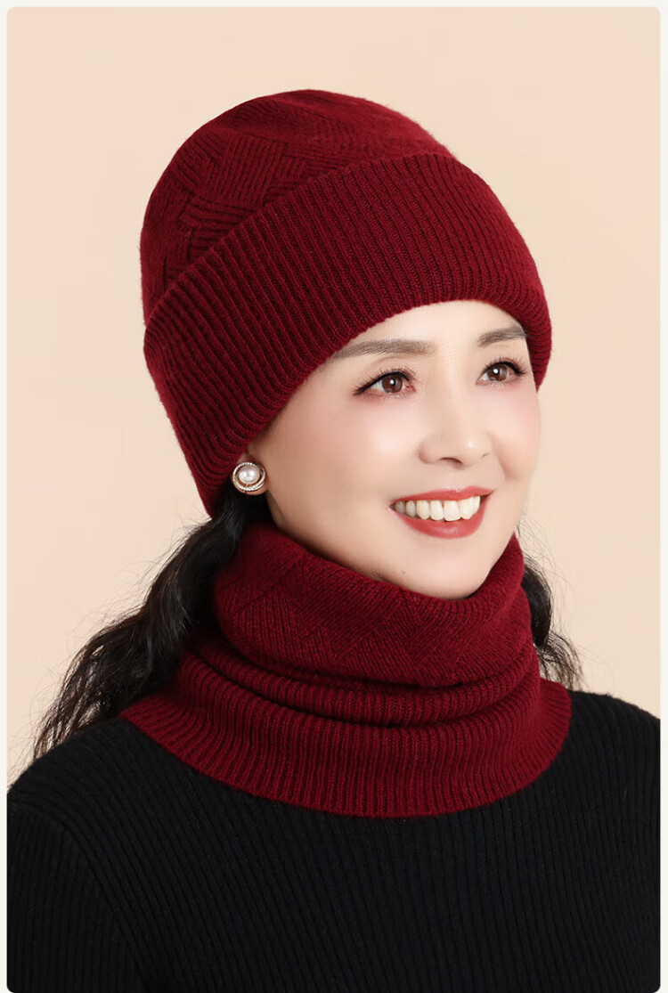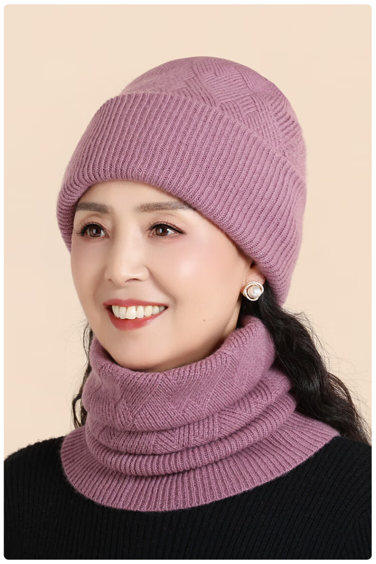 Lomon wool woolen hat and scarf suit for women in winter middle-aged and elderly elderly grandma and old lady knitted warm hat