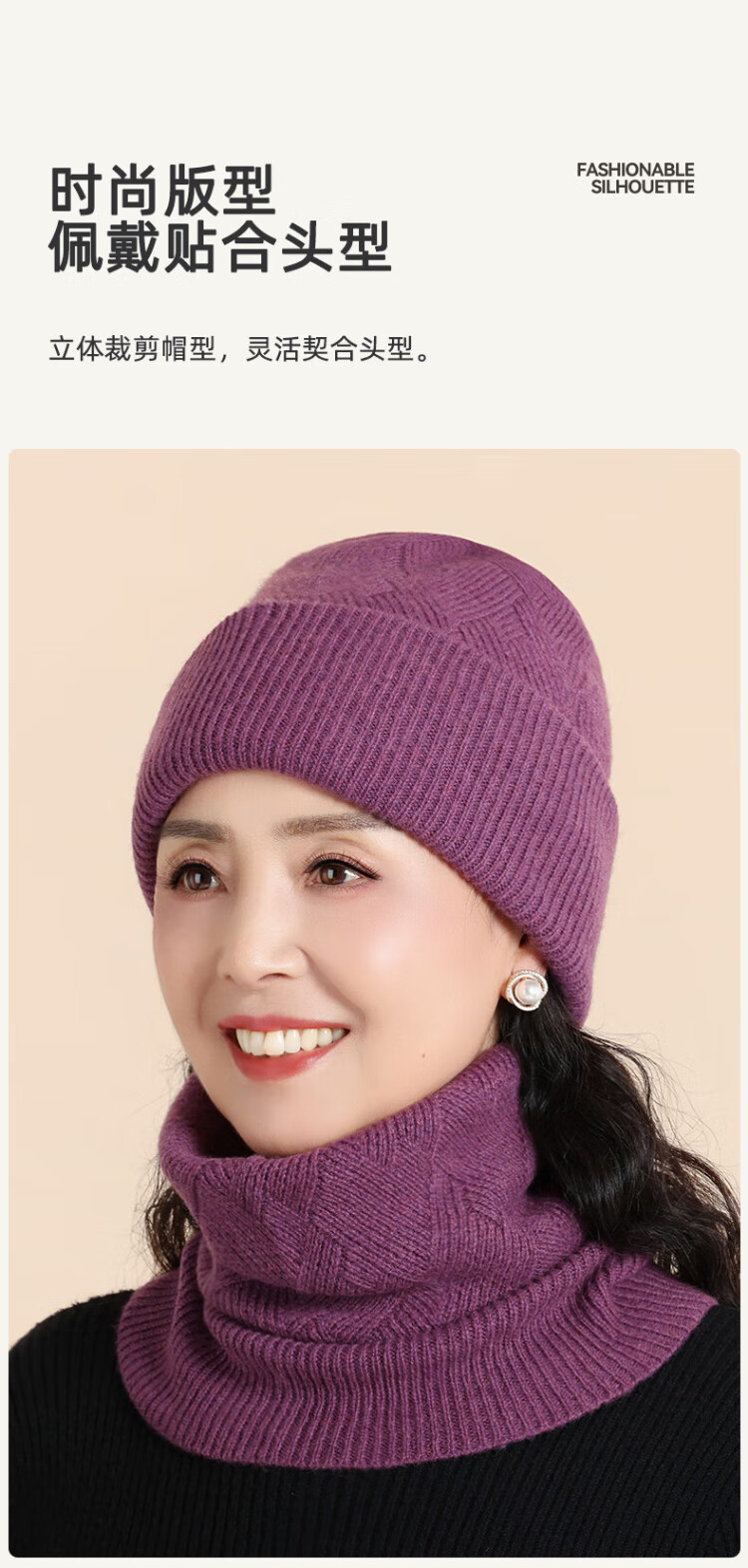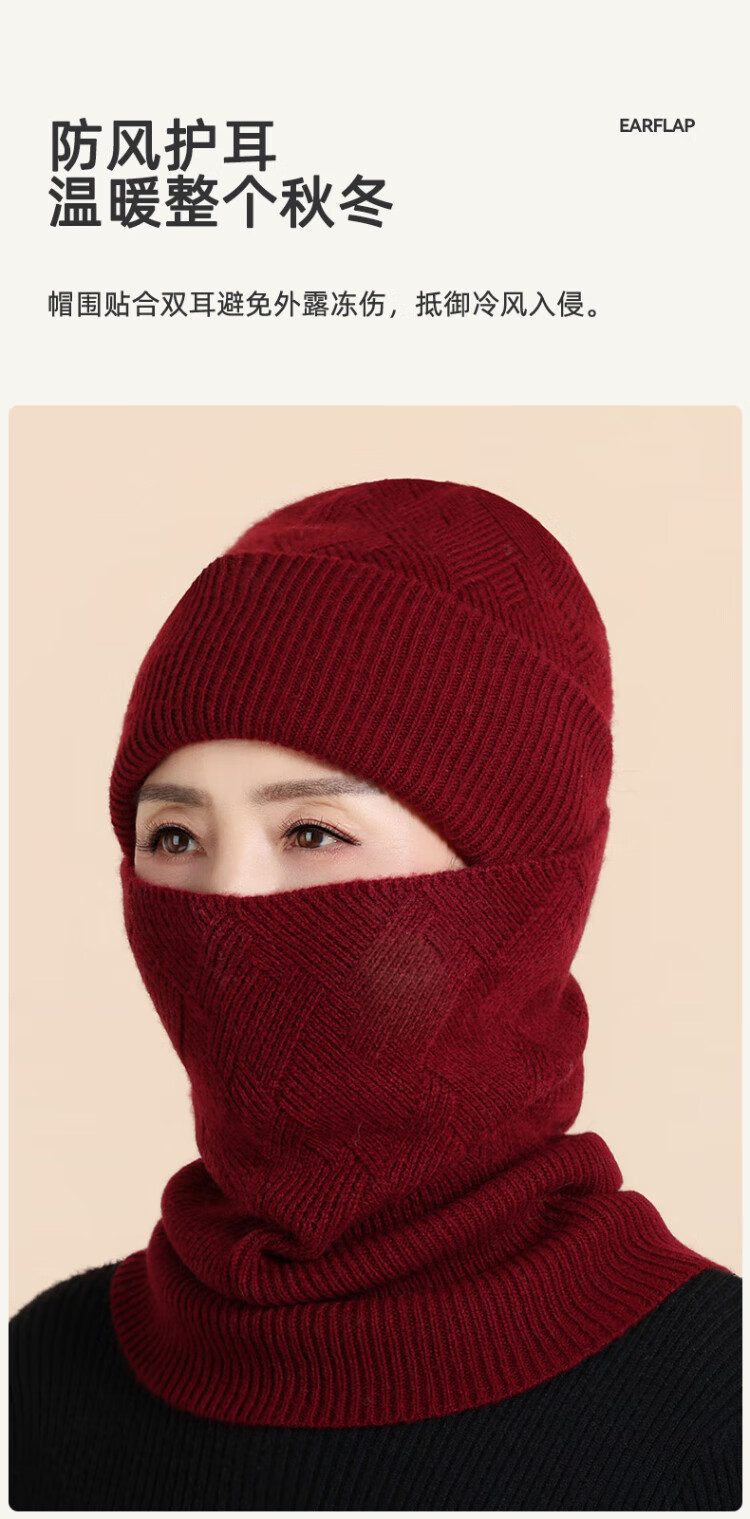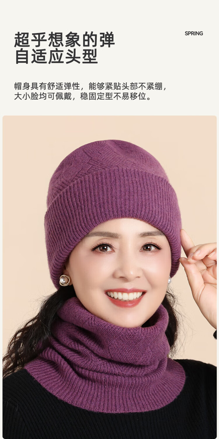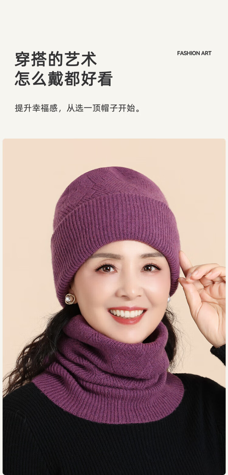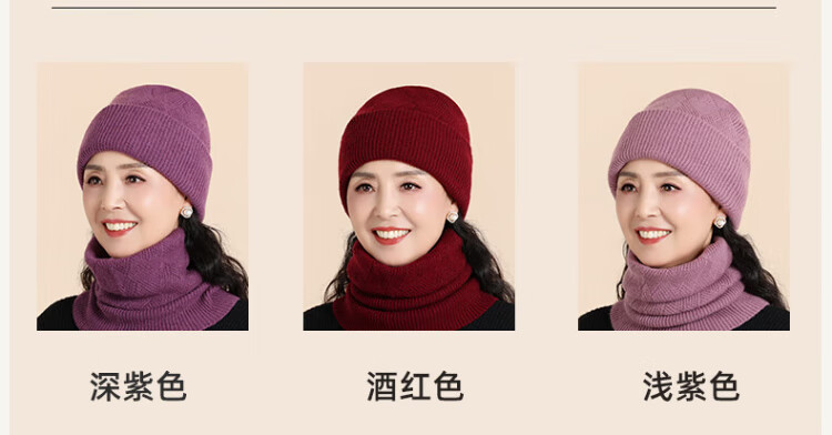 Lomon wool woolen hat and scarf suit for women in winter middle-aged and elderly elderly grandma and old lady knitted warm hat