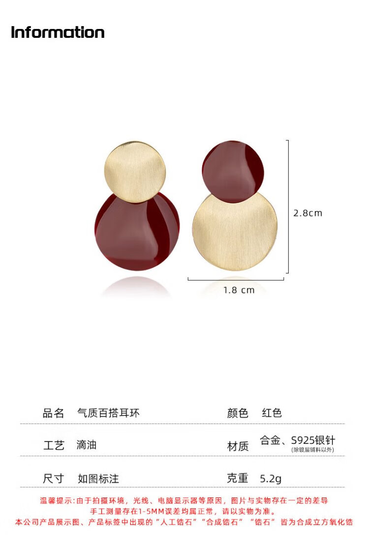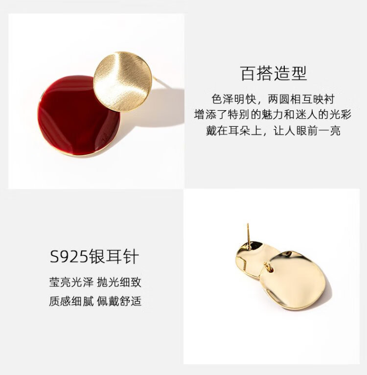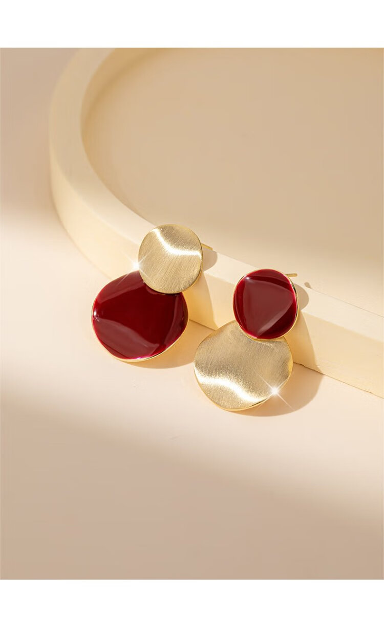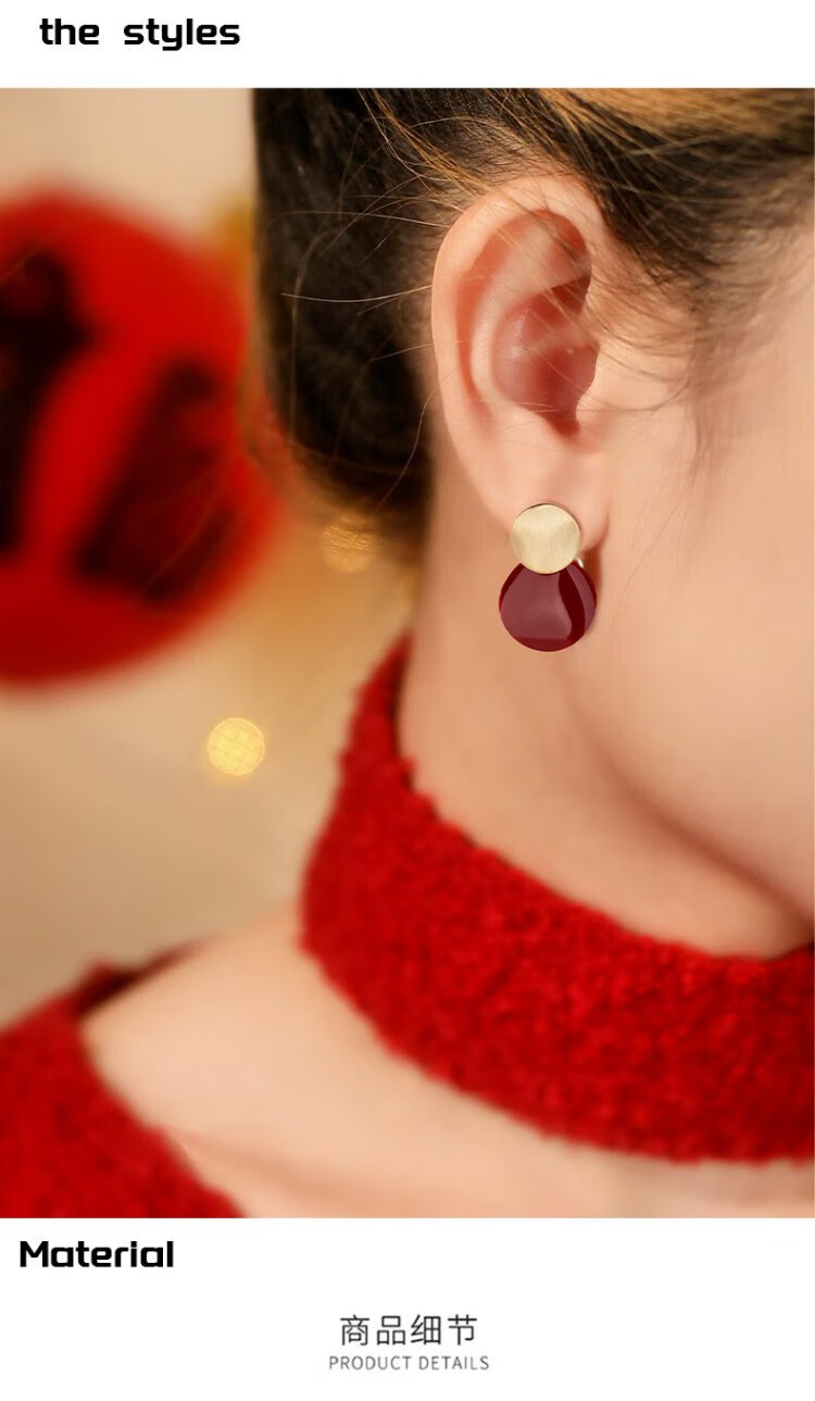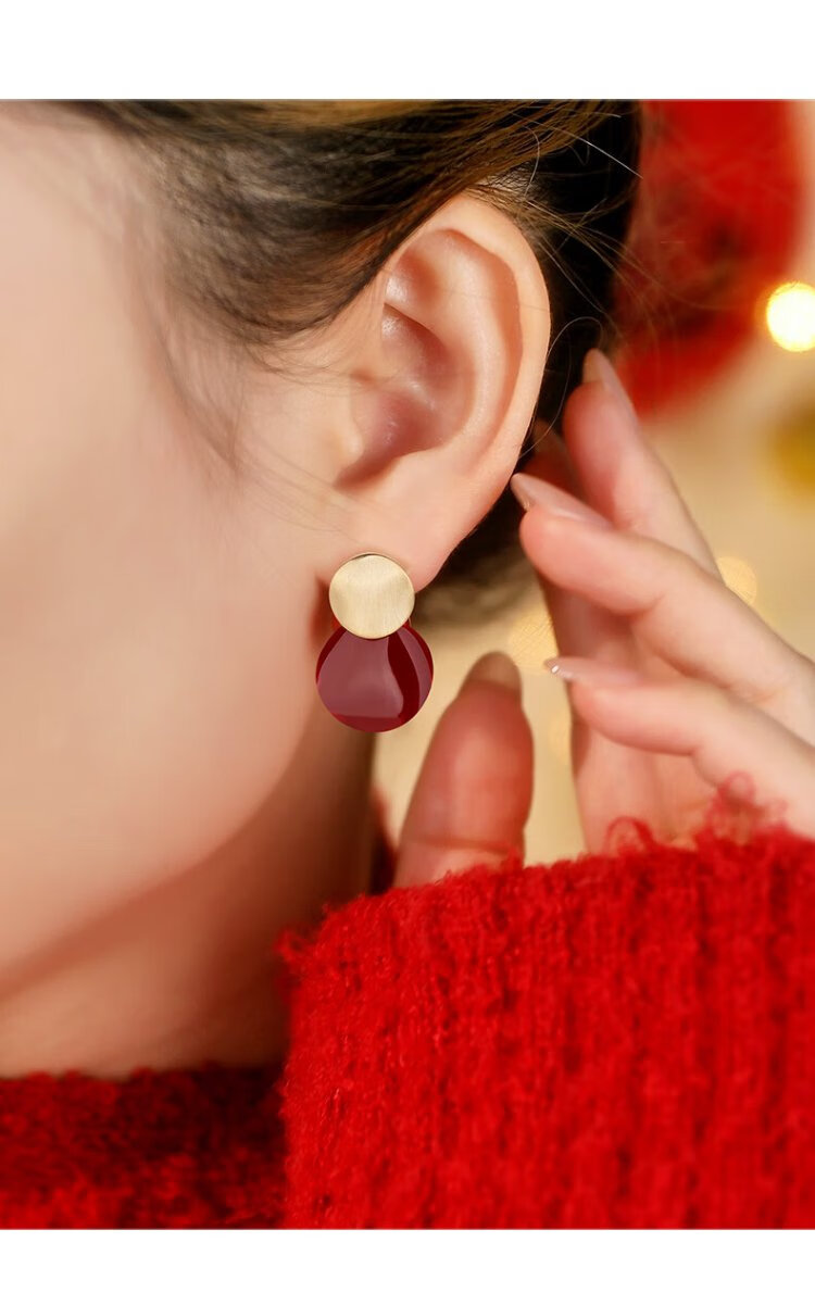 Yalundi sterling silver unique and beautiful red earrings feminine earrings 2025 new hot style high-end light luxury earrings autumn and winter