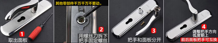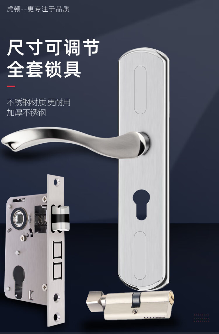 HOTUN indoor door lock stainless steel door lock adjustable lock wooden door bathroom toilet lock change handle complete set KTS04 single tongue