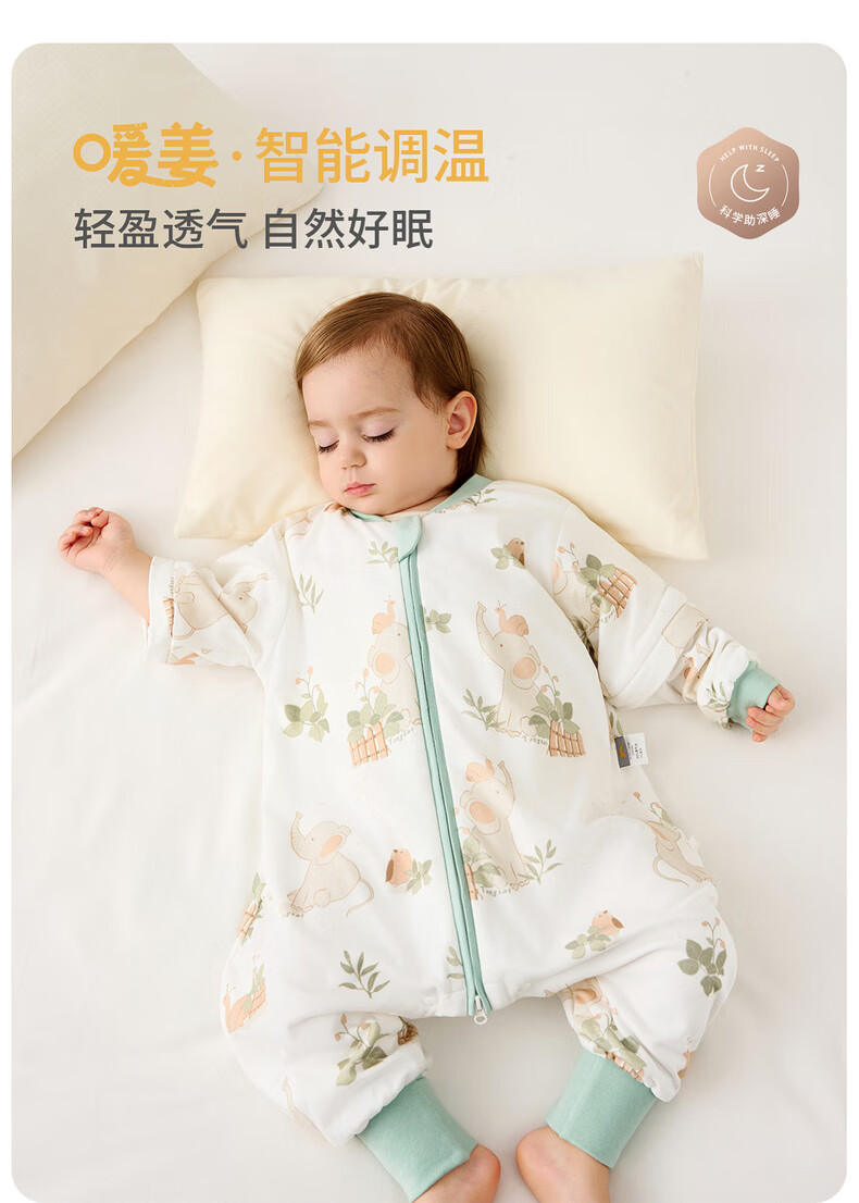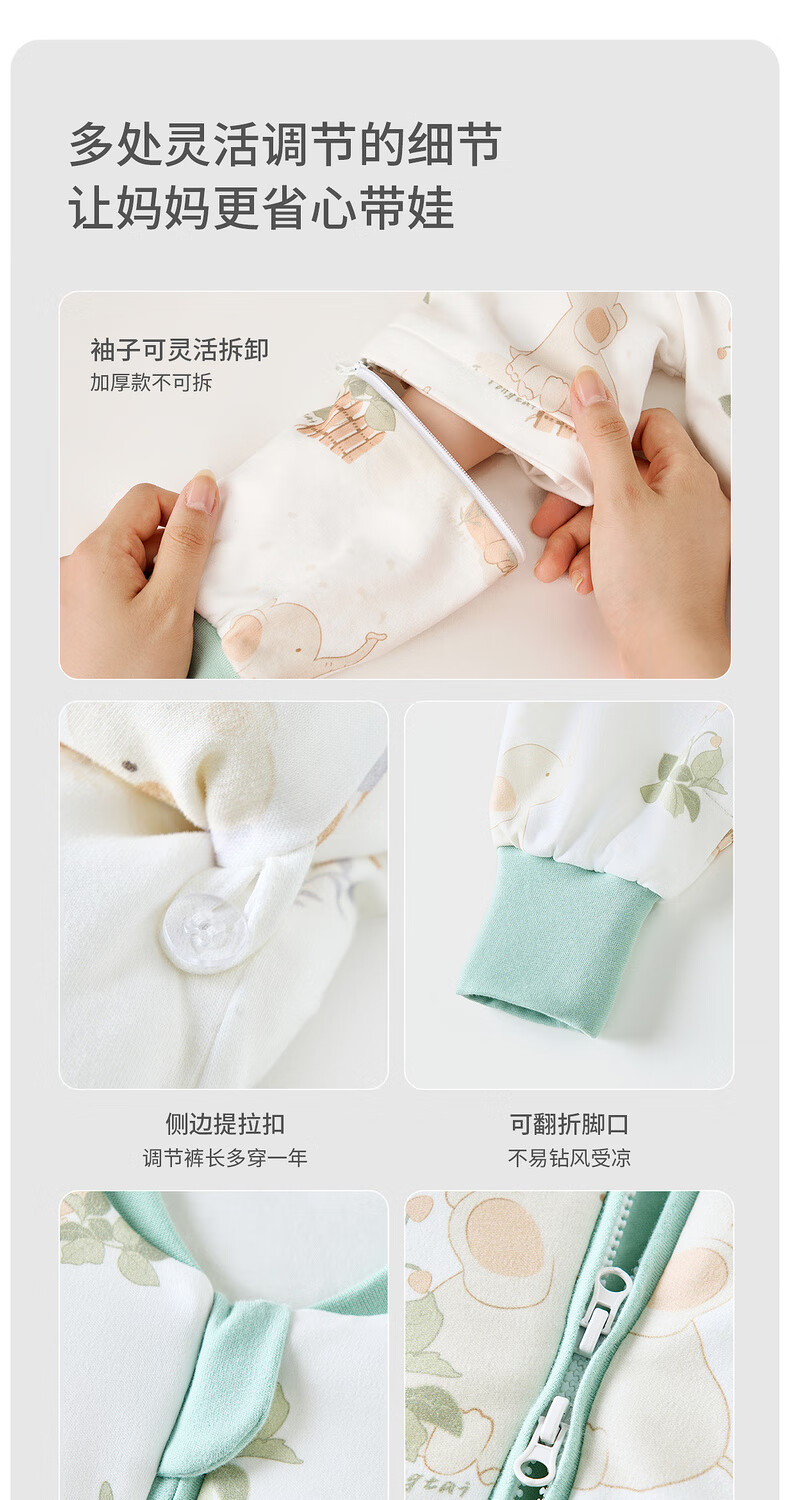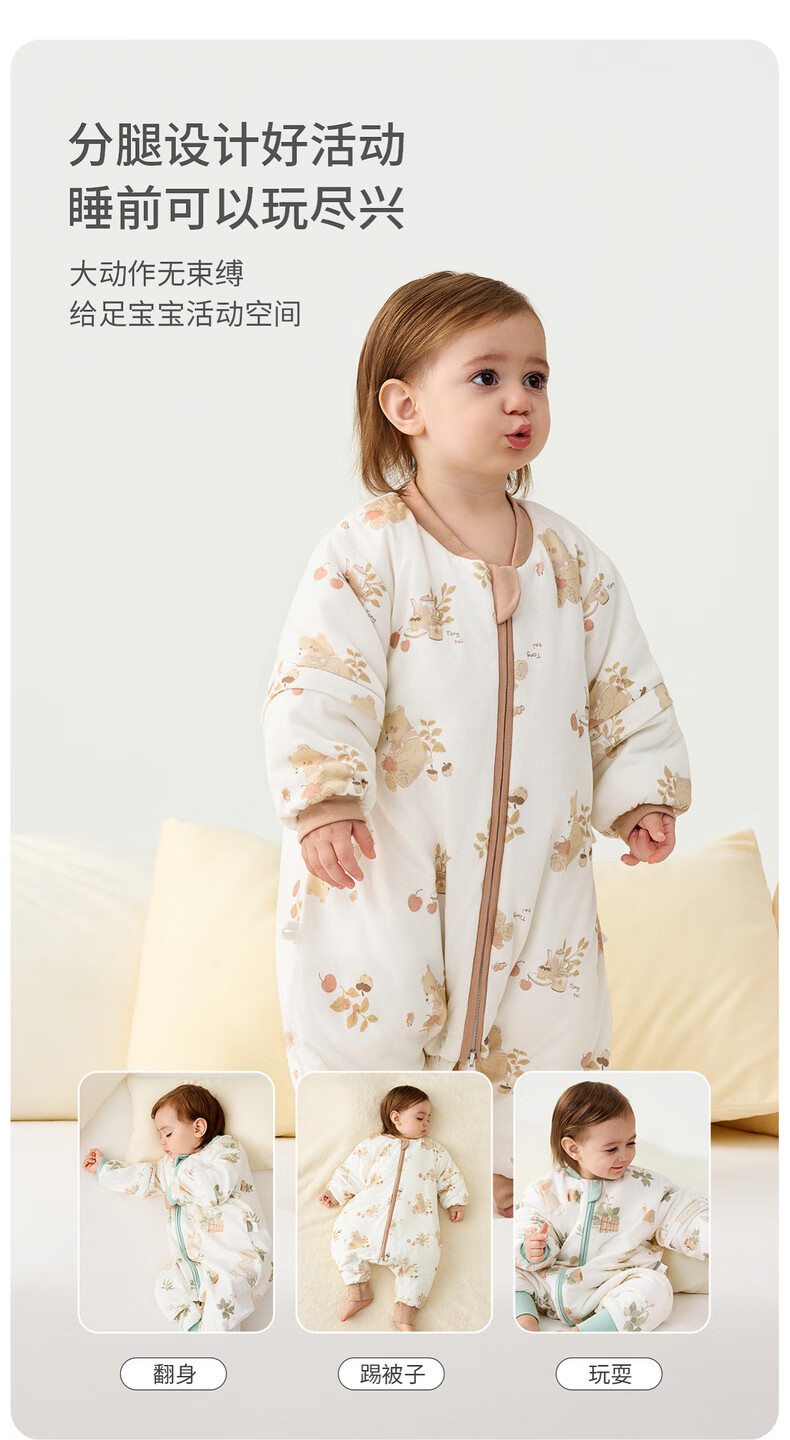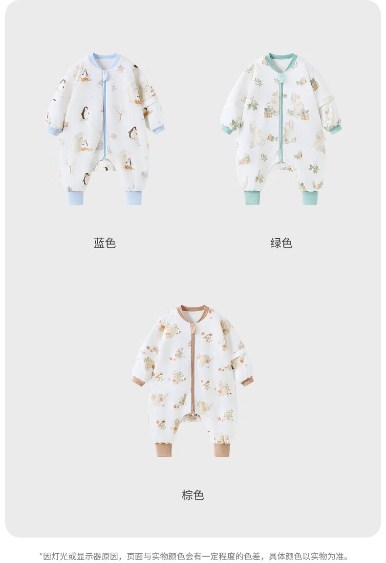 Tongtai (TONGTAI) baby autumn and winter double-layer sleeping bag pure cotton baby split-leg one-piece pajamas children's anti-jump and anti-kick quilt green M