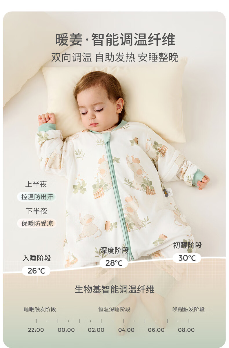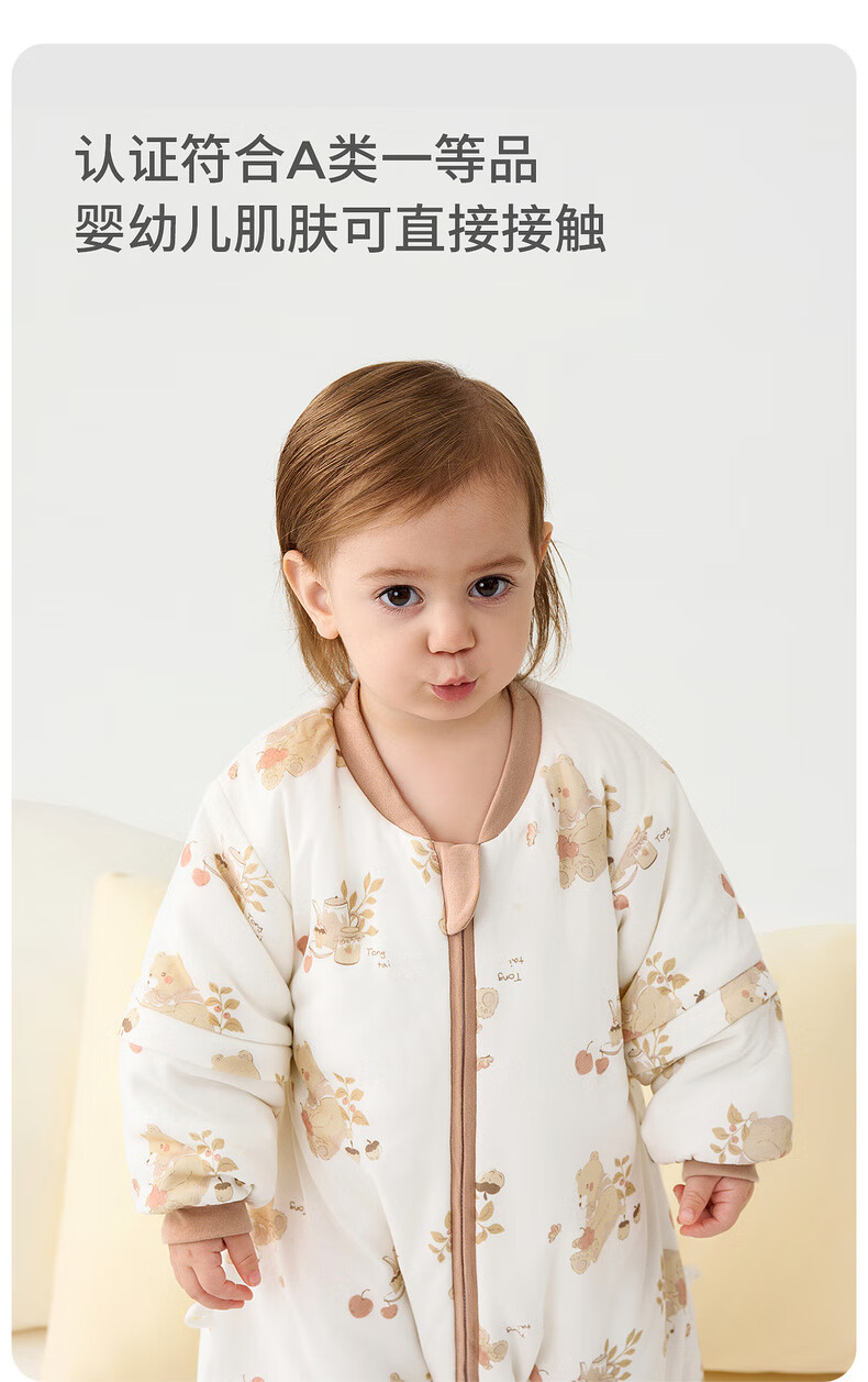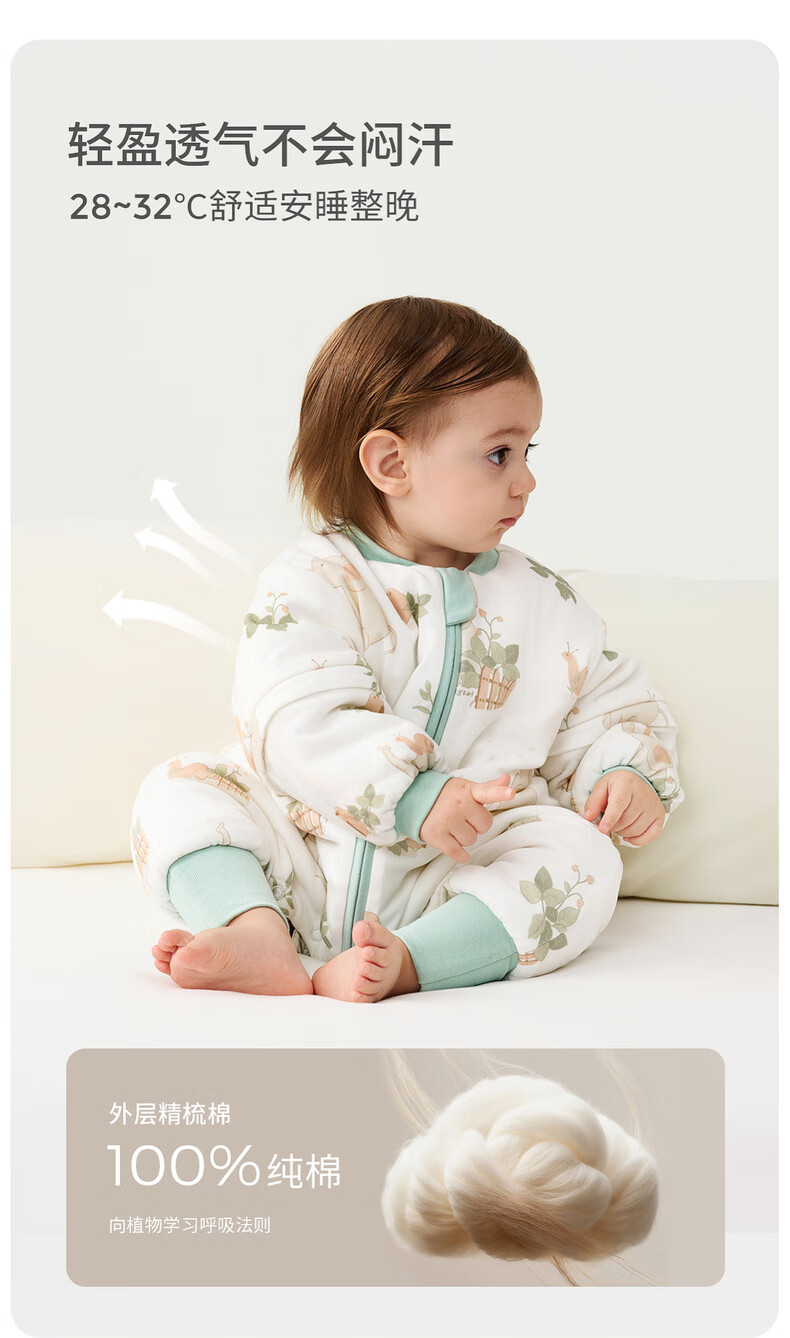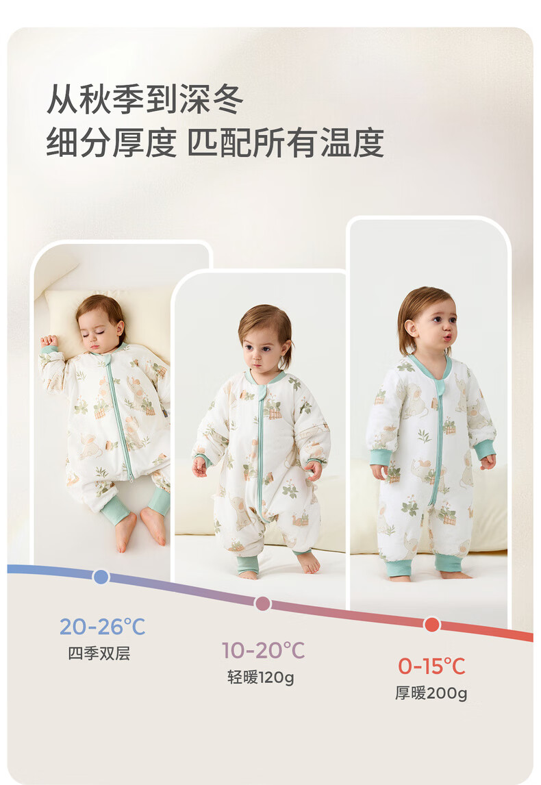 Tongtai (TONGTAI) baby autumn and winter double-layer sleeping bag pure cotton baby split-leg one-piece pajamas children's anti-jump and anti-kick quilt green M