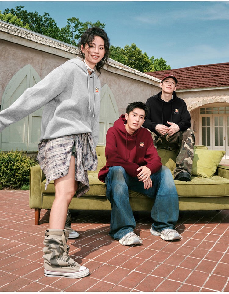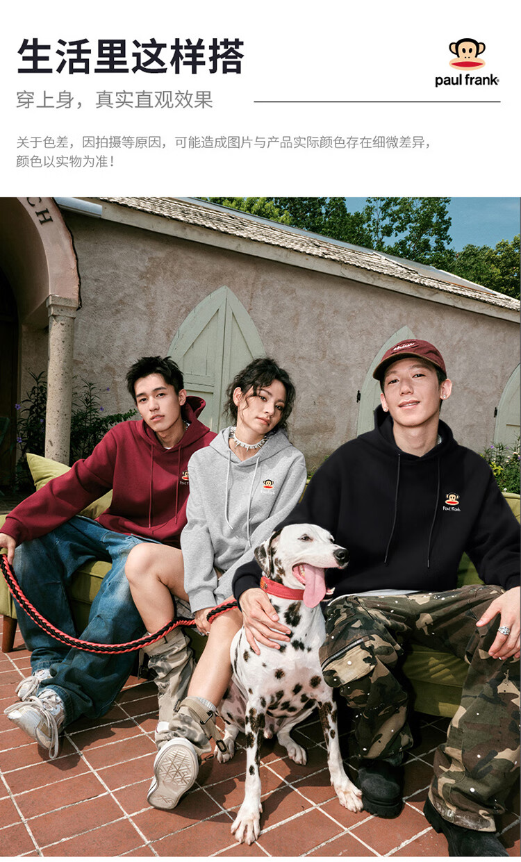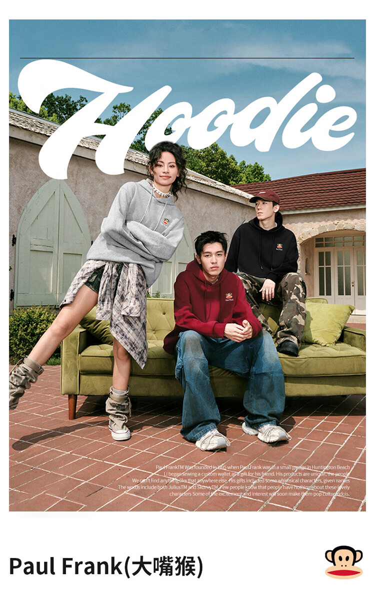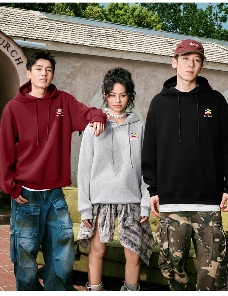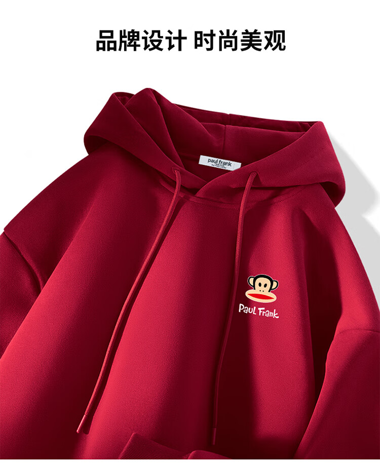 Big Mouth Monkey (paul frank) hooded sweatshirt for men and women, couple wear, winter red animal year jacket, men's top, burgundy XL