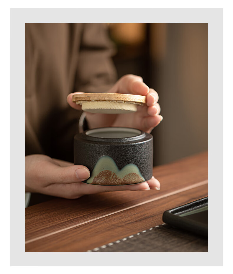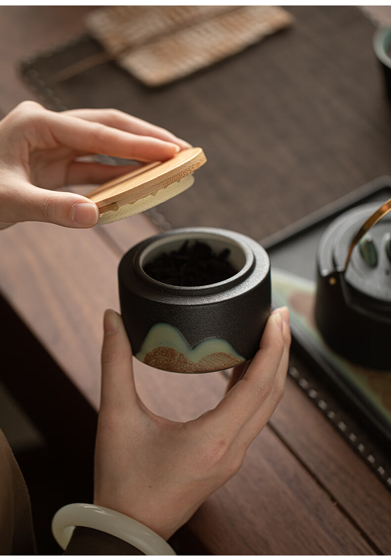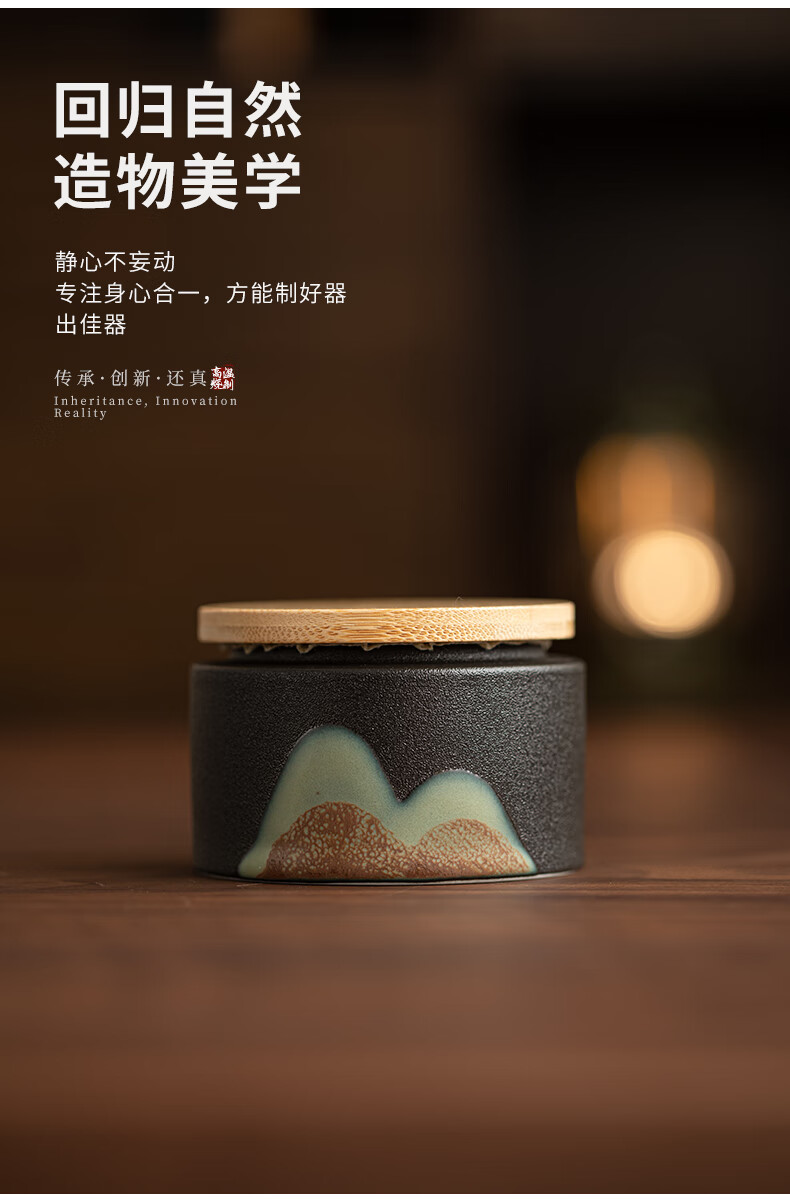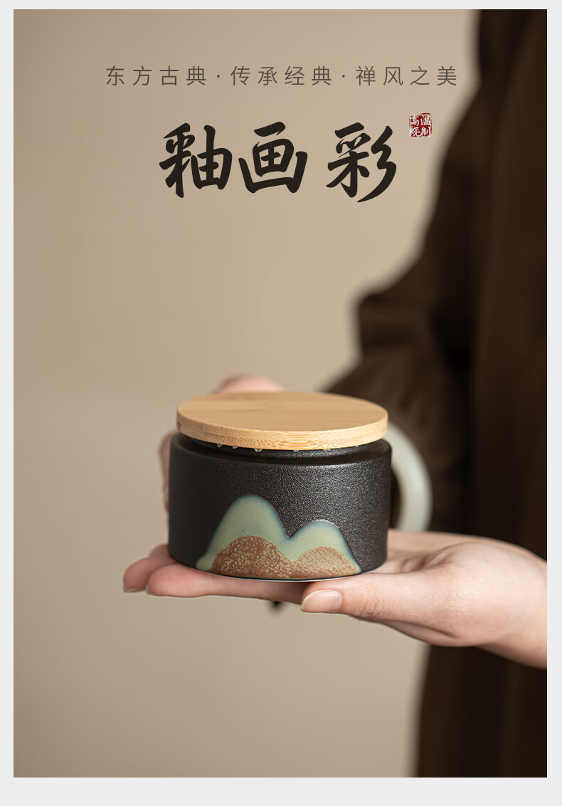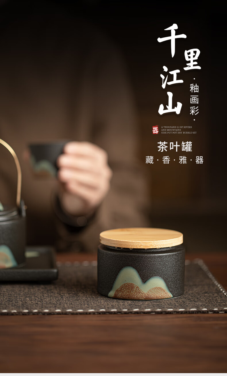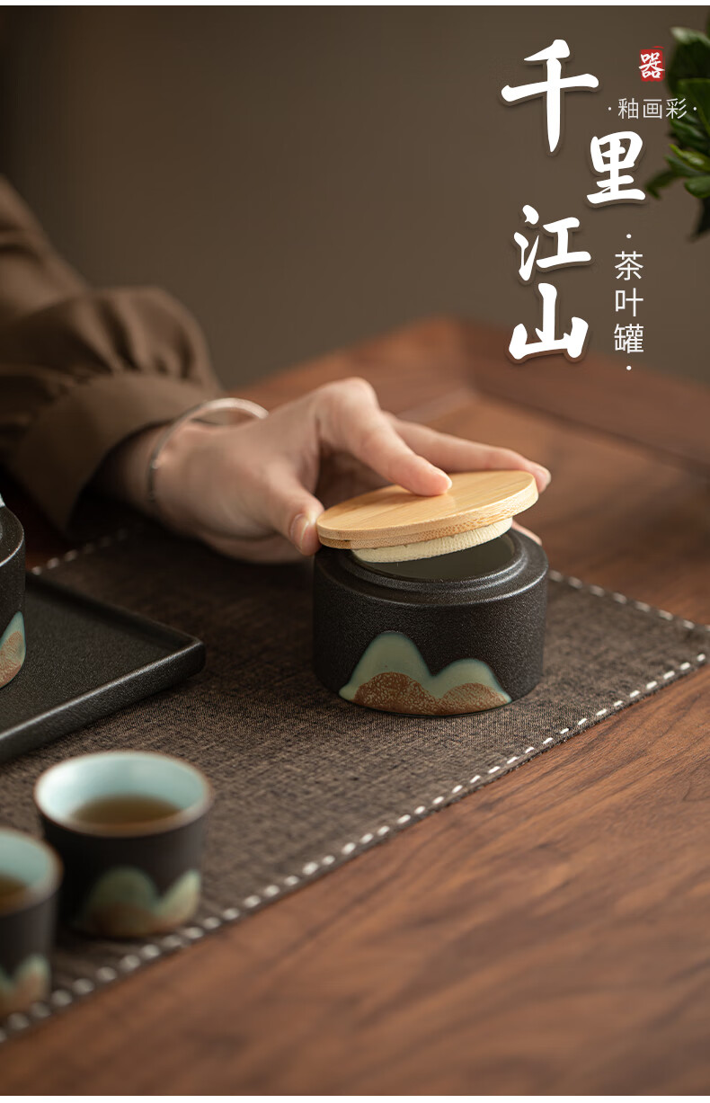 Su's ceramics hand-painted glaze colorful Qianli Jiangshan tea can sealed can (small size)