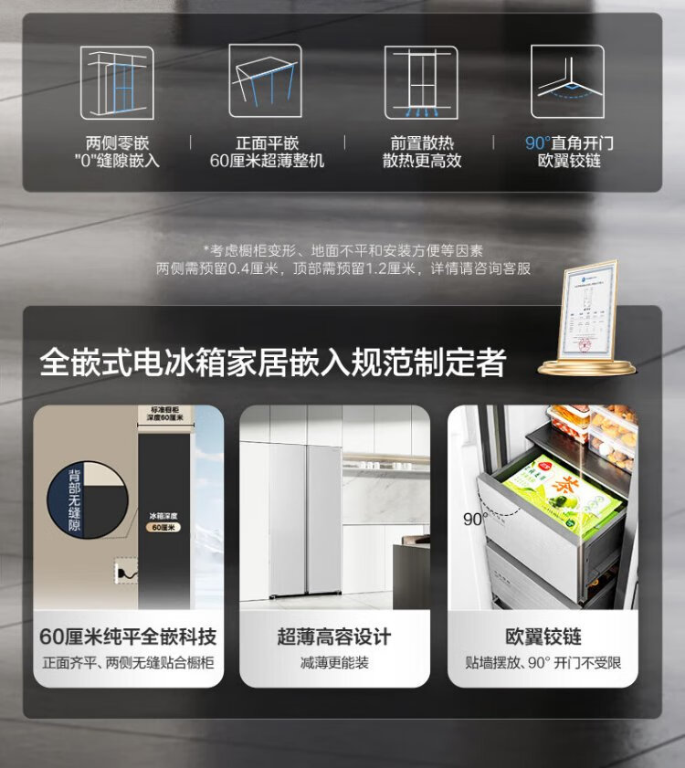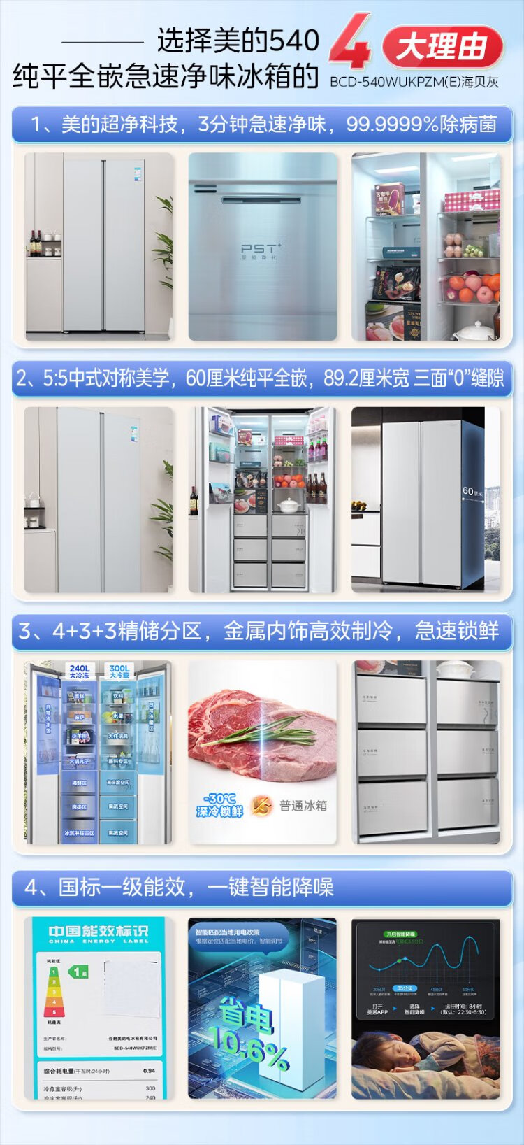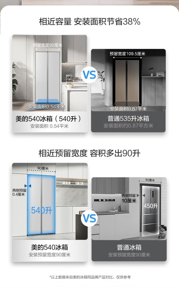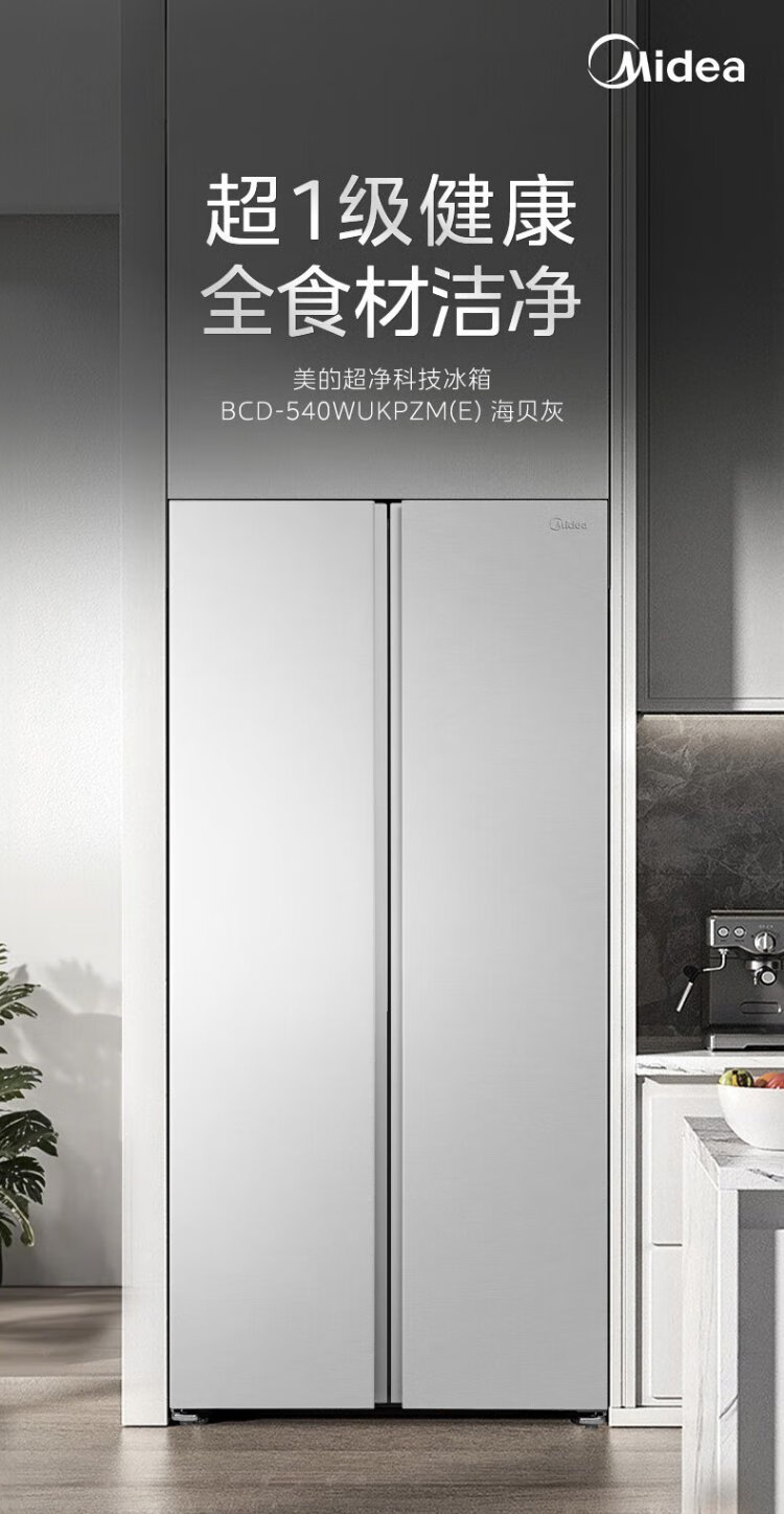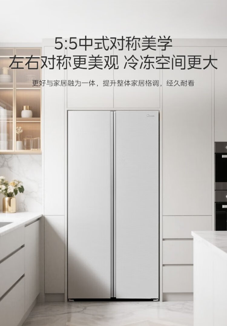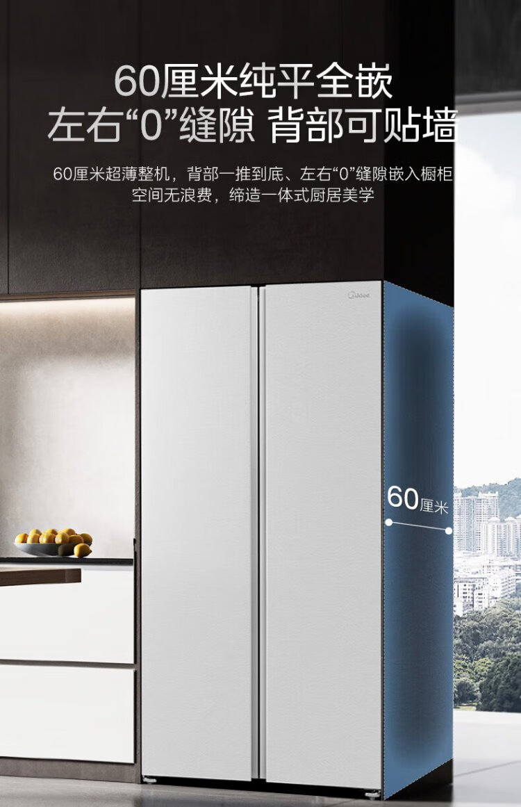 Midea M60 odor-free 540-liter double-door household refrigerator ultra-thin embedded first-class energy efficiency air-cooled frost-free BCD-540WUKPZM (E) national subsidy 20%
