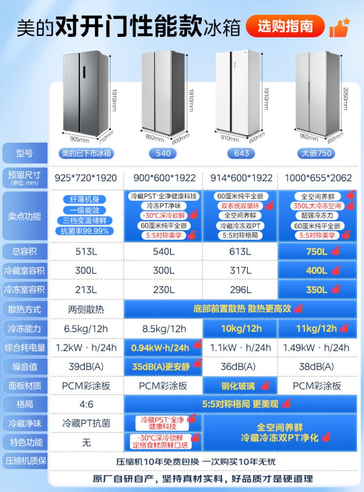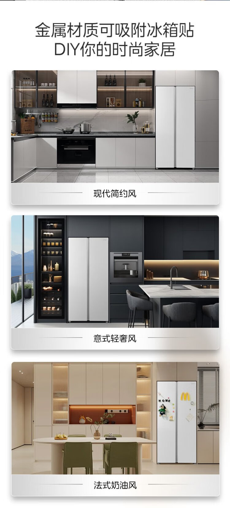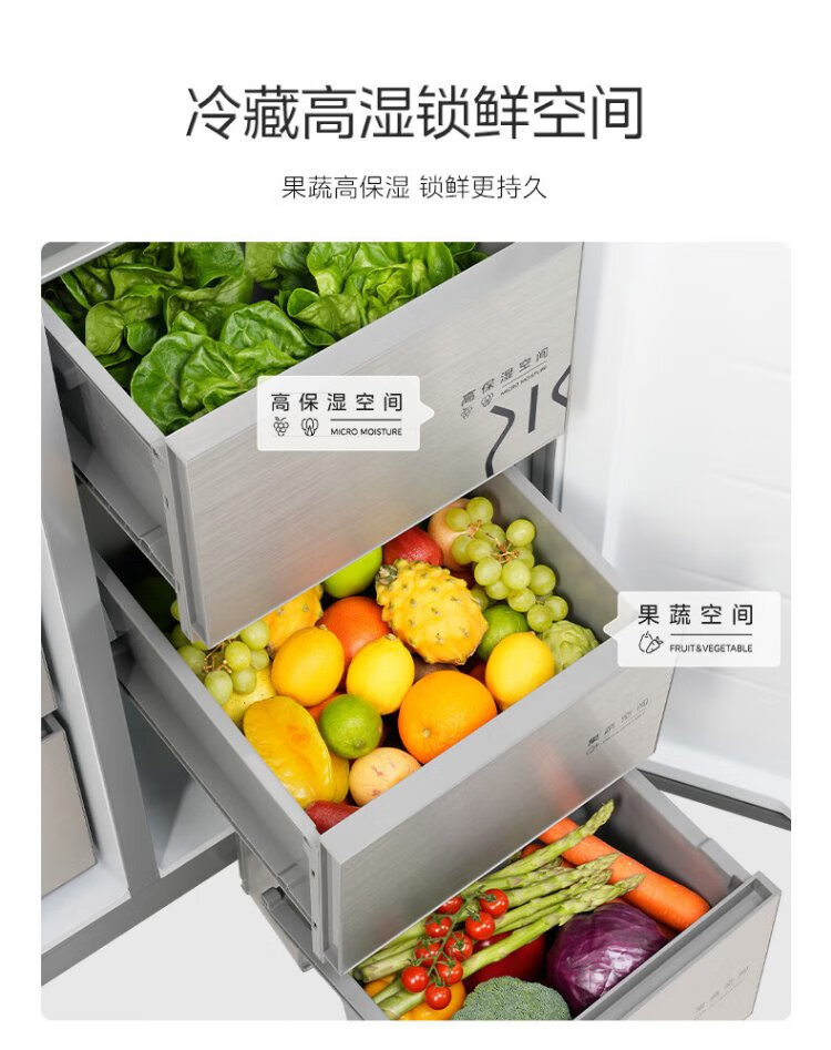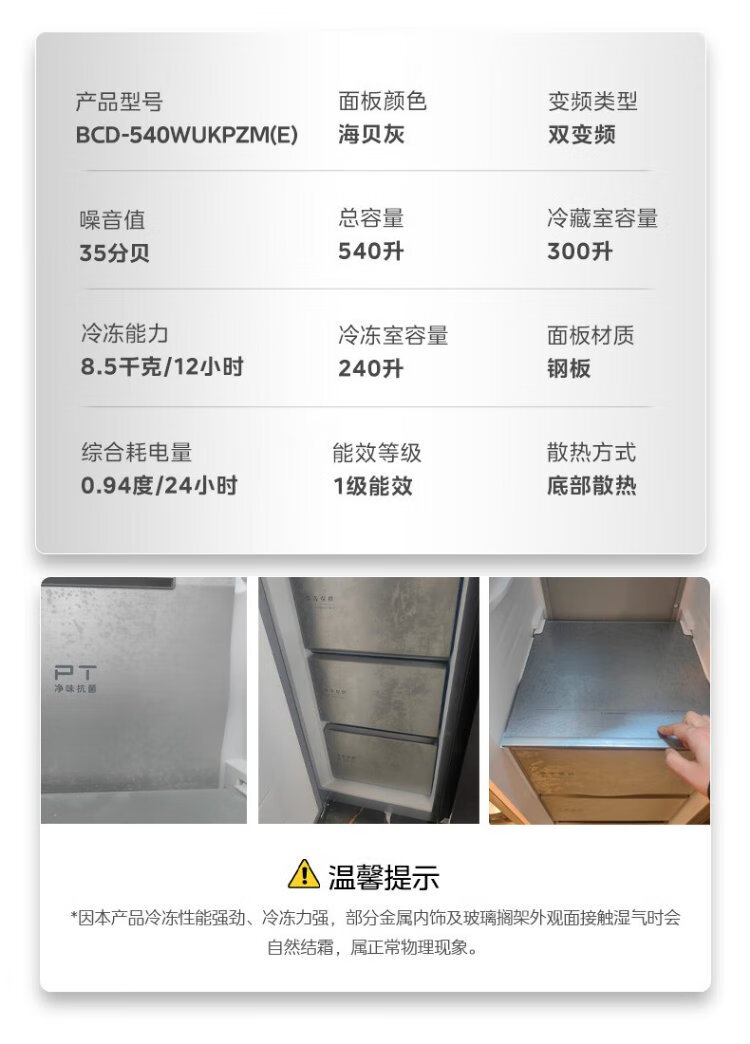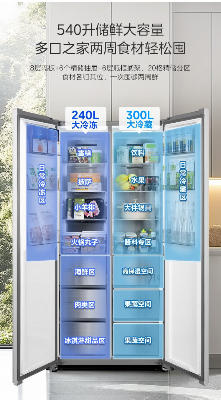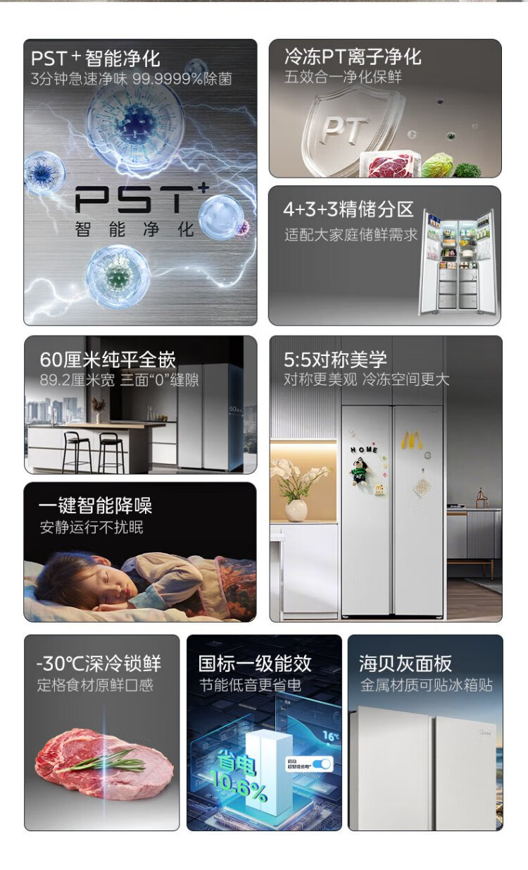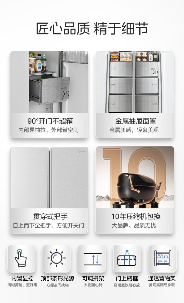 Midea M60 odor-free 540-liter double-door household refrigerator ultra-thin embedded first-class energy efficiency air-cooled frost-free BCD-540WUKPZM (E) national subsidy 20%