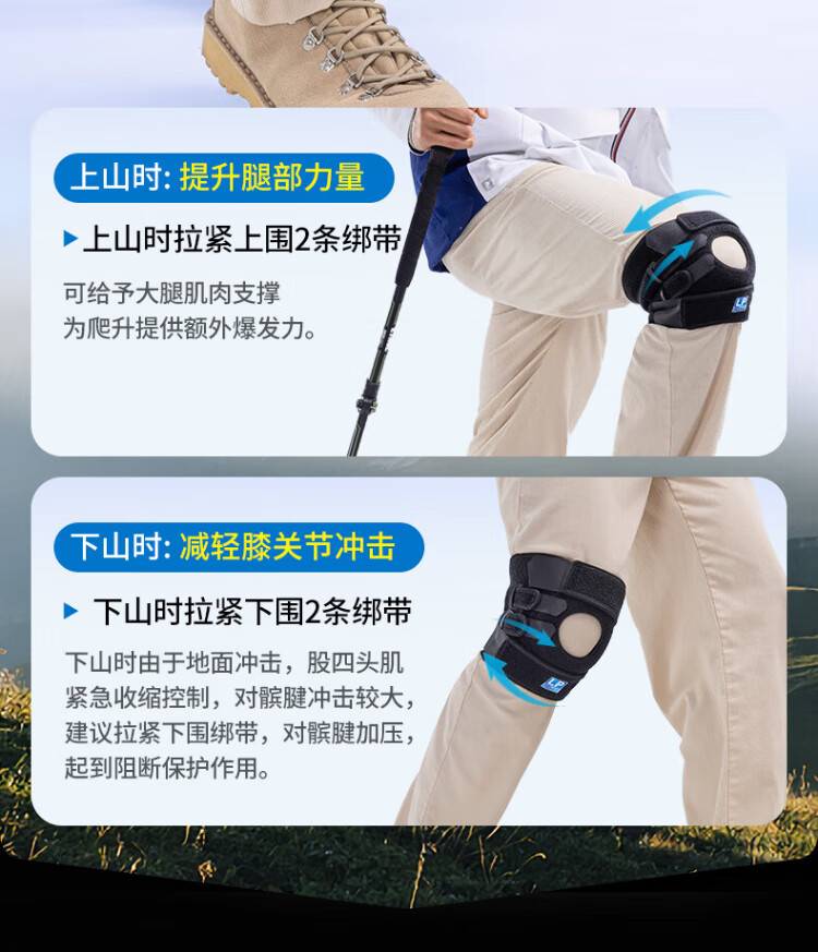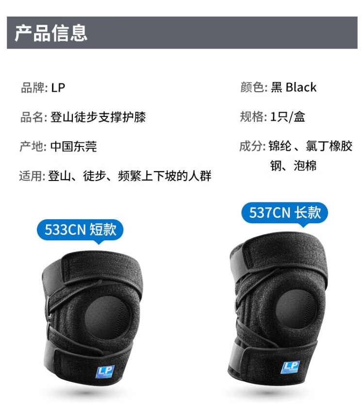 LP537CN professional strong protection sports knee pads with four spring support for heavy-duty mountaineering and hiking knees with stable and load-reducing one-size-fits-all