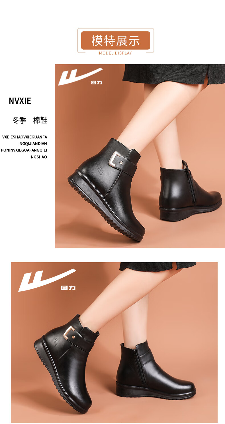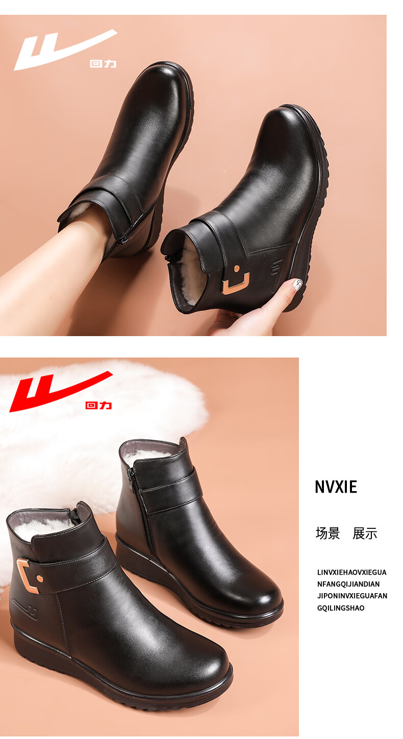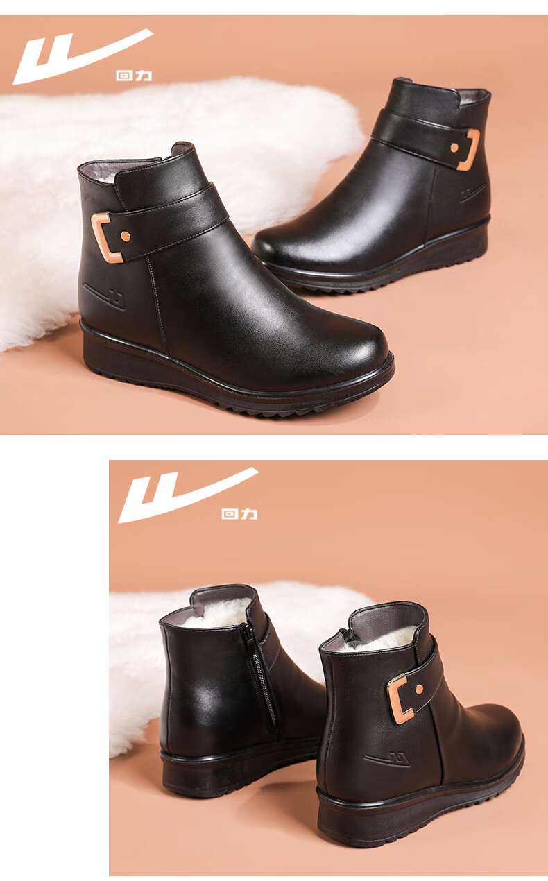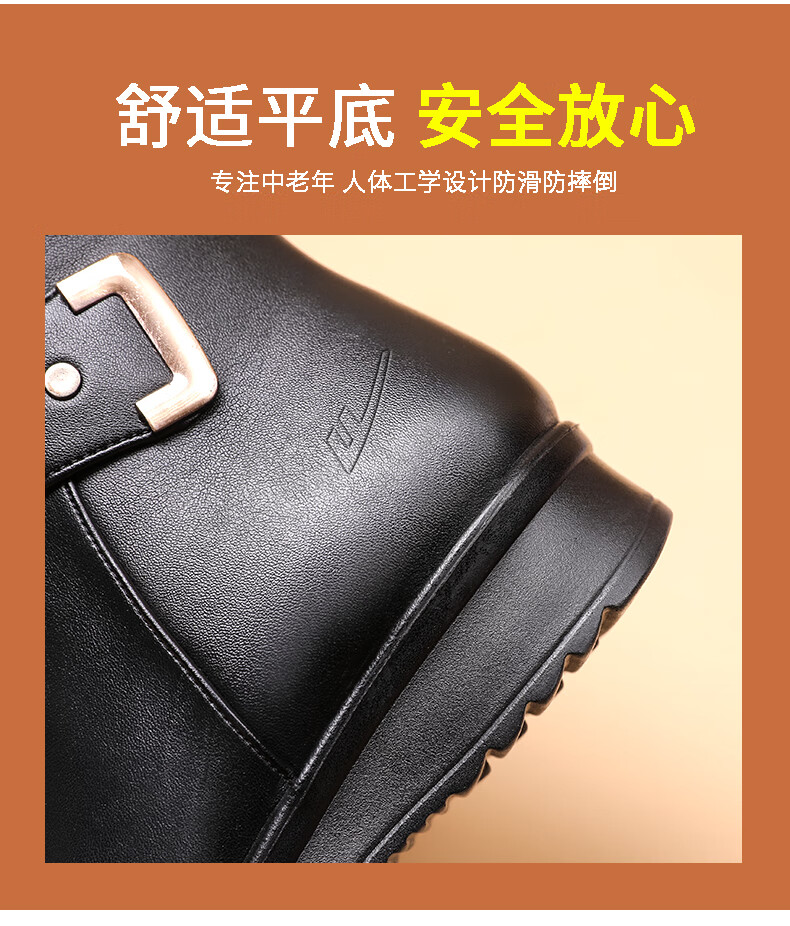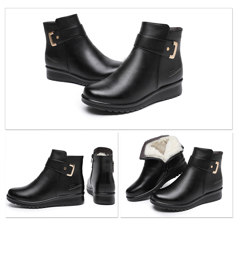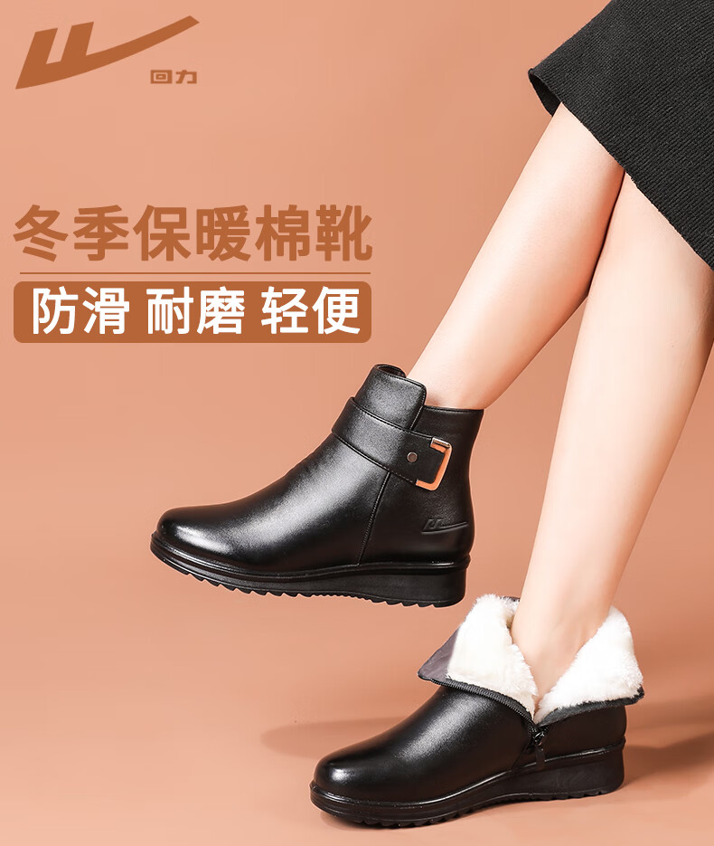 Pull-back mother's shoes, winter cotton shoes, velvet, non-slip, warm, elderly short boots, middle-aged women's leather shoes, middle-aged 0871 black 37