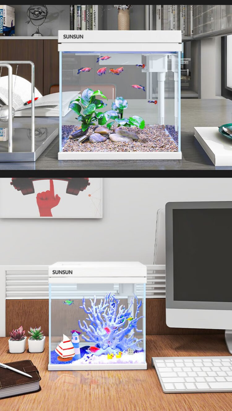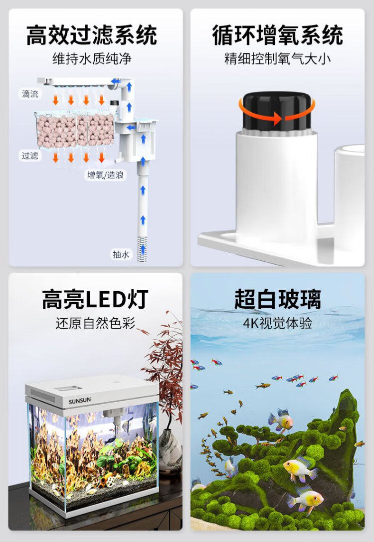 SUNSUN ultra-white fish tank integrated tank self-circulating living room desktop small home aquarium HEJ-380