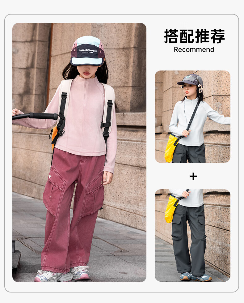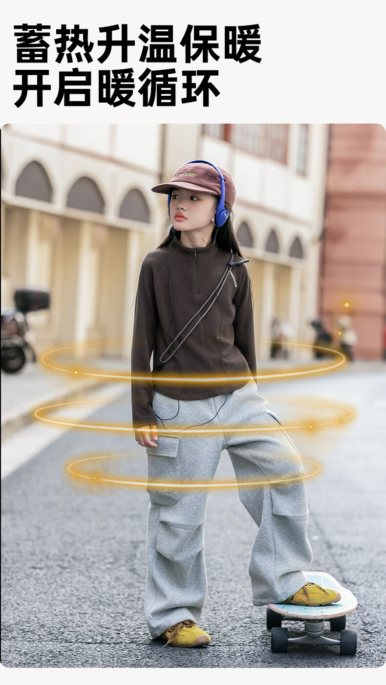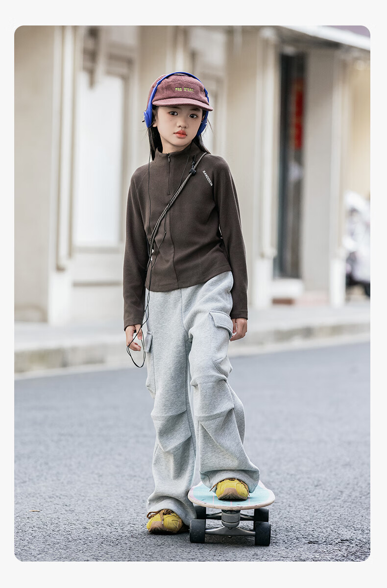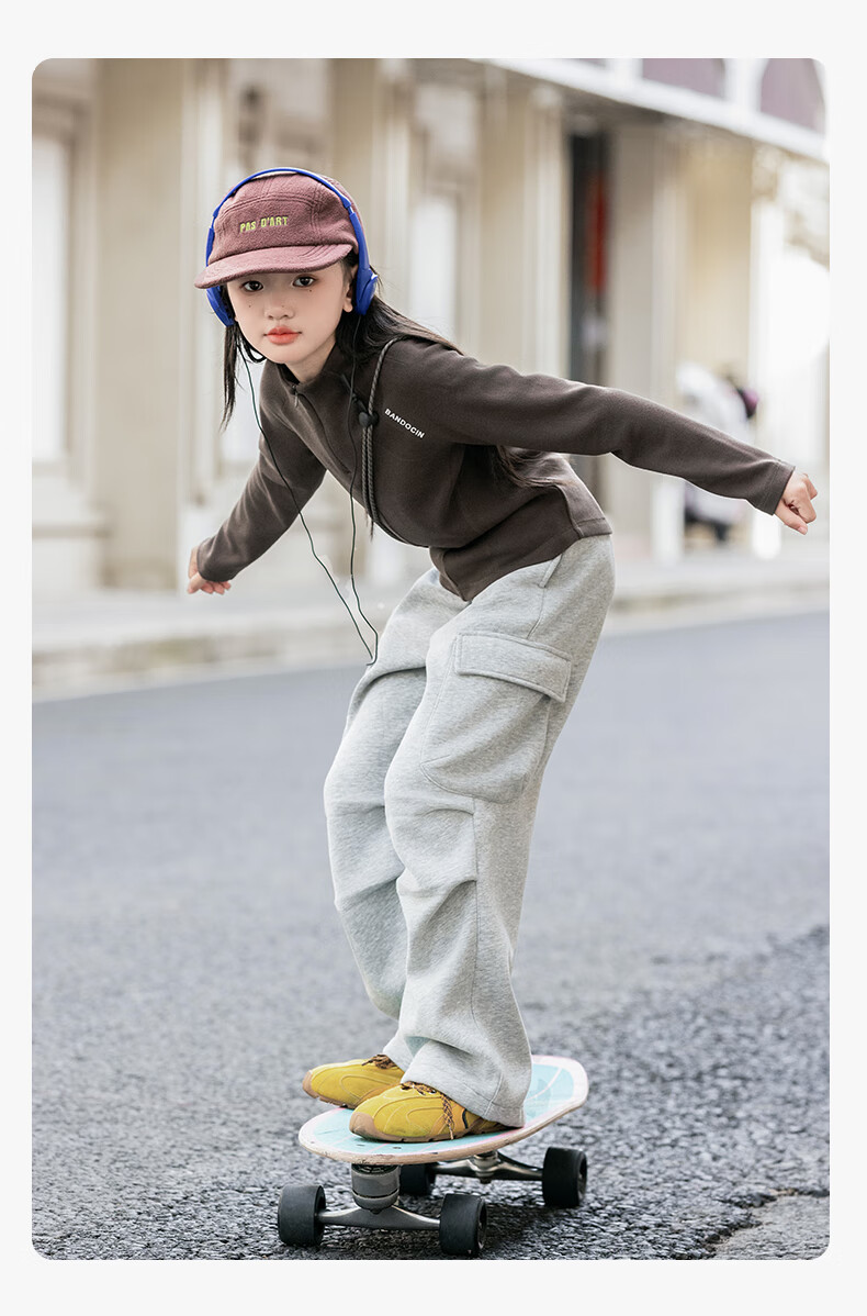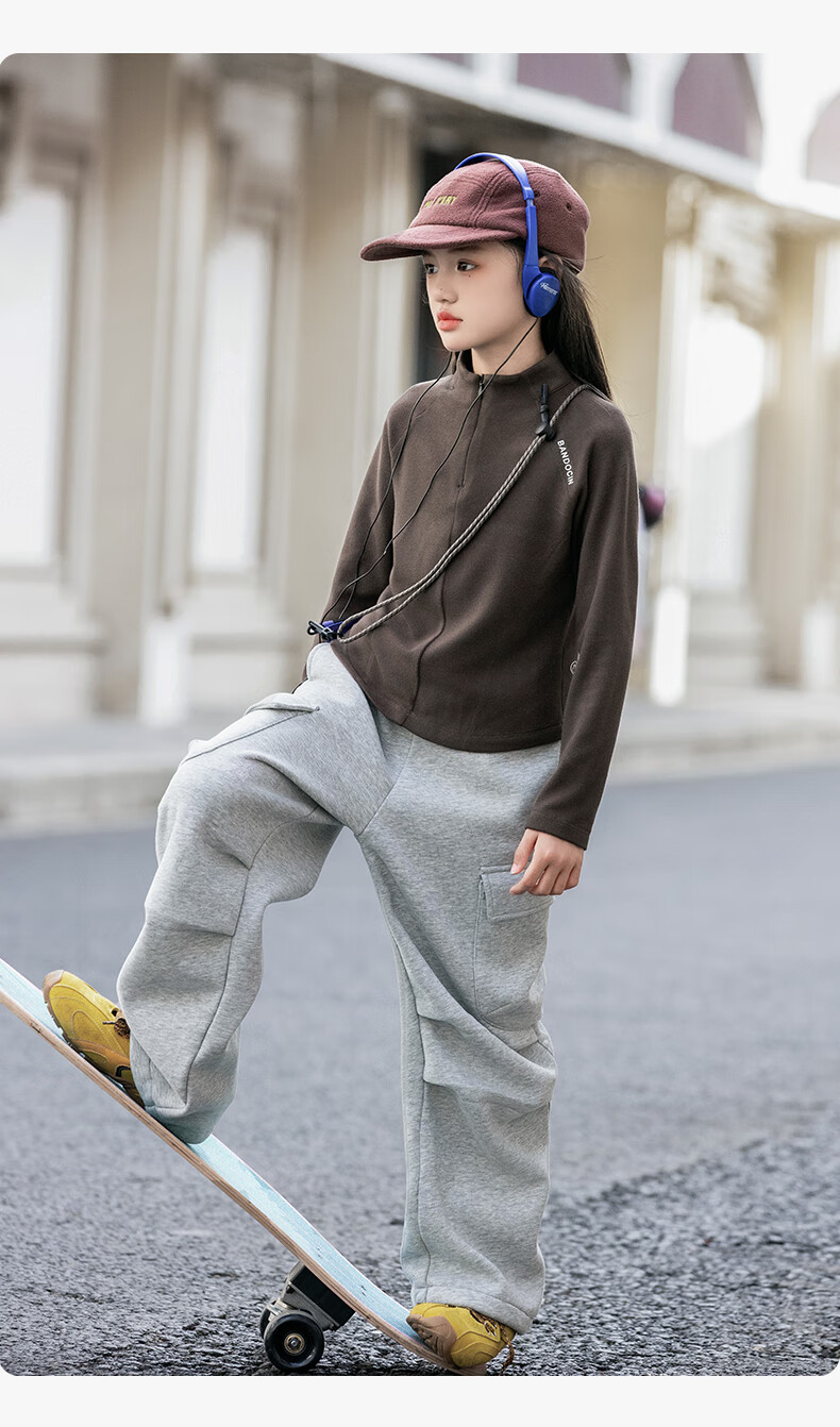 BANDOCIN Half-time casual girls stand-collar bottoming shirt autumn and winter for middle and older children new children's winter thickened sports top Chaka 170