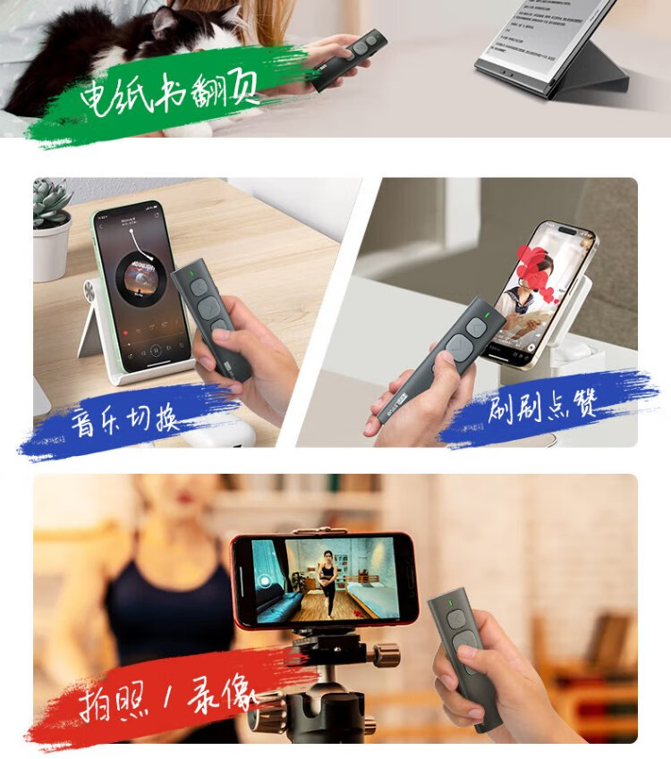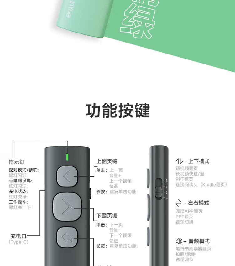 Hanlinyue E2 e-book page turning mobile phone remote control Bluetooth photo taking remote video brushing short video Douyin artifact Apple Android universal Bluetooth controller reading novels green