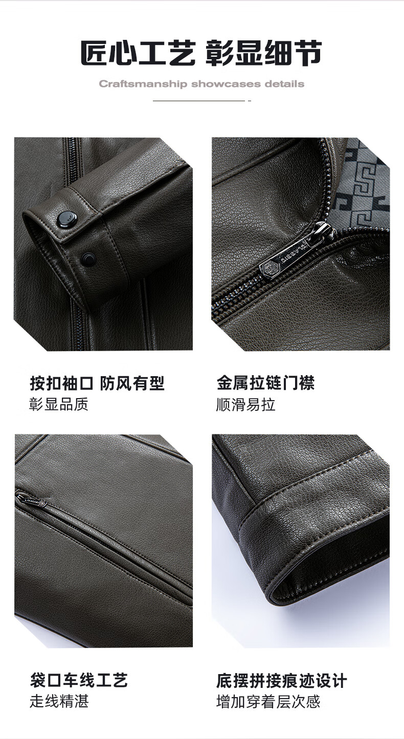 SHANSHAN Shanshan PU leather jacket for men 2025 autumn and winter windproof stand collar simple business casual windproof easy care men's jacket