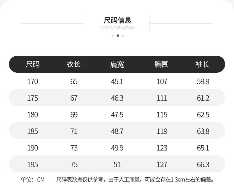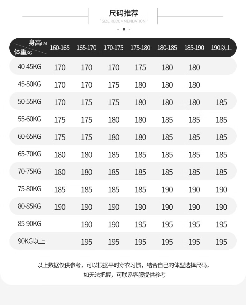 China (cm) 165 / 88-90 170 / 96-98 175 / 108-110 180 / 118-122 185 / 126-130