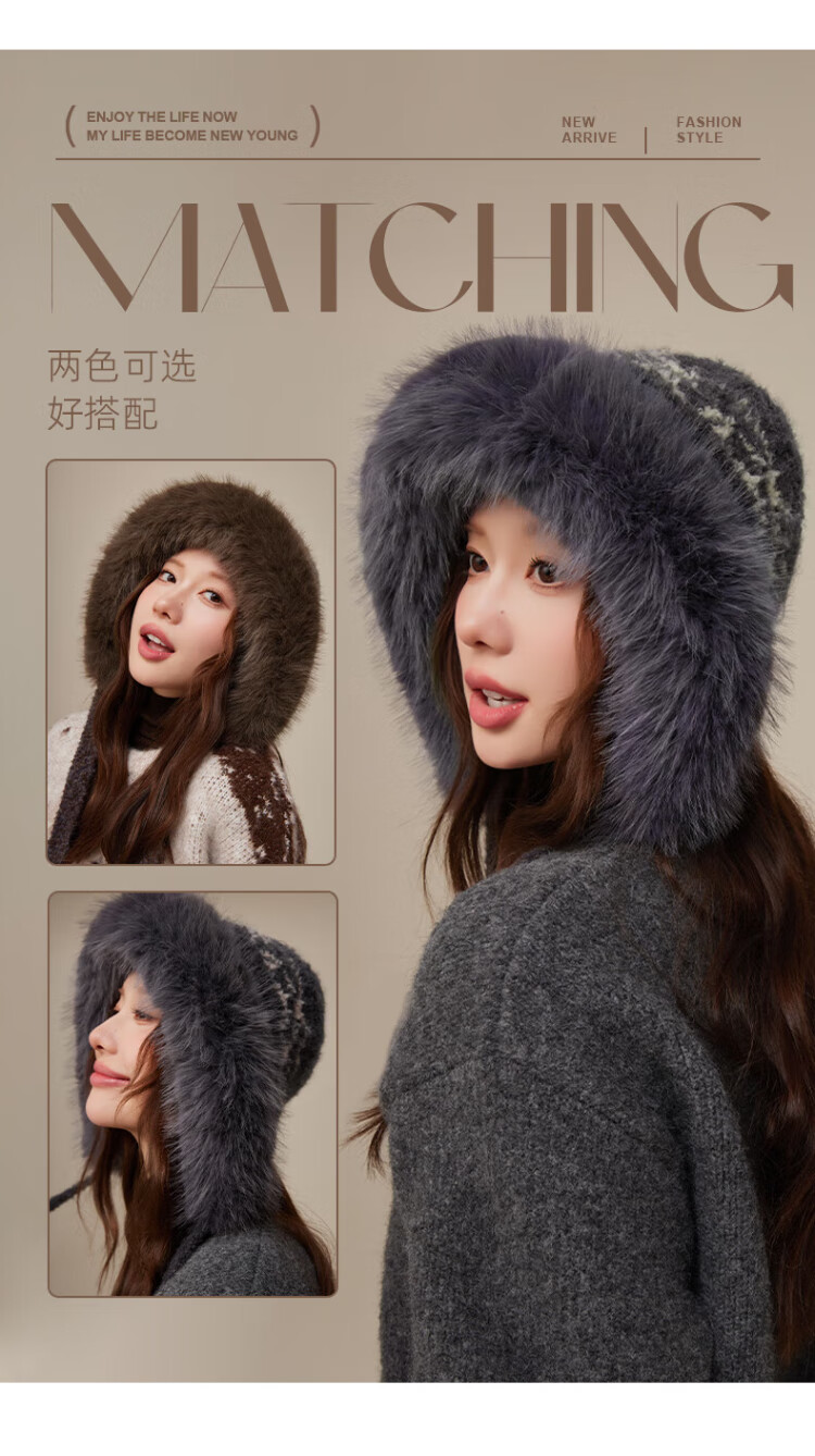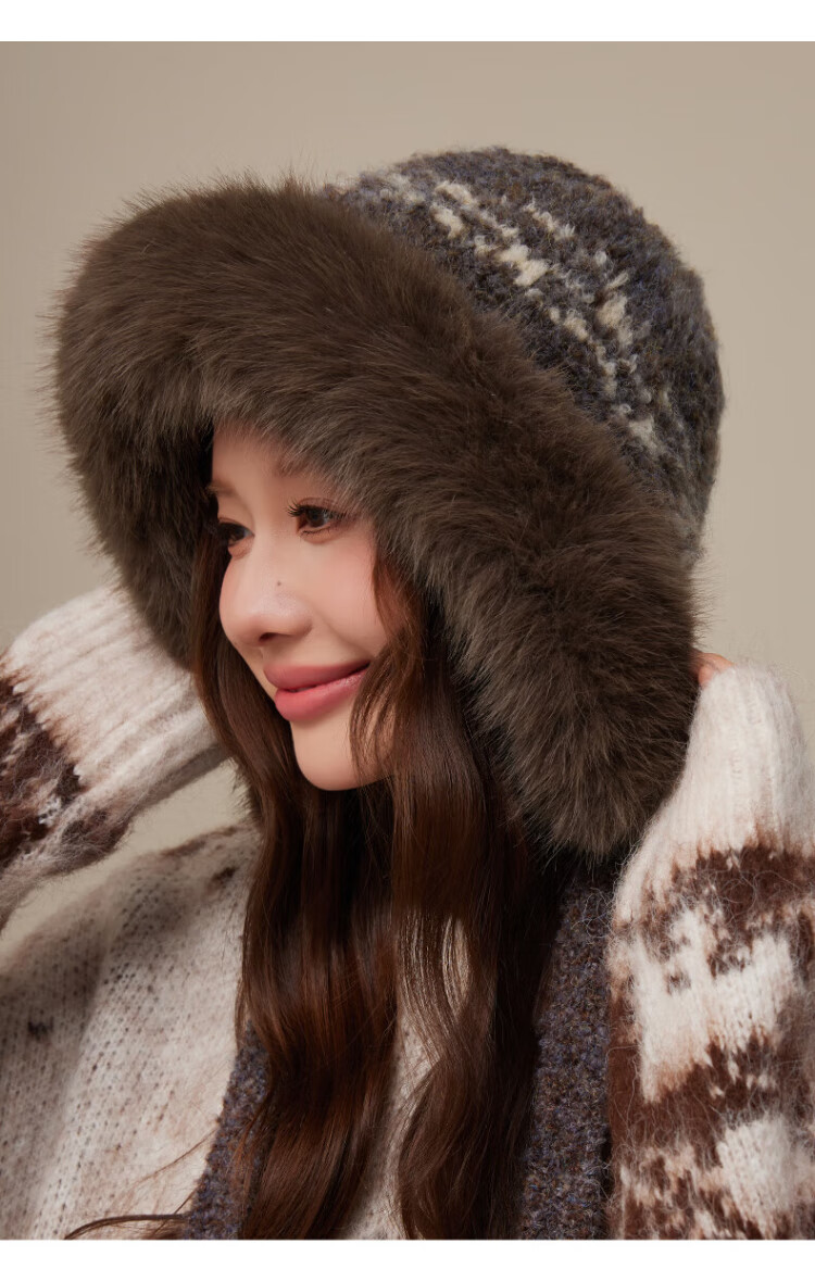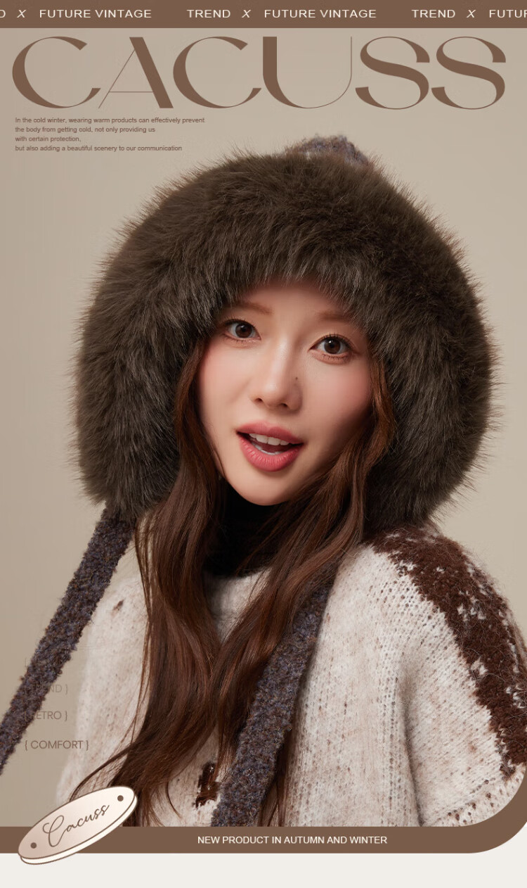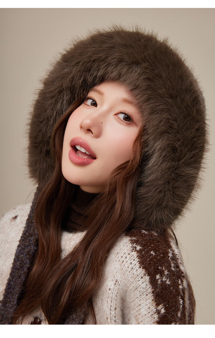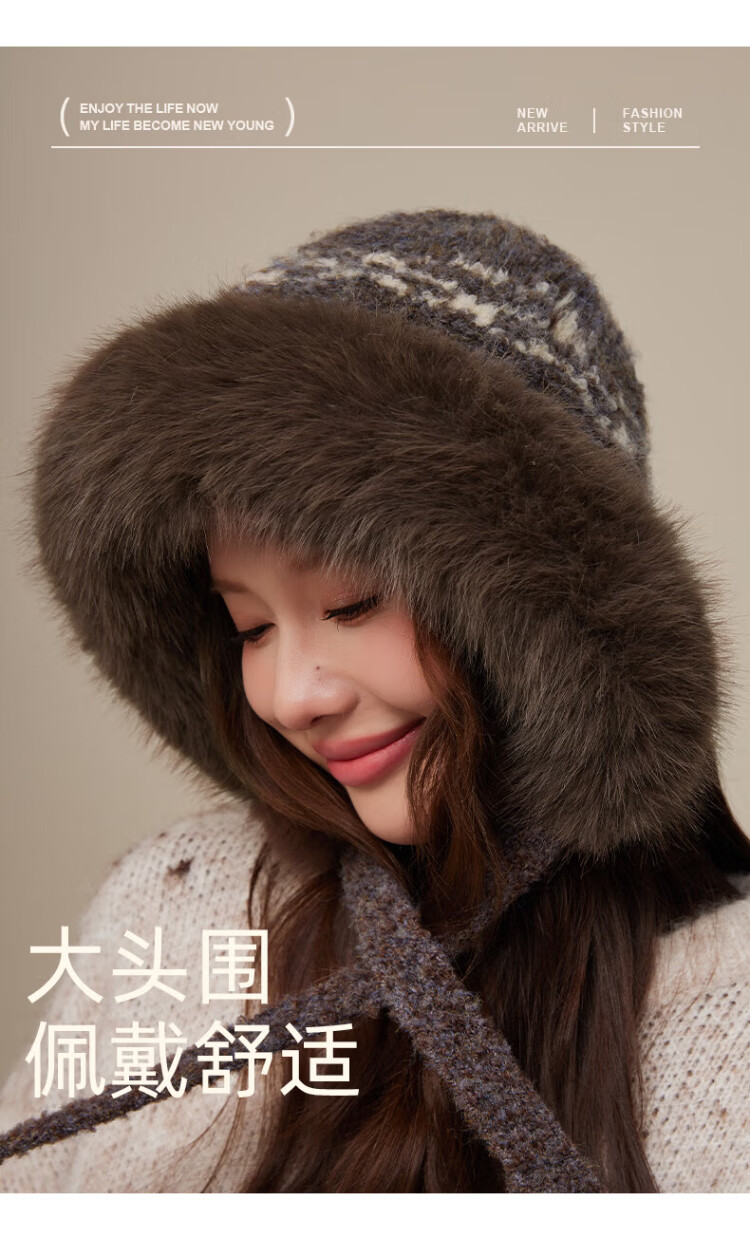 CACUSS Woolen Hat Women's Winter Plush Warm Hat Large Head Circumference Outdoor Ear Protection Hat Windproof and Coldproof Lei Feng Hat Coffee Color