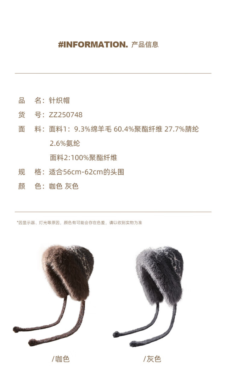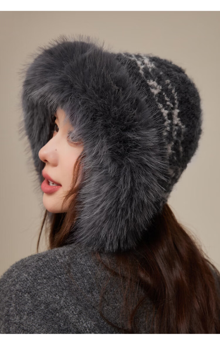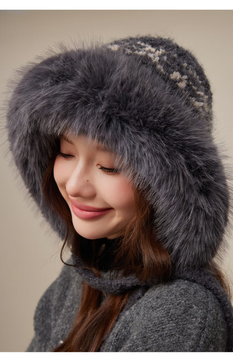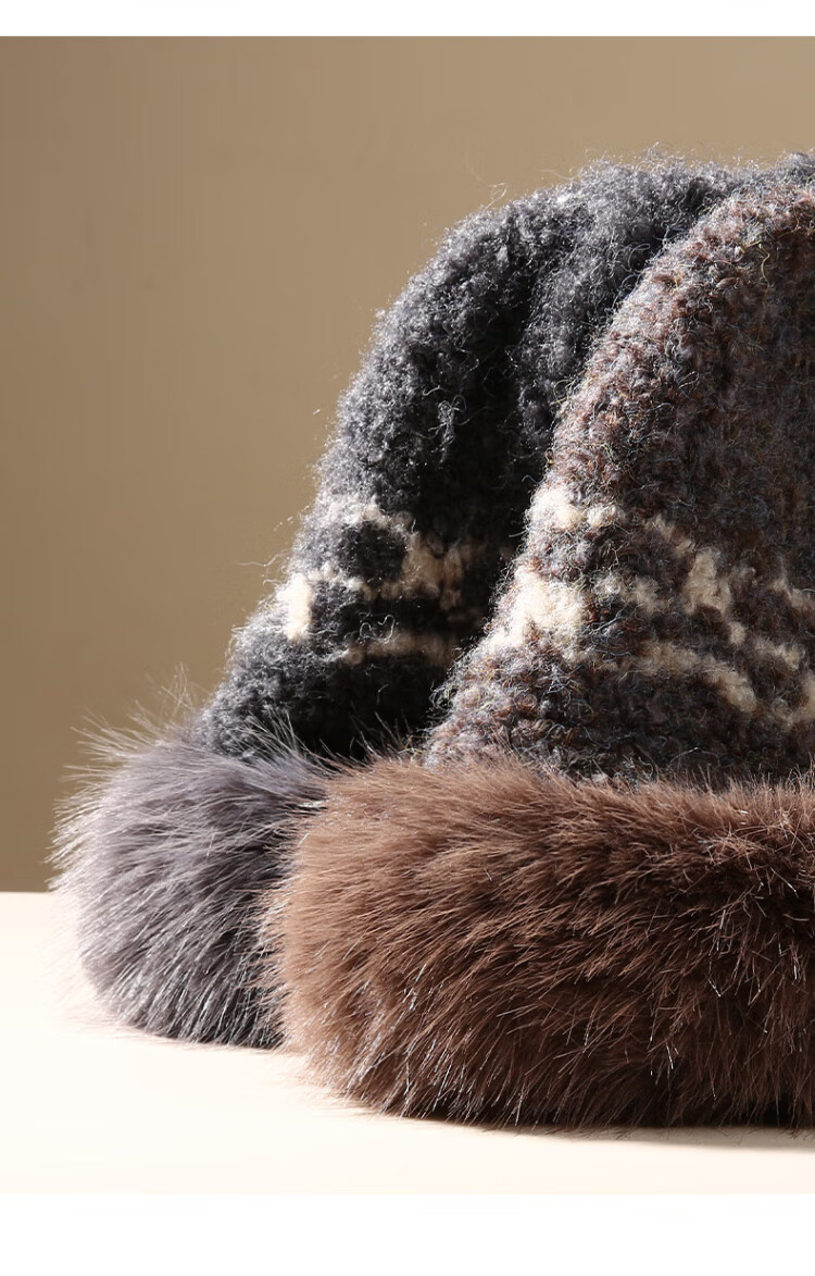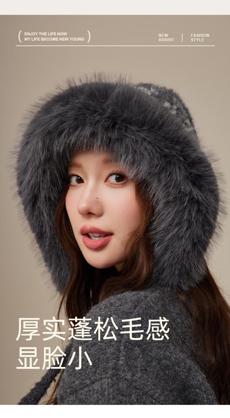 CACUSS Woolen Hat Women's Winter Plush Warm Hat Large Head Circumference Outdoor Ear Protection Hat Windproof and Coldproof Lei Feng Hat Coffee Color