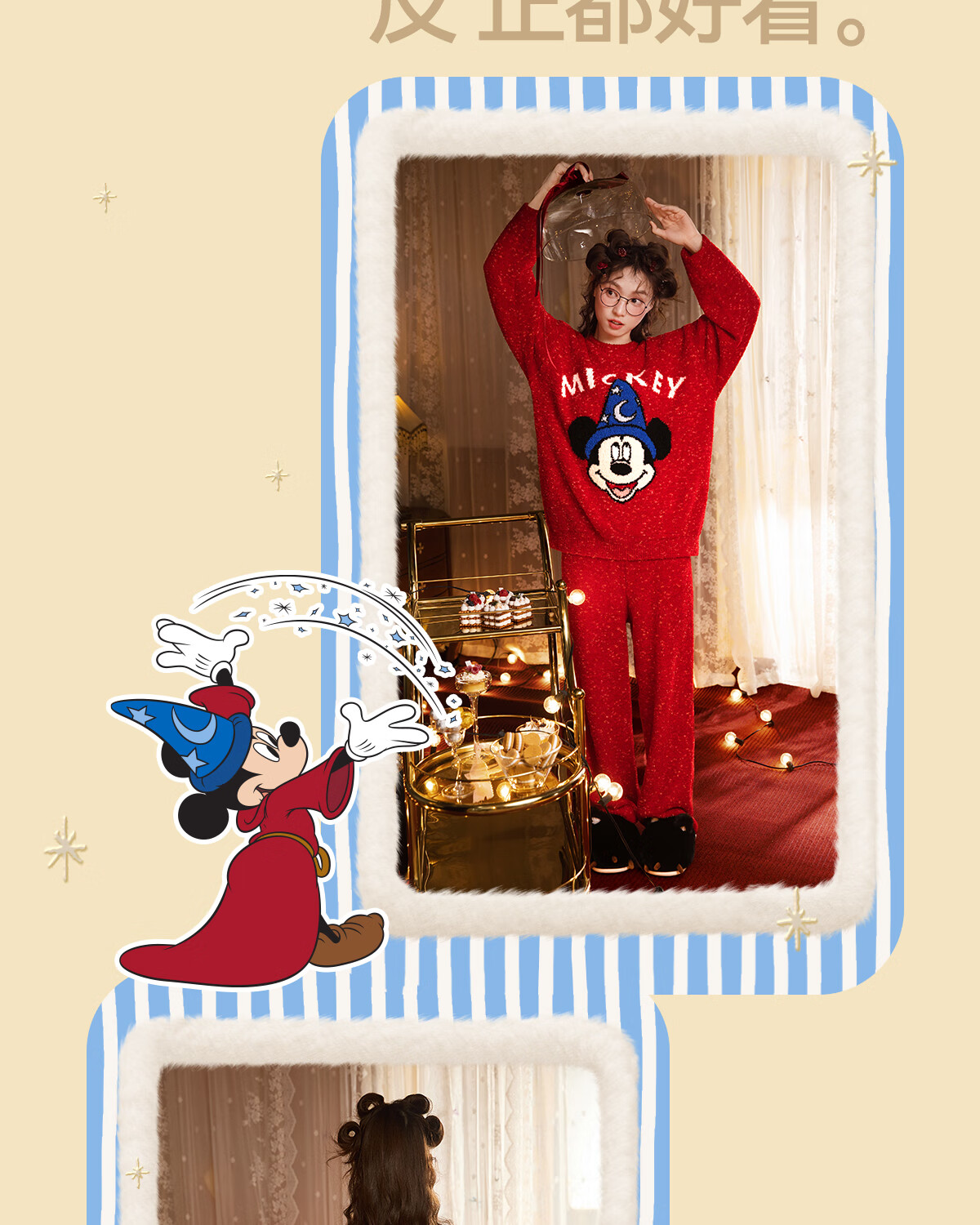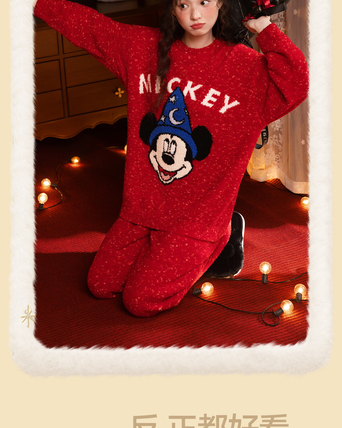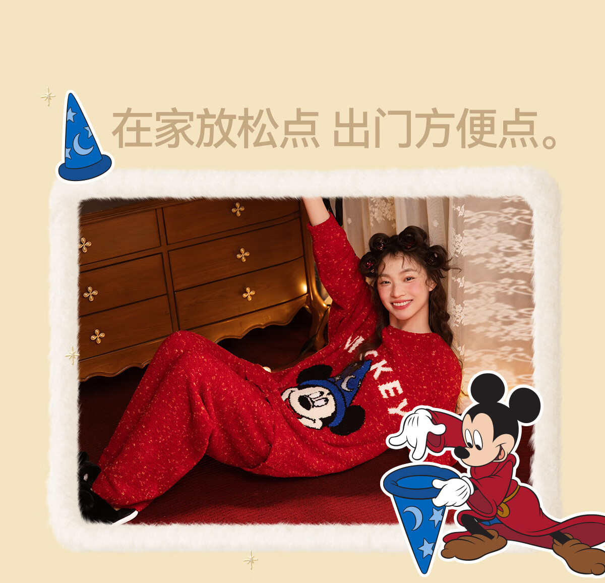 Gongdie Heat Storage Type Disney Mickey Autumn and Winter Red Couple Pajamas Women's Half Velvet Wedding Home Clothing for Men