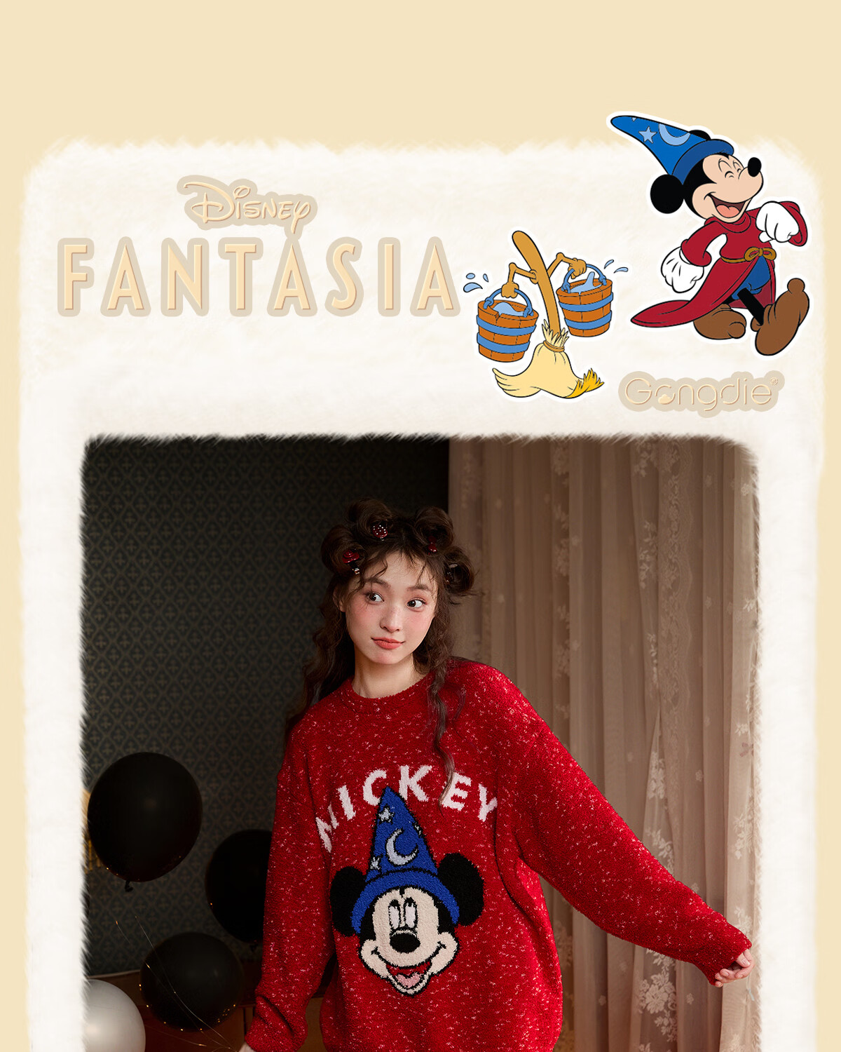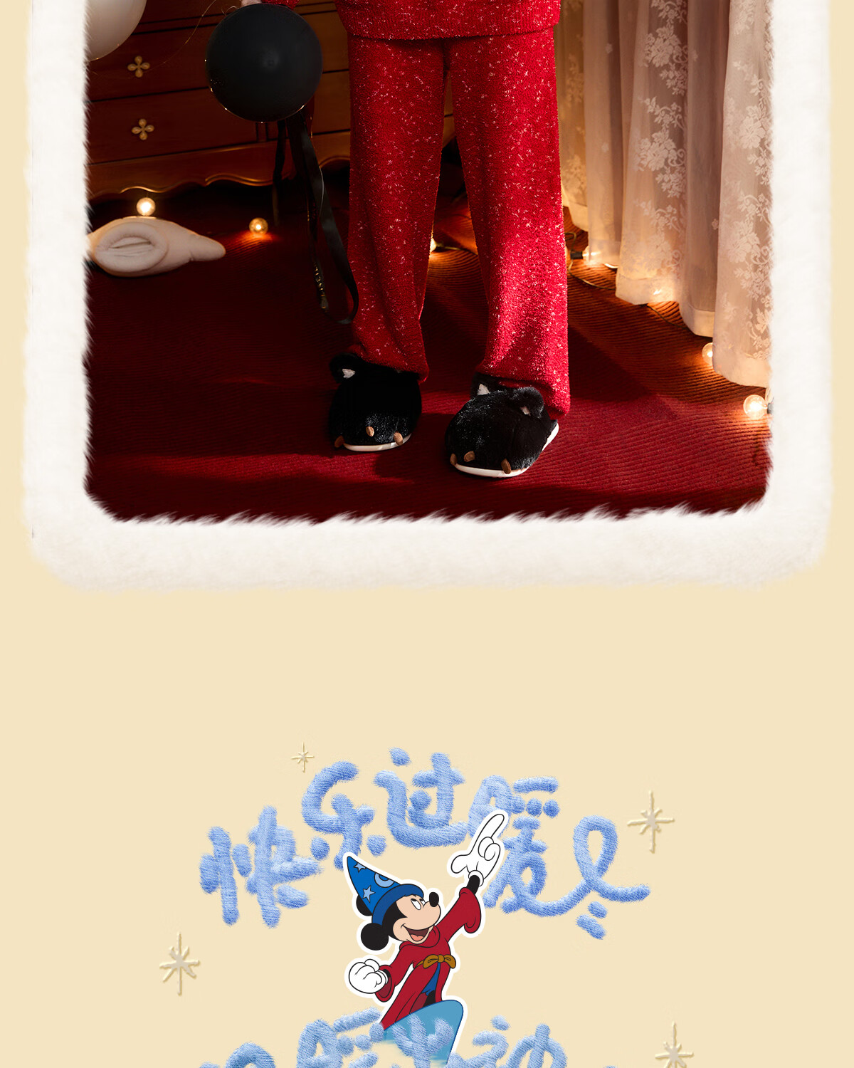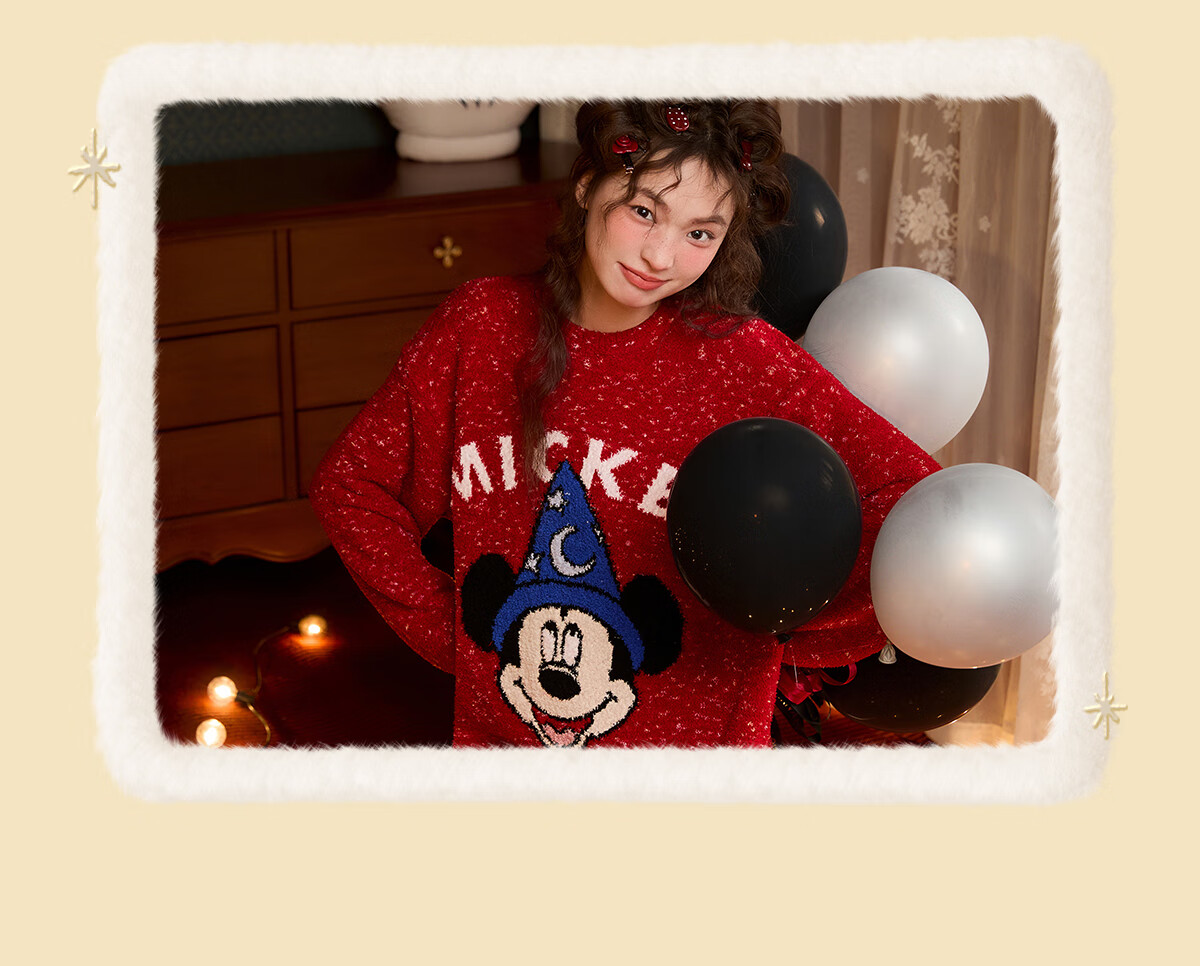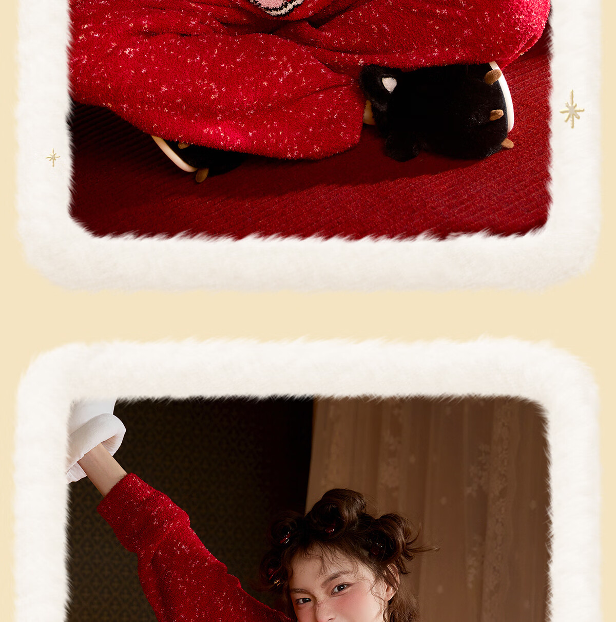 Gongdie Heat Storage Type Disney Mickey Autumn and Winter Red Couple Pajamas Women's Half Velvet Wedding Home Clothing for Men