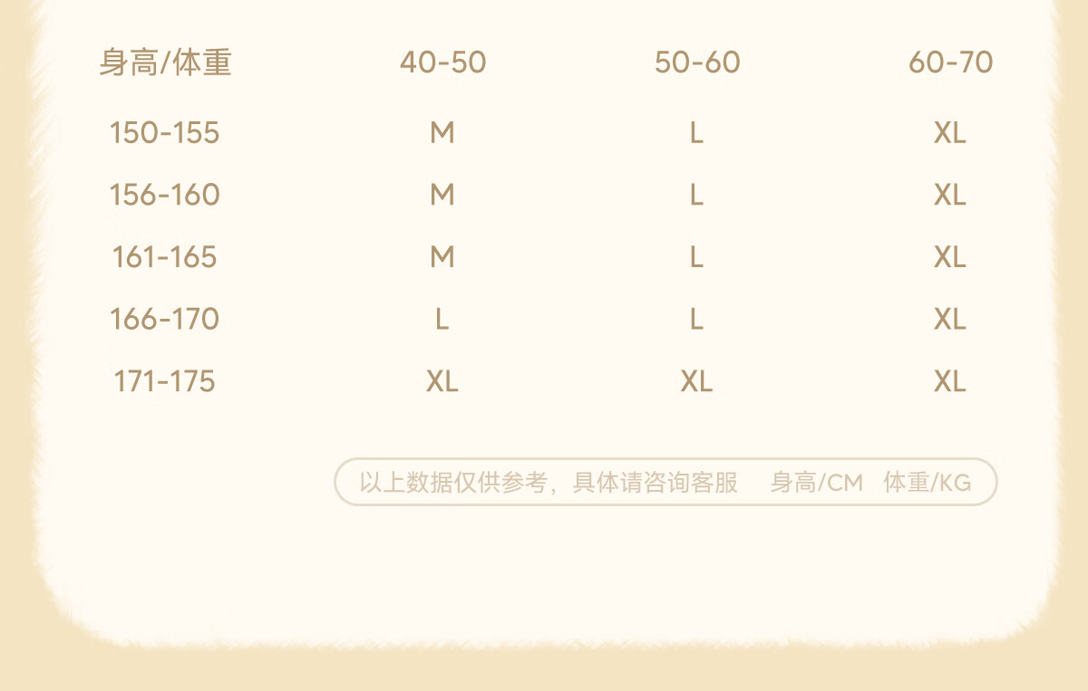 China (cm) 160-165/84-86 165-170 / 88-90 167-172 / 92-96 168-173 / 98-102 170-176 / 106-110