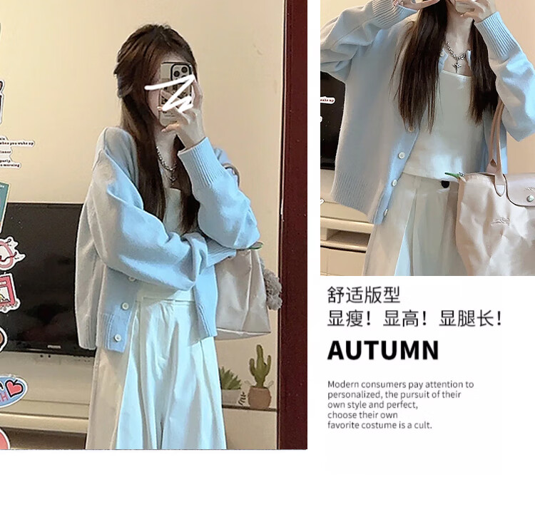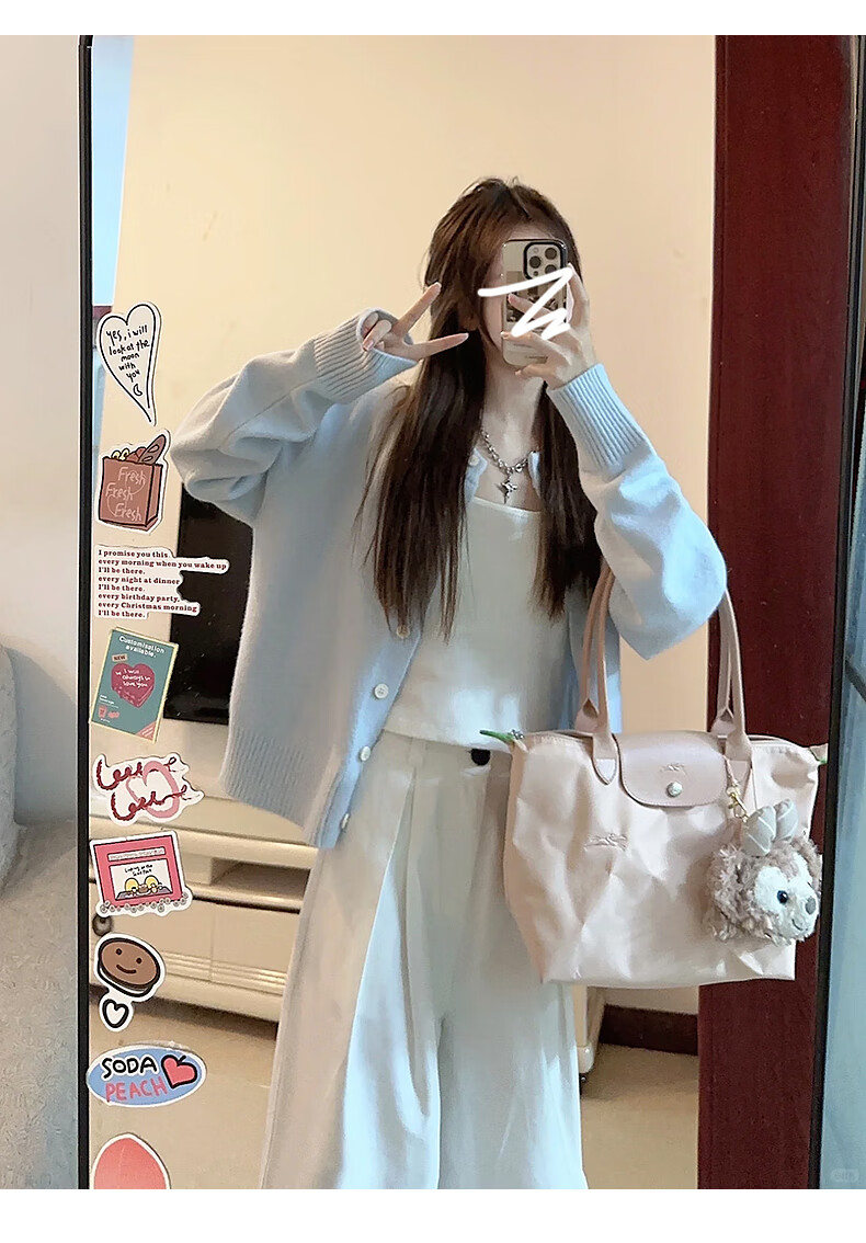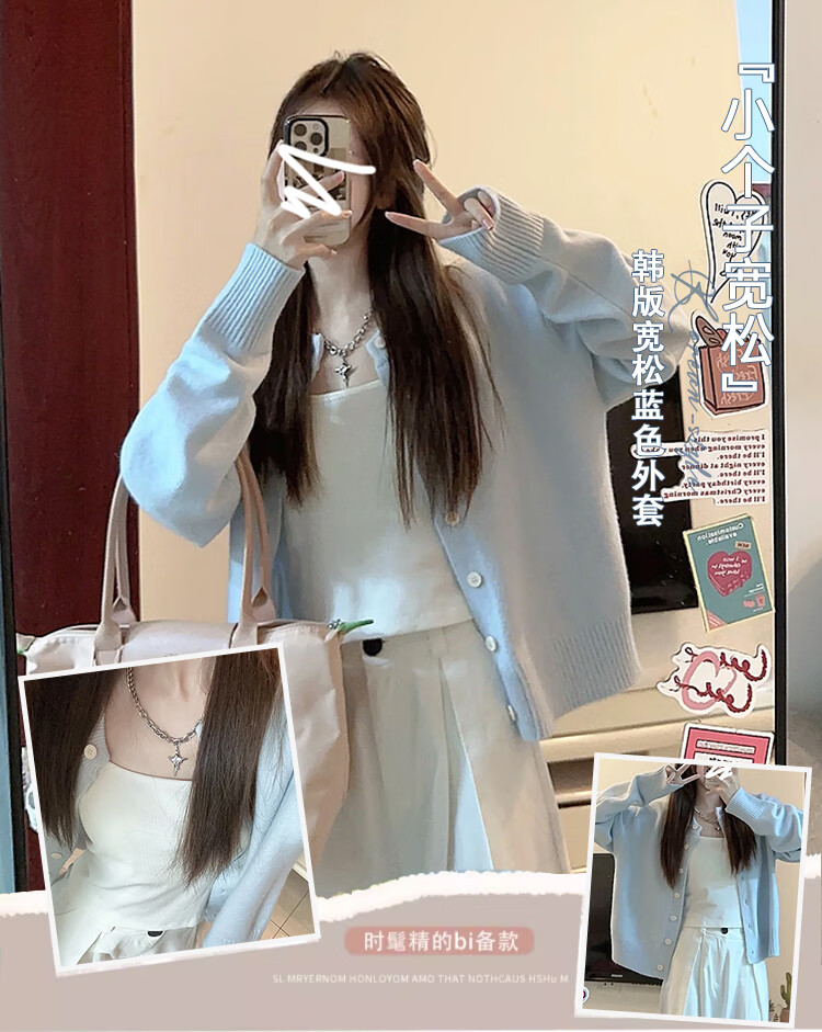 Langsha Knitwear Women's 2025 Jacket Women's Autumn New Small Cardigan Loose and Lazy Can Be Weared Out Soft Waxy Top