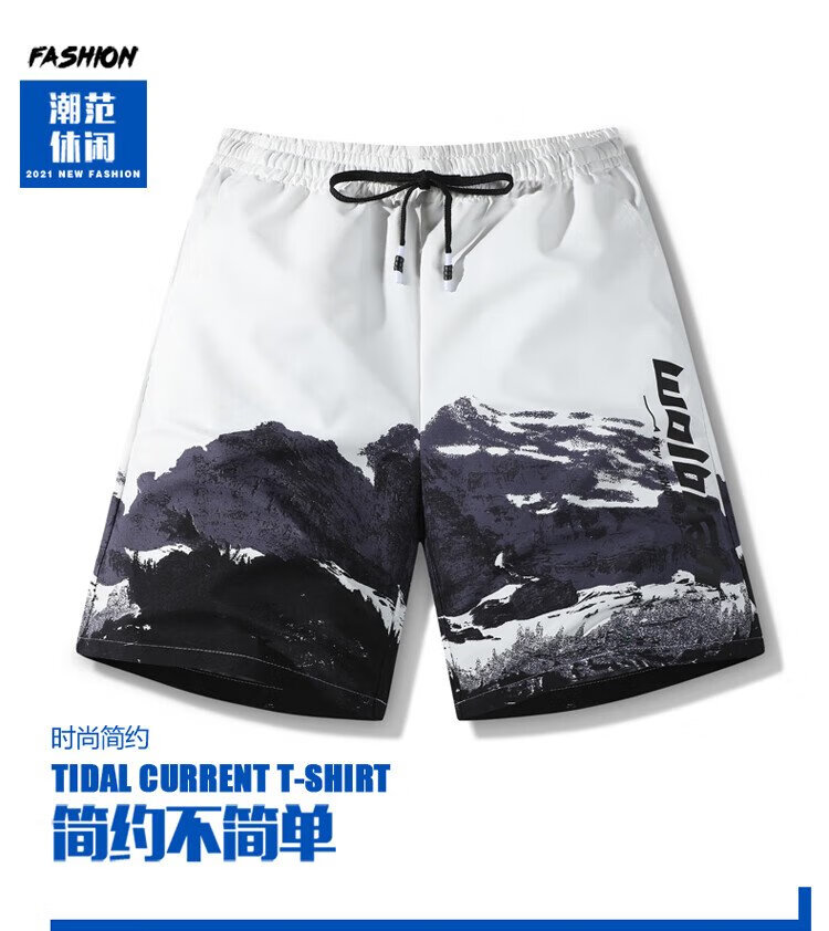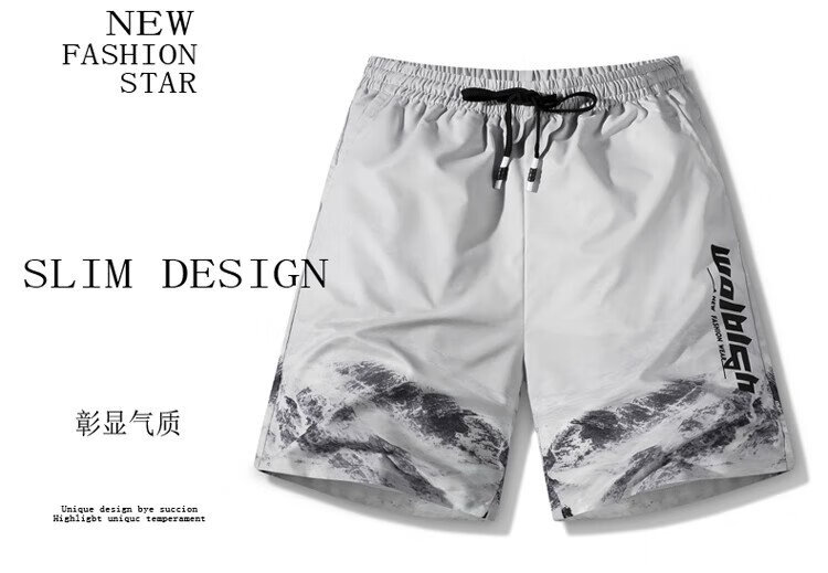 NASA GISS shorts men's summer thin section pants loose student basketball pants casual sports beach pants black 5XL