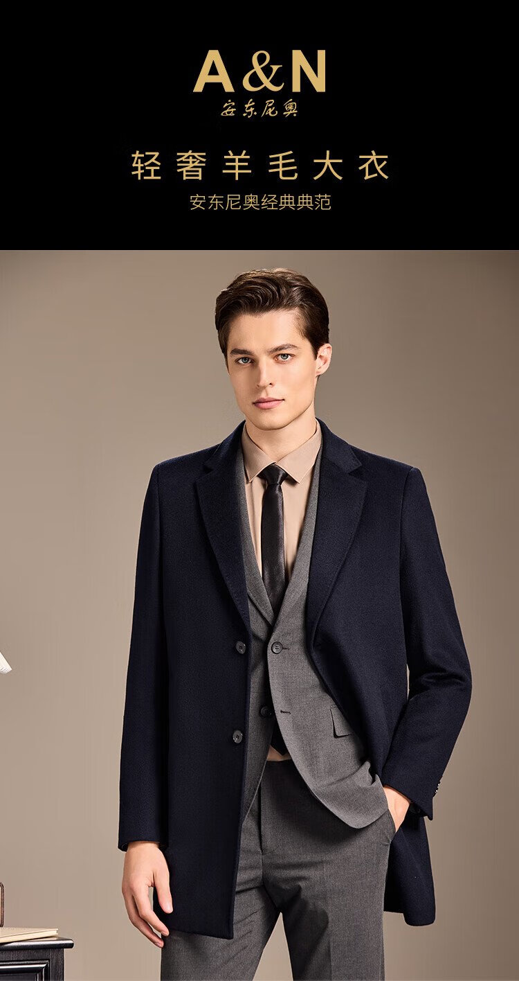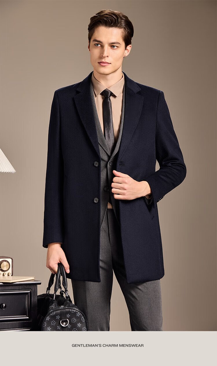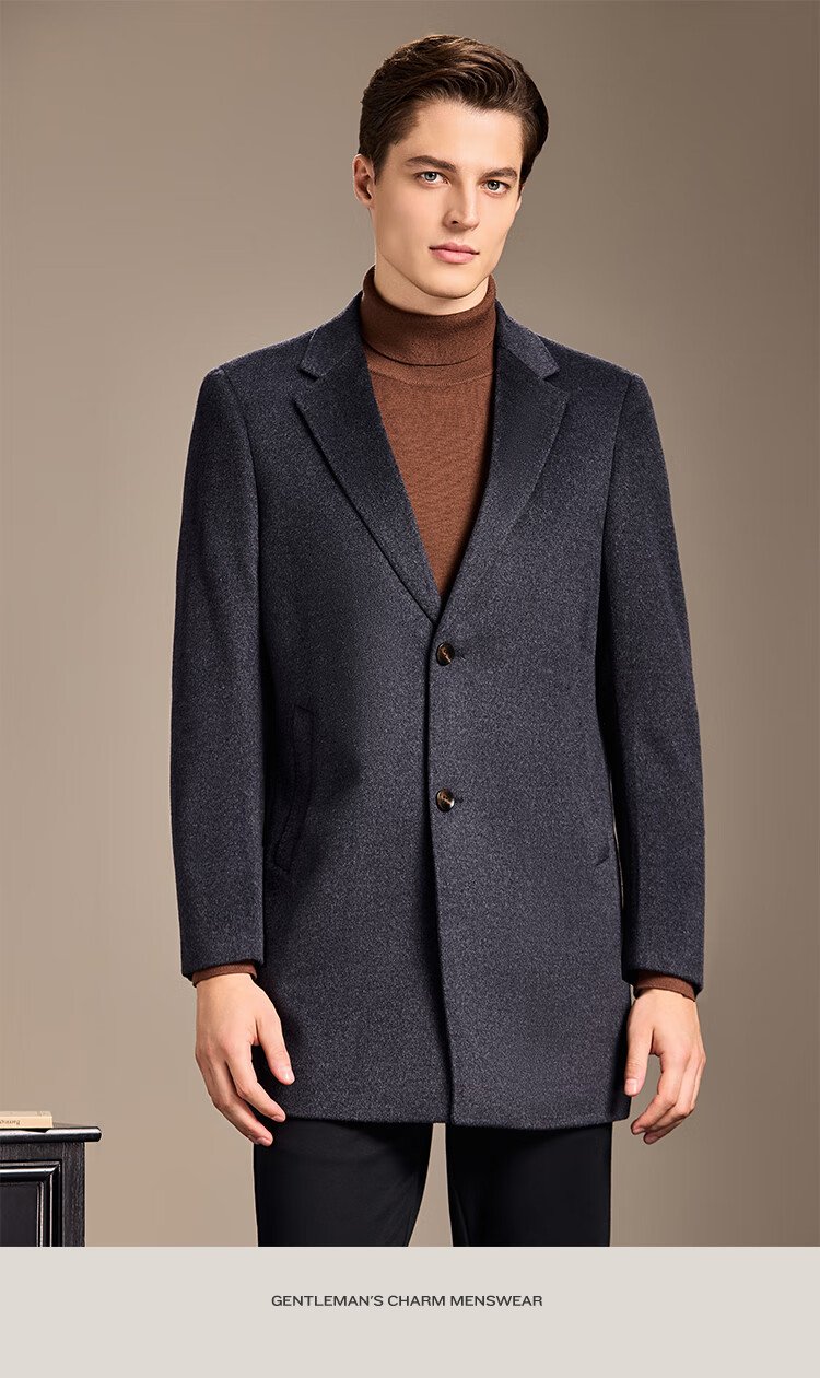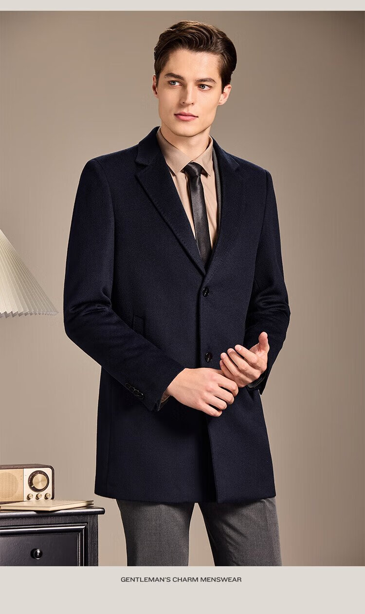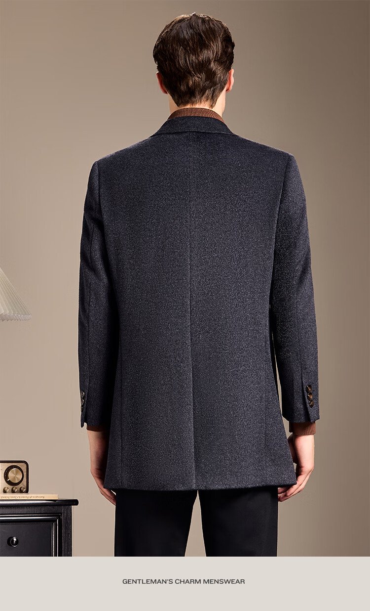 Antonio Mulberry Silk & Cashmere & Sheep Wool Light Luxury Warm Mid-Length Wool Coat Notched Lapel Jacket for Men