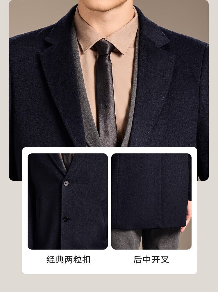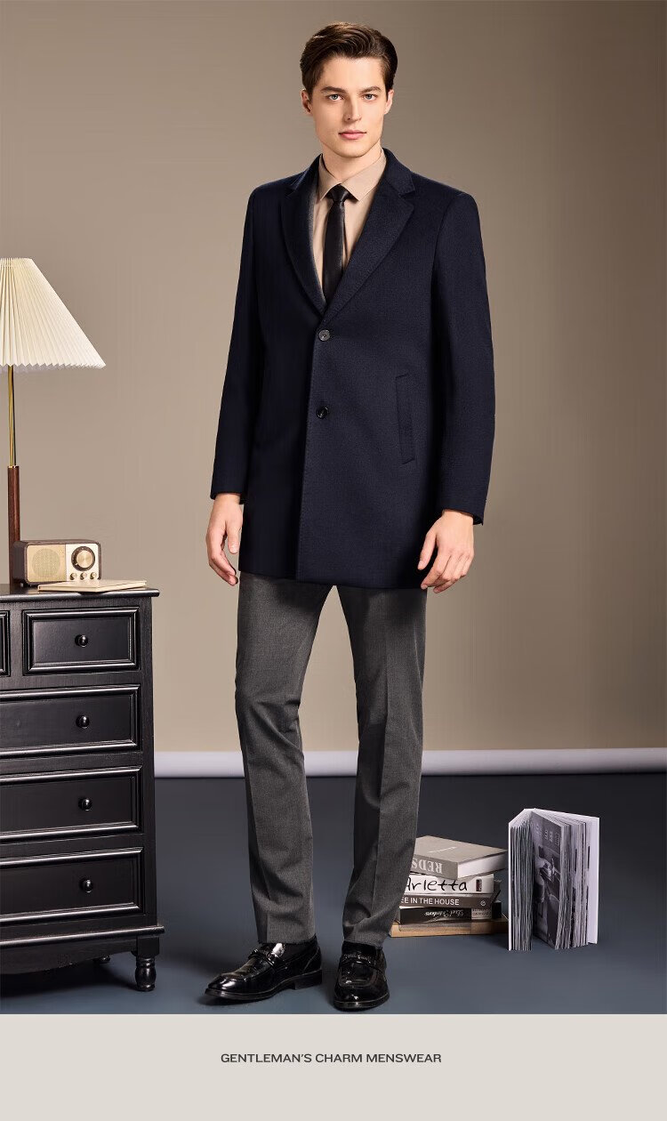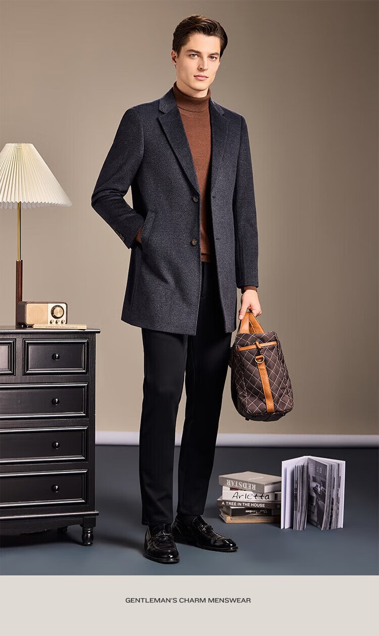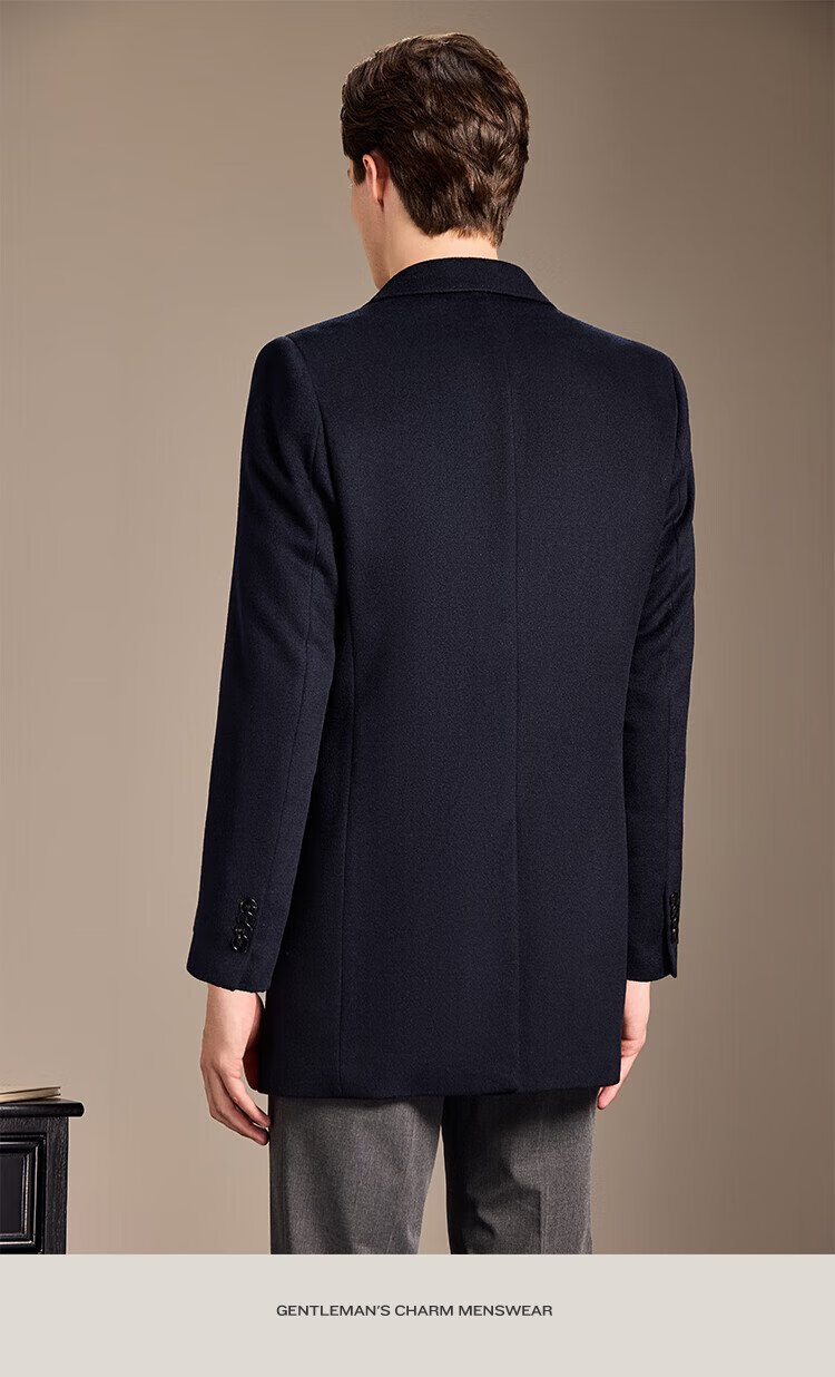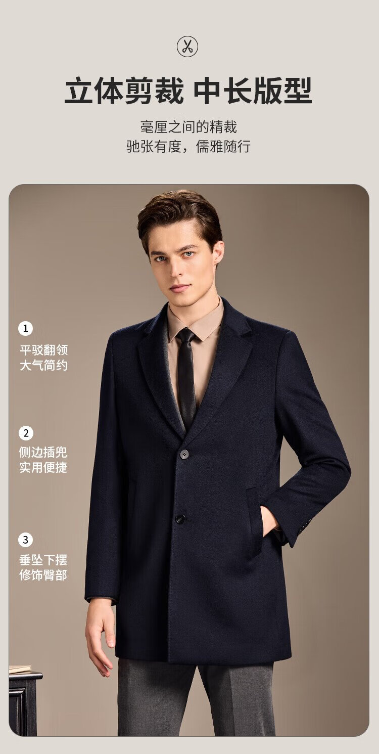 Antonio Mulberry Silk & Cashmere & Sheep Wool Light Luxury Warm Mid-Length Wool Coat Notched Lapel Jacket for Men