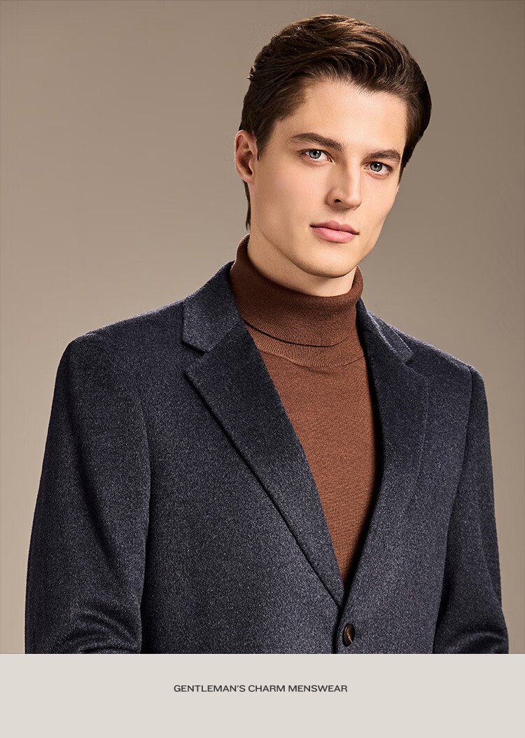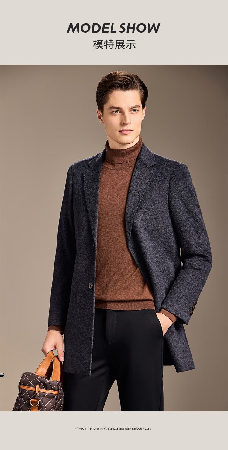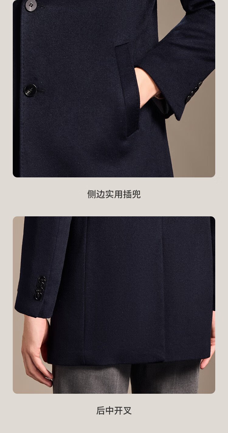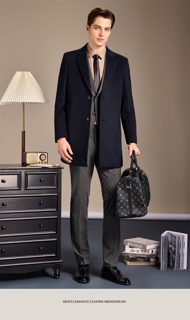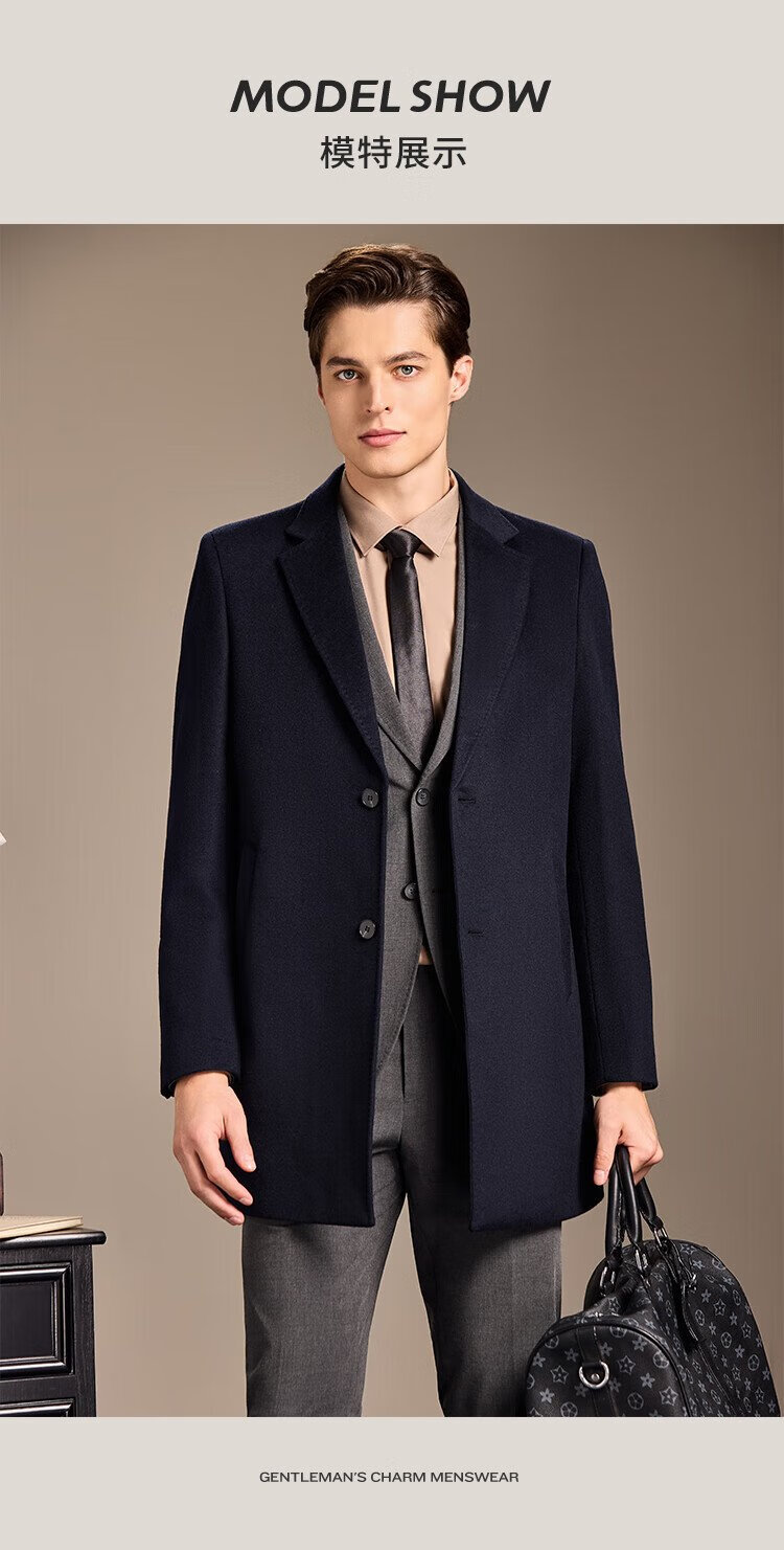 Antonio Mulberry Silk & Cashmere & Sheep Wool Light Luxury Warm Mid-Length Wool Coat Notched Lapel Jacket for Men