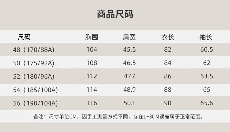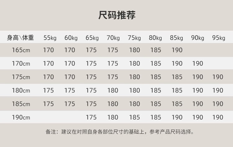 China (cm) 165 / 88-90 170 / 96-98 175 / 108-110 180 / 118-122 185 / 126-130