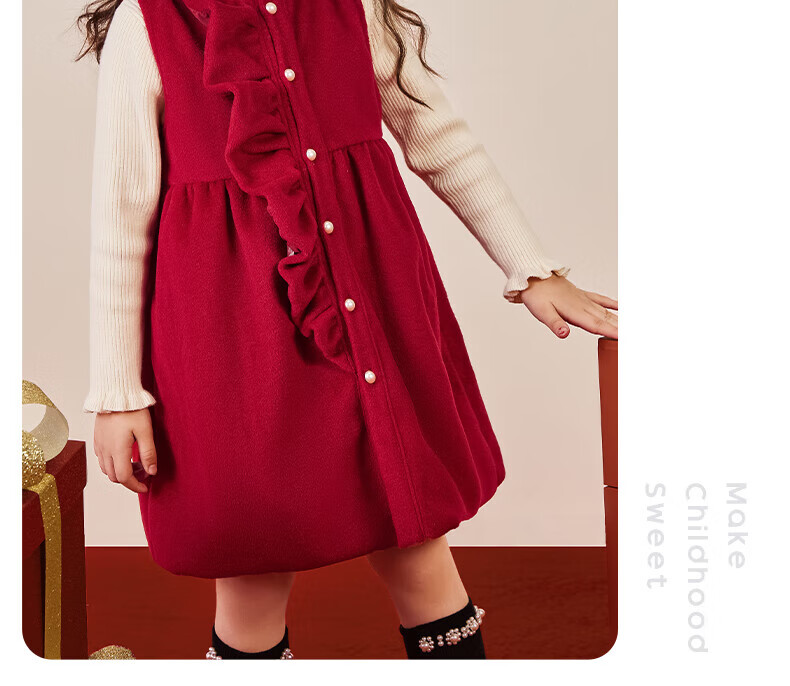 JELLYBABY Ruffle Lace Winter Girls Thick Dress Children's Tank Top Dress Western Style Princess Dress New Year's Eve Clothes