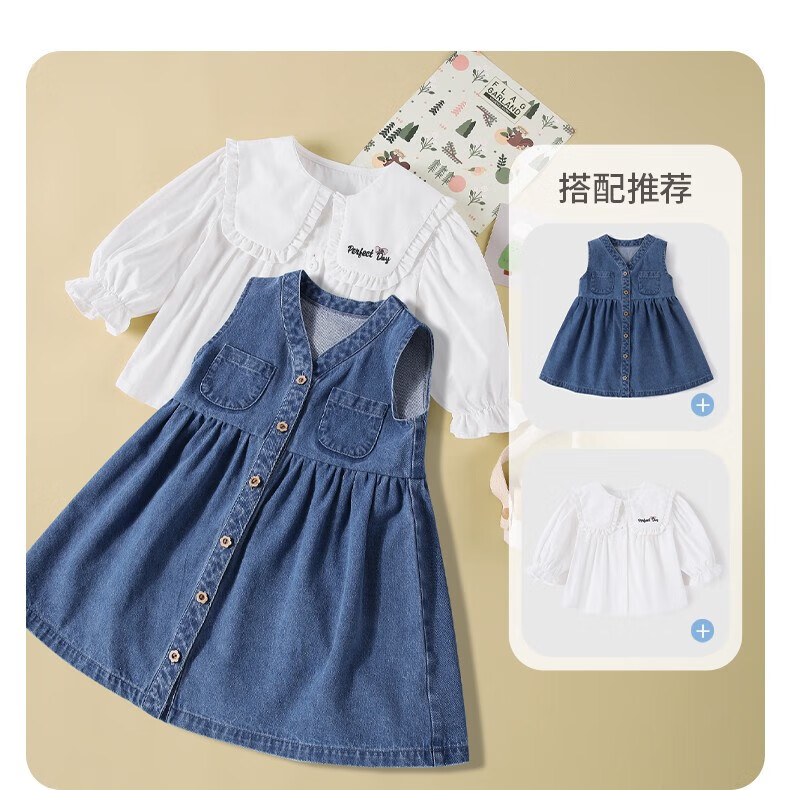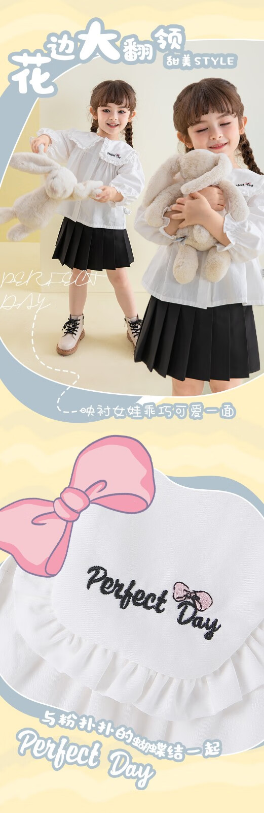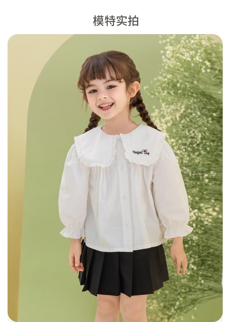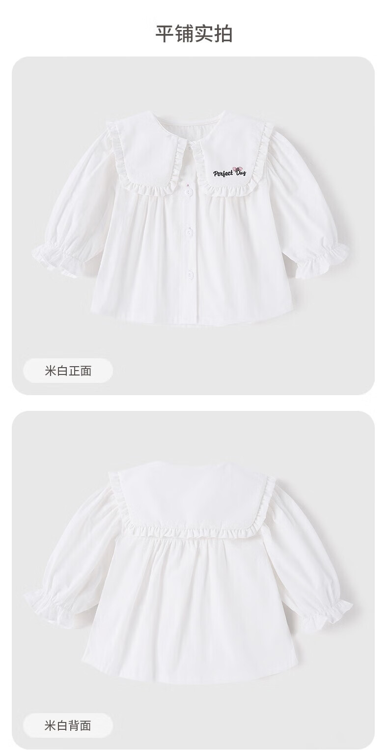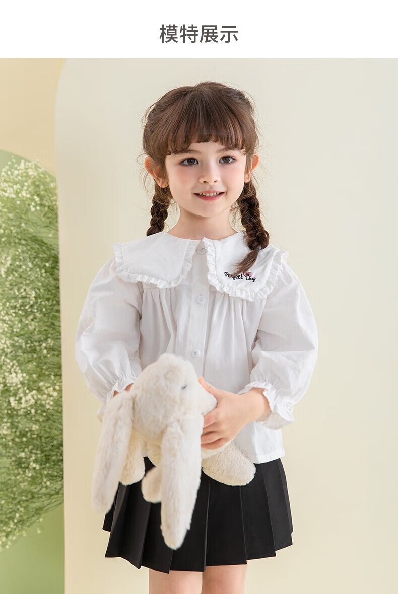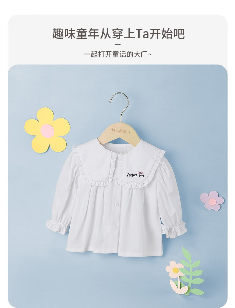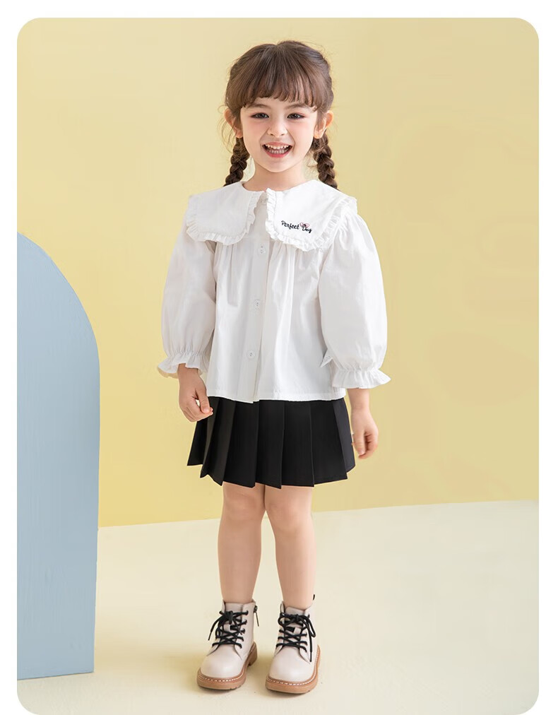 JELLYBABY forest lapel children's shirt girls long-sleeved top doll shirt versatile white shirt spring and autumn bottoming shirt