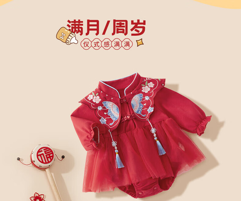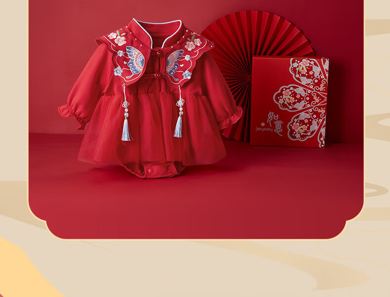 JELLYBABY 5A Antibacterial Gift Box Autumn Style New Chinese Style Baby Jumpsuit Baby Jumpsuit Full Moon Clothes Western Style