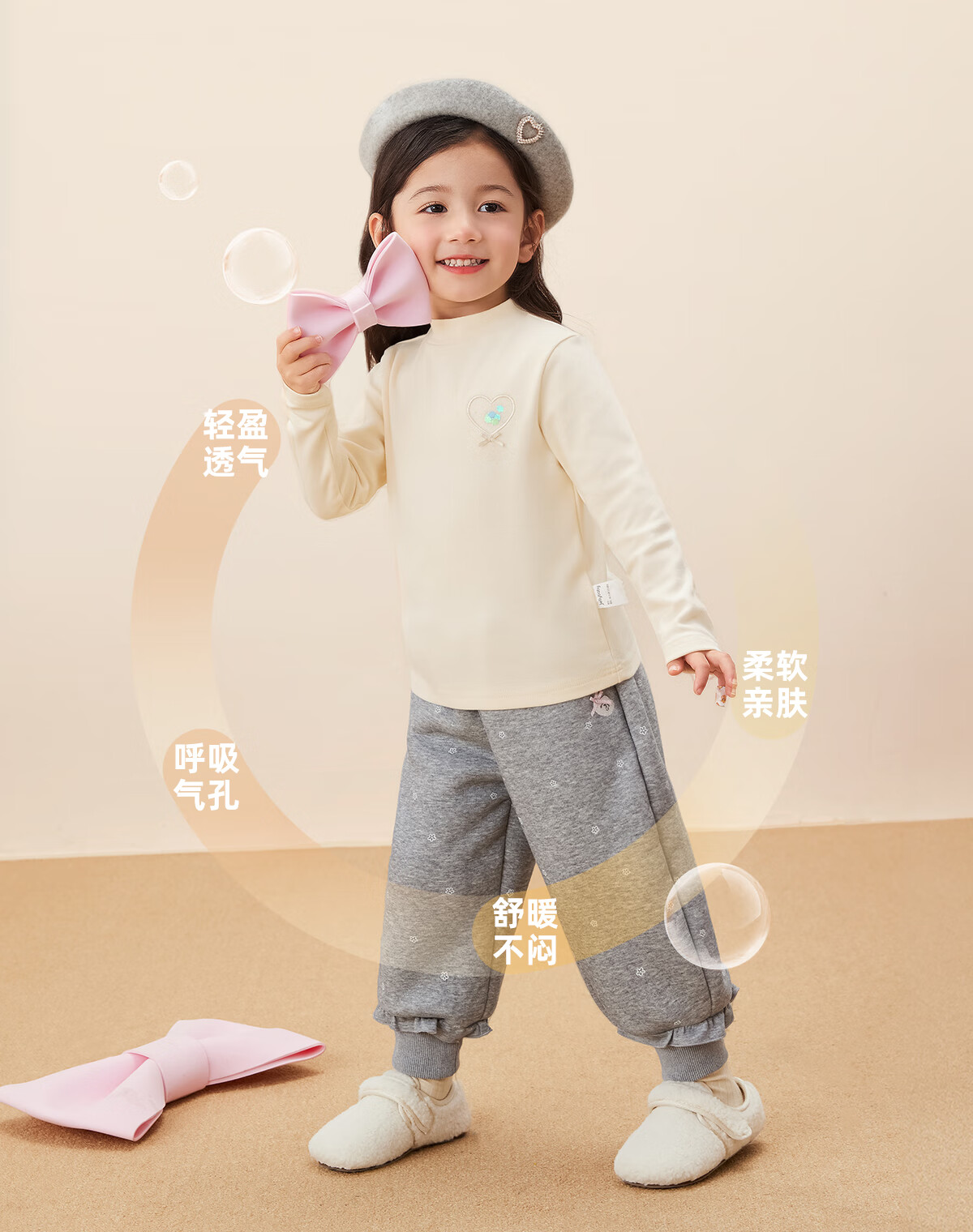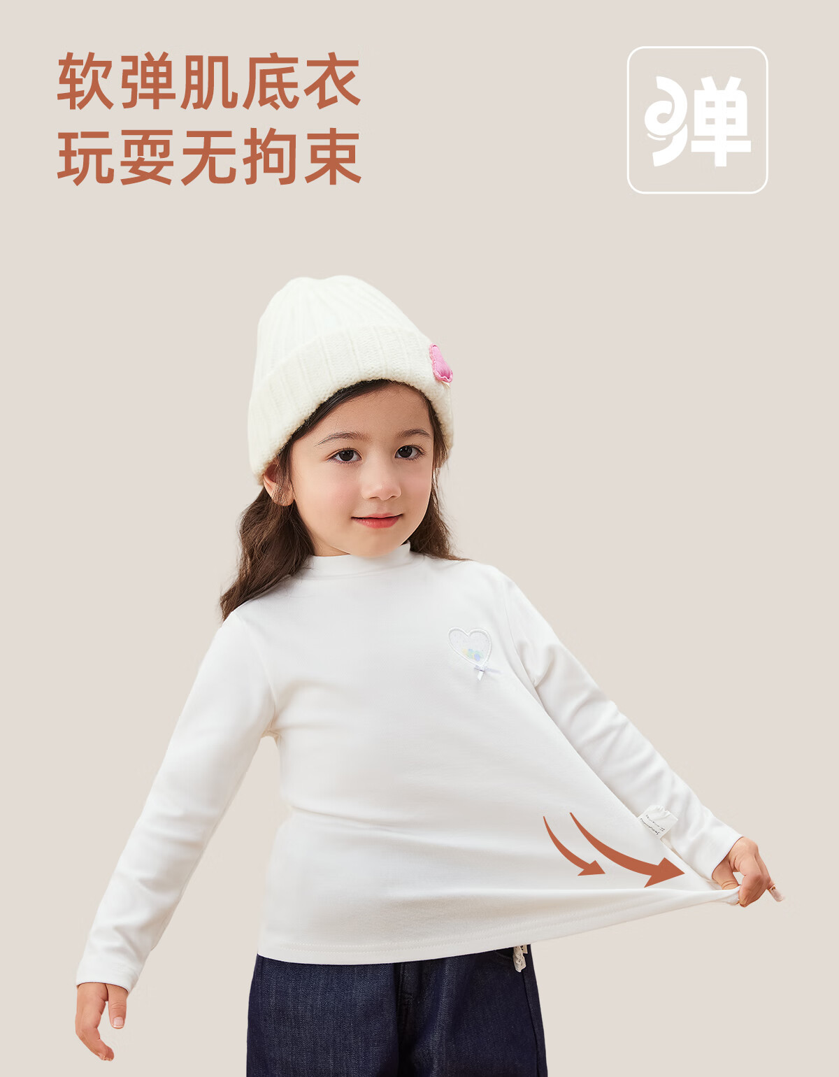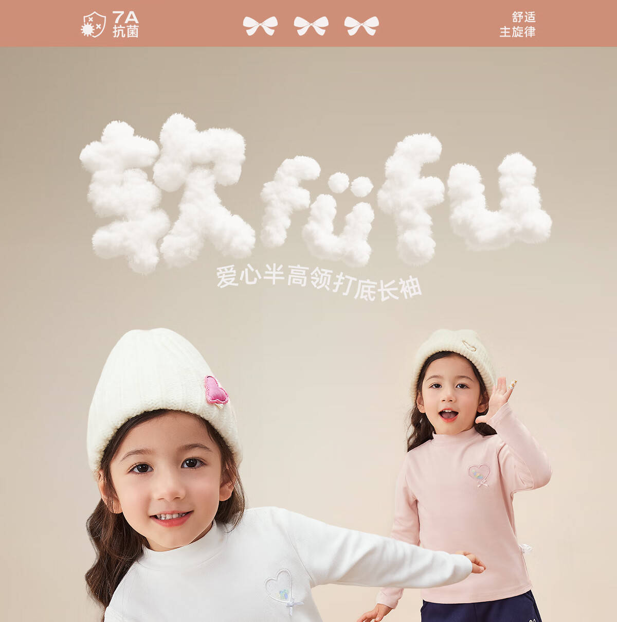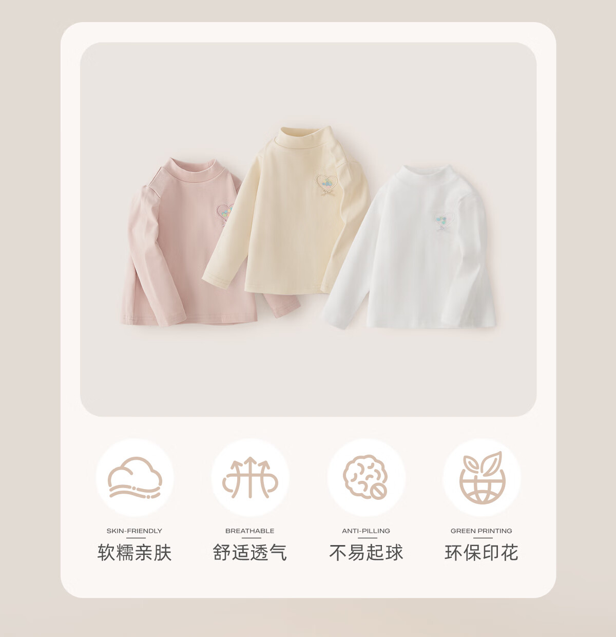 JELLYBABY Antibacterial Far Infrared Girls Long Sleeve T-Shirt 7 Baby Autumn Turtleneck Bottoming Top Women's Autumn Children's Clothing