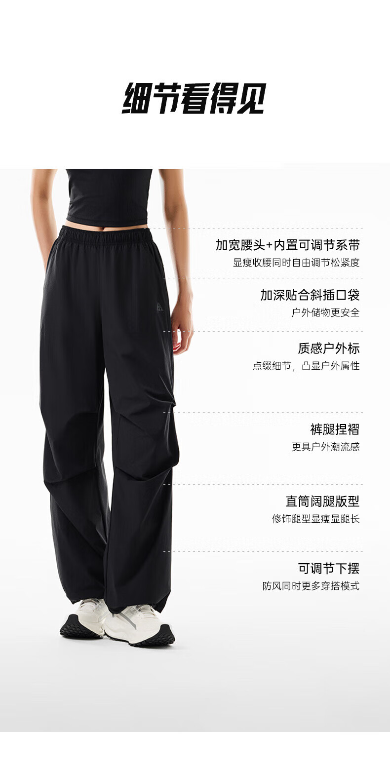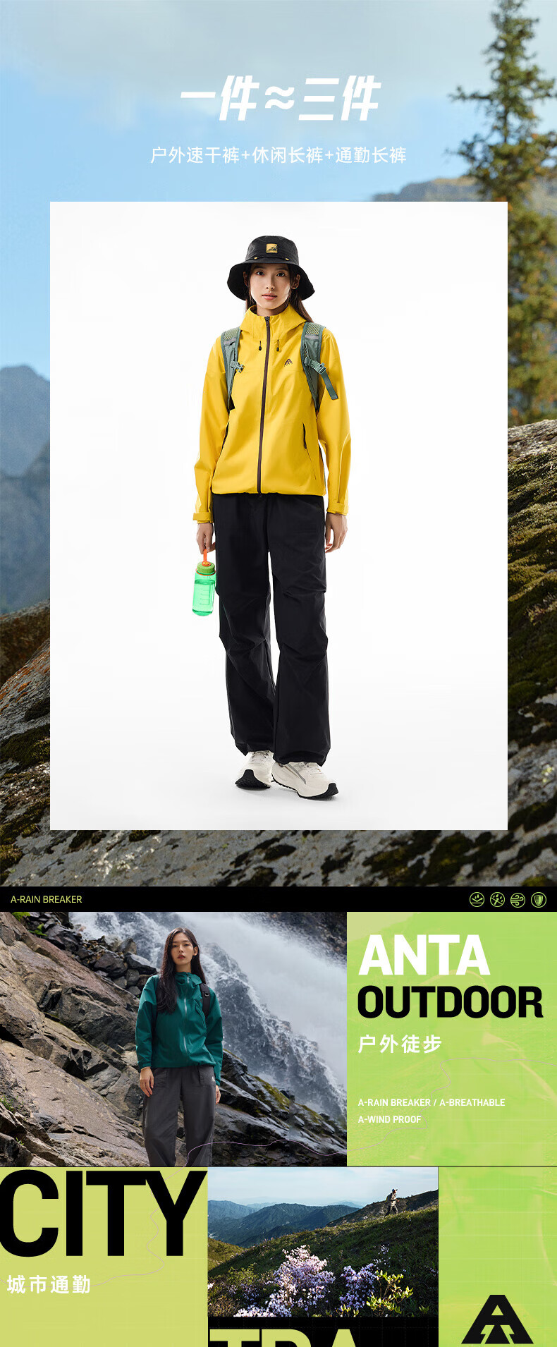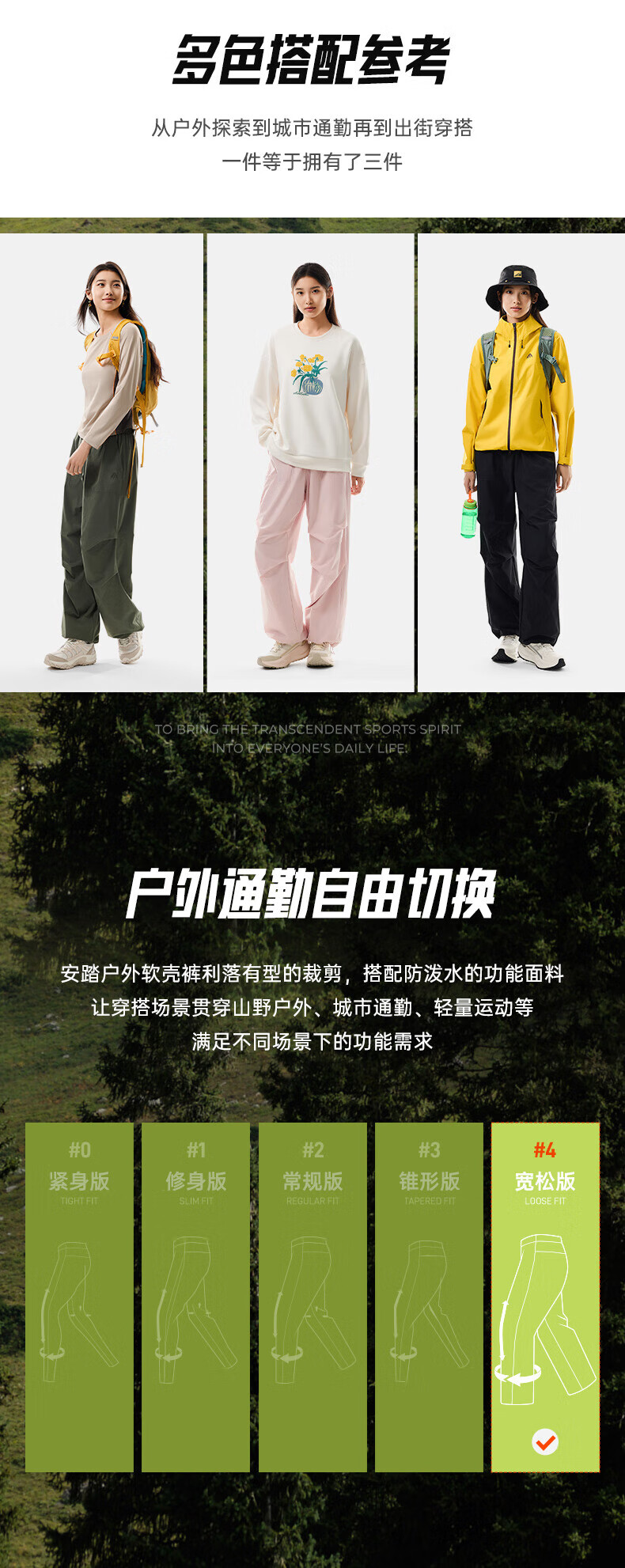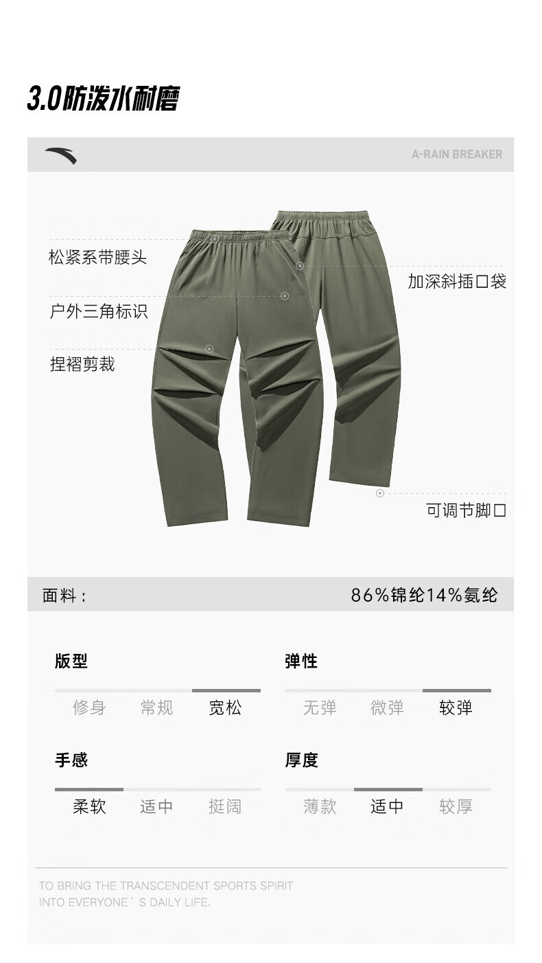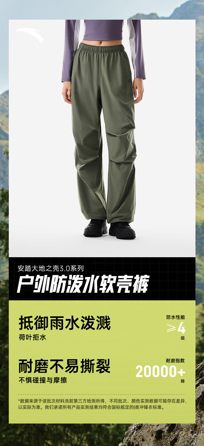 安踏山壳裤丨大地之壳3.0户外伞兵裤女款冬季防泼水耐磨运动长裤