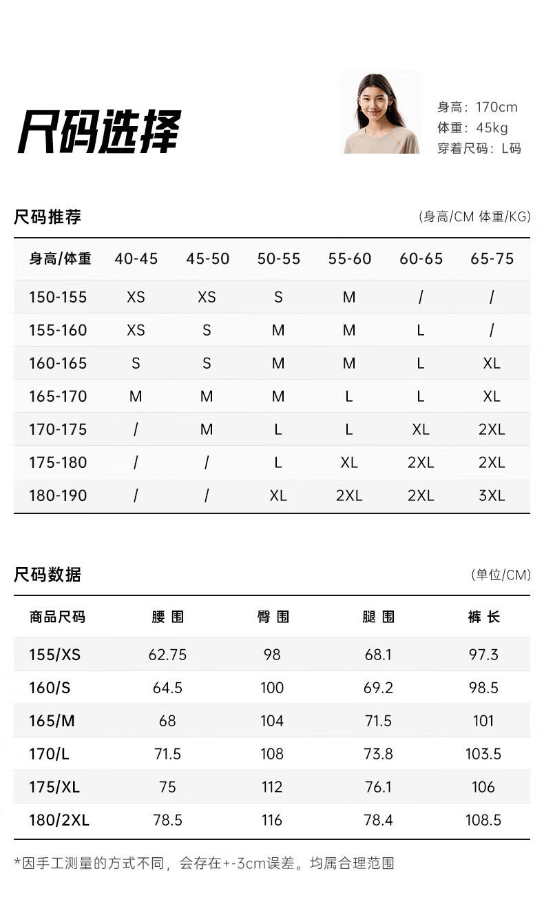 China (cm) 160-165/84-86 165-170 / 88-90 167-172 / 92-96 168-173 / 98-102 170-176 / 106-110