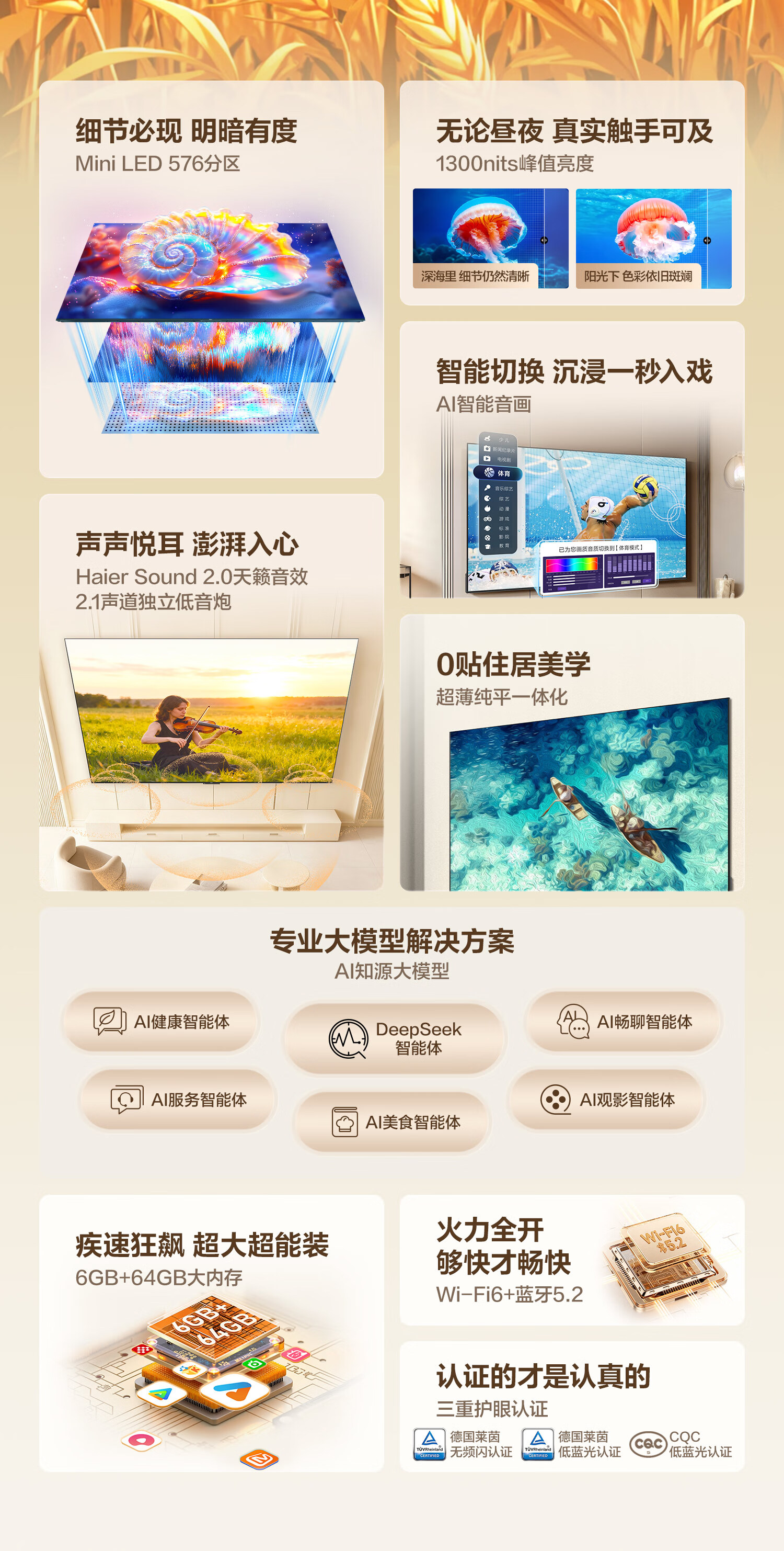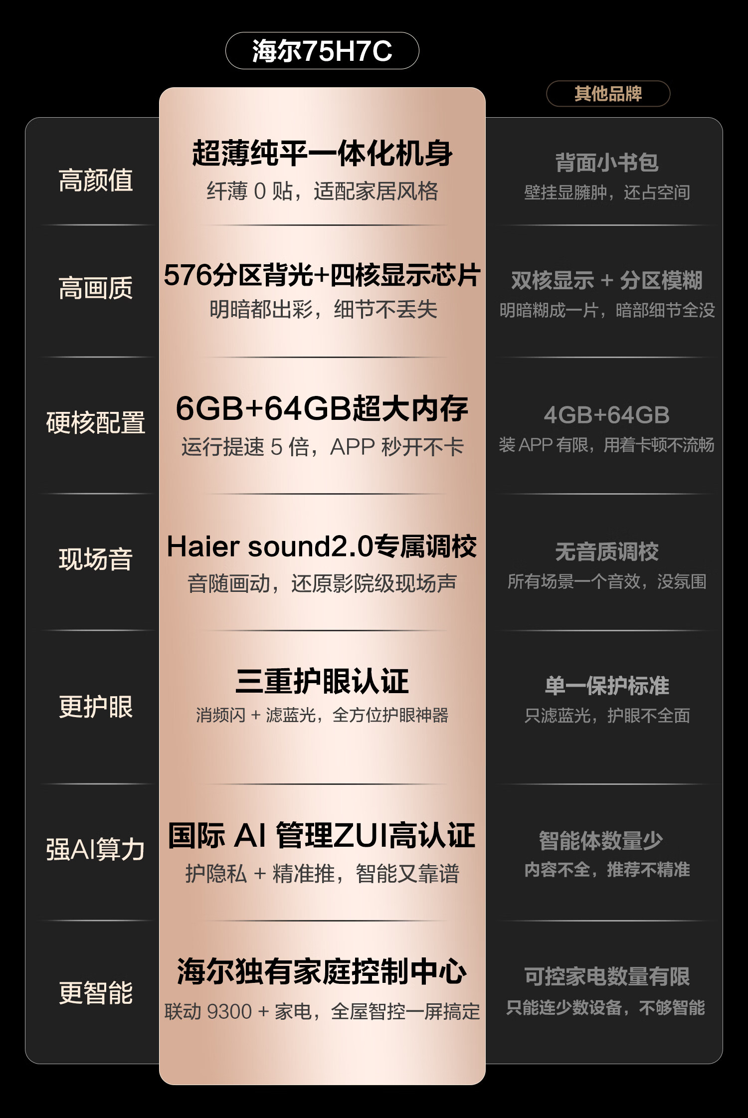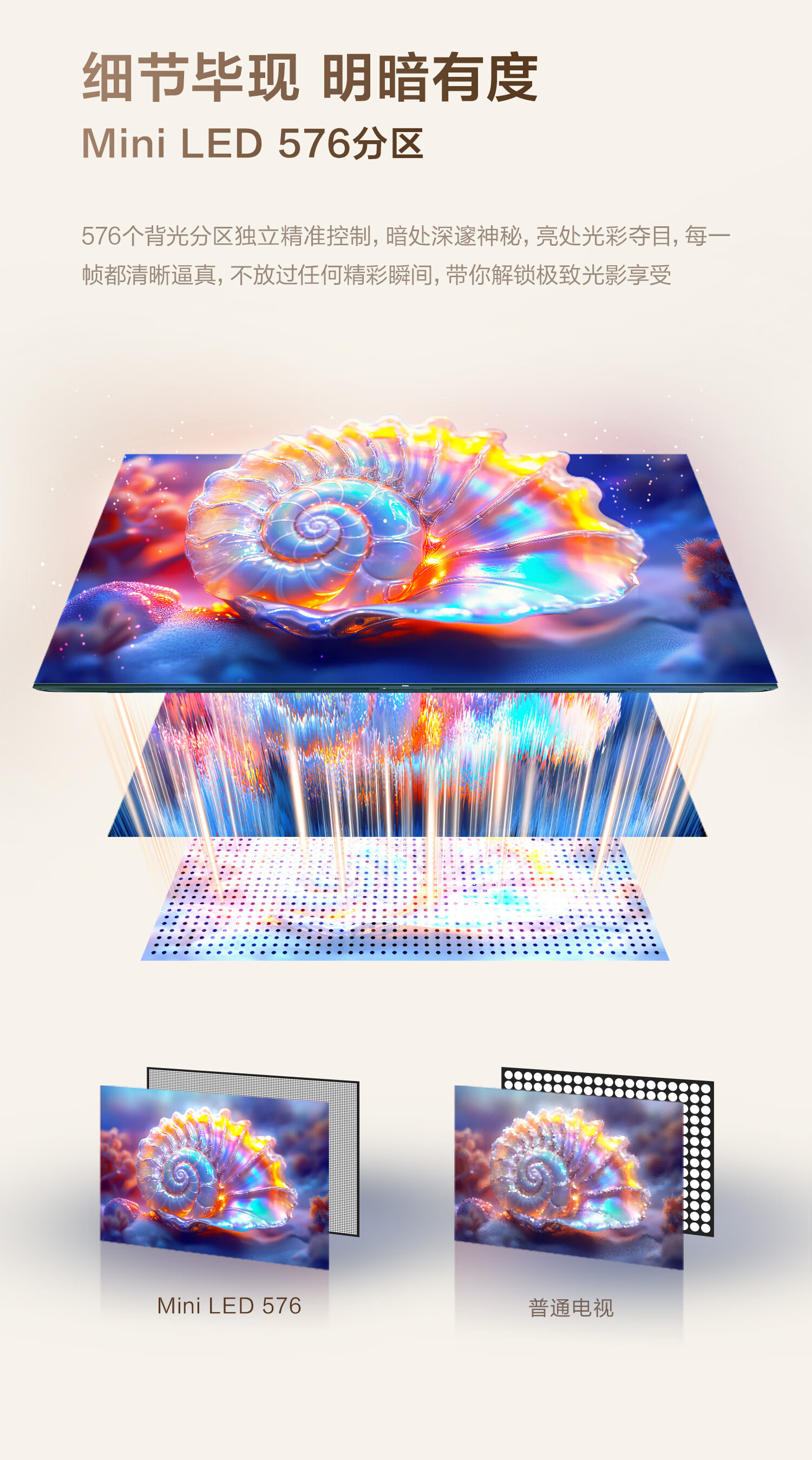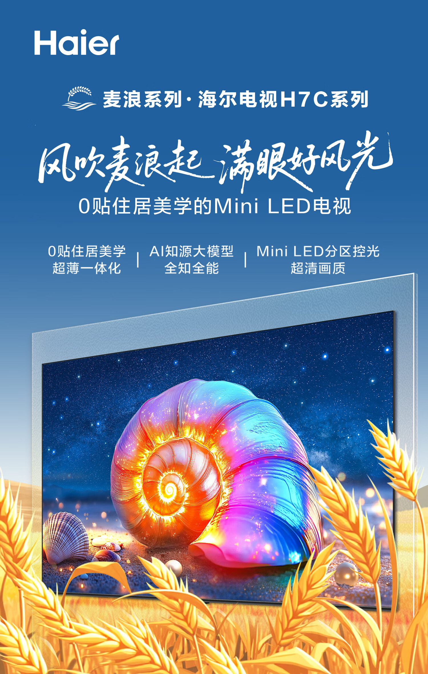 海尔(Haier)【麦浪套系】电视75H7C 75英寸 超薄0贴 MiniLED 576分区 6+64GB 240Hz高刷游戏 国家补贴一级能效