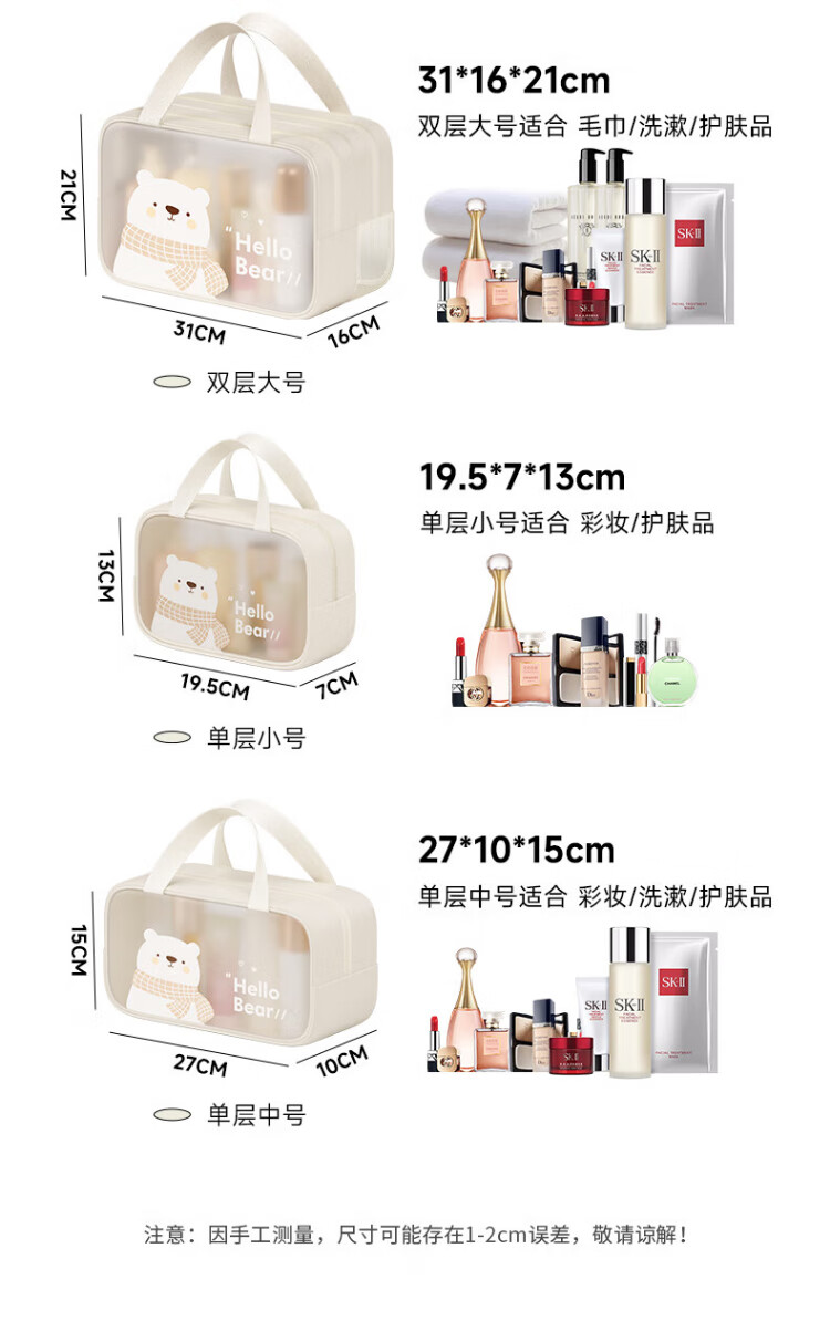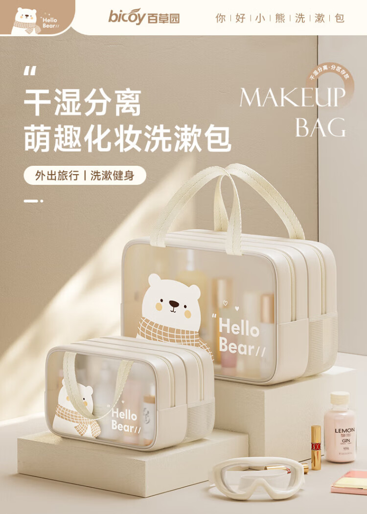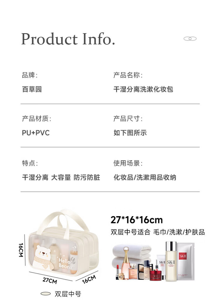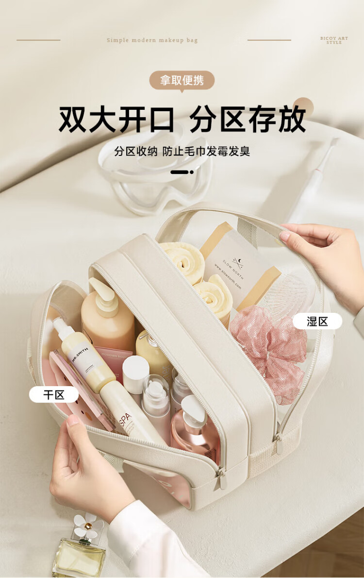 Baicaoyuan toiletry bag large capacity cosmetic bag dry and wet separation travel toiletry bag storage bag swimming bag bath bag double layer large