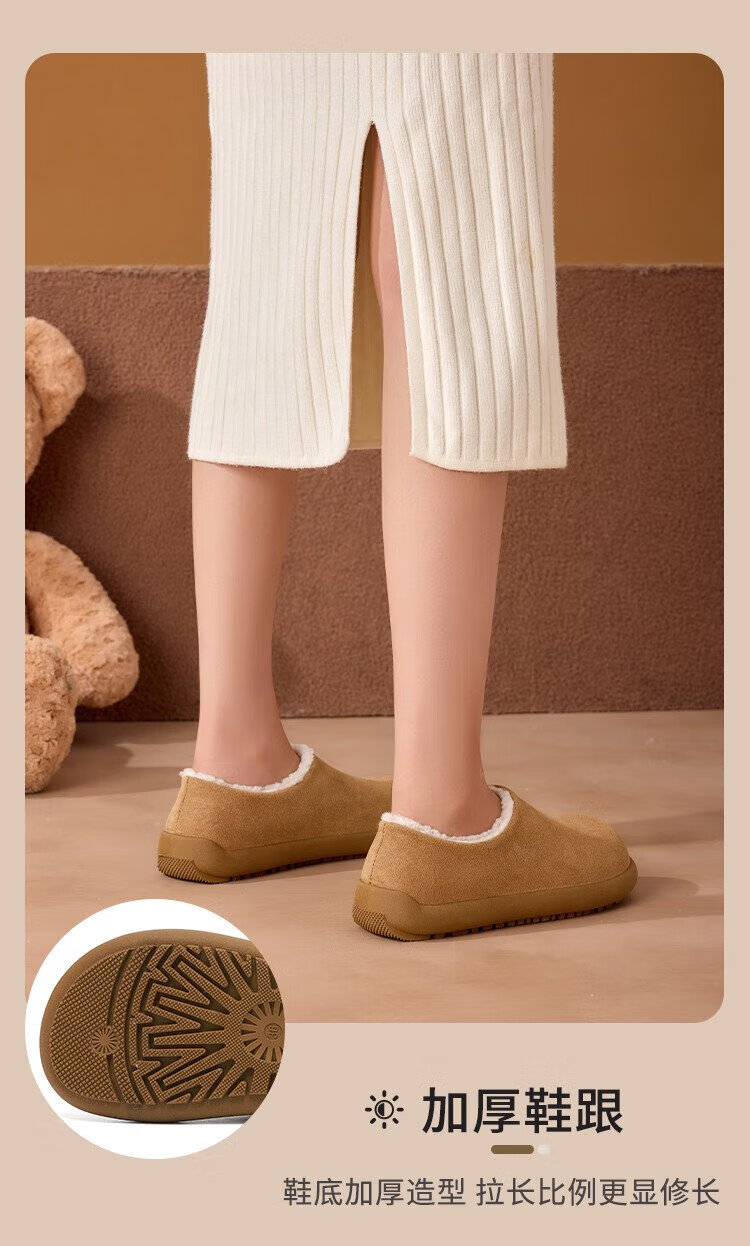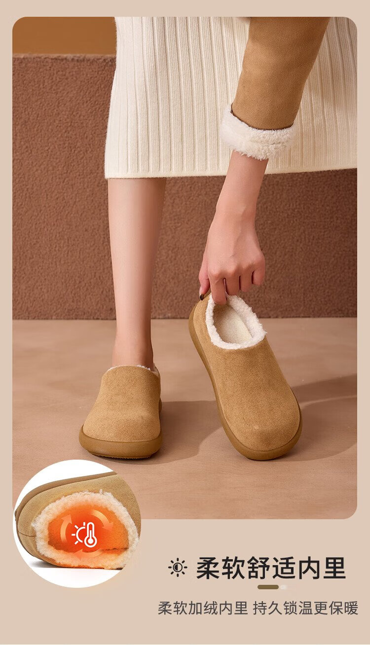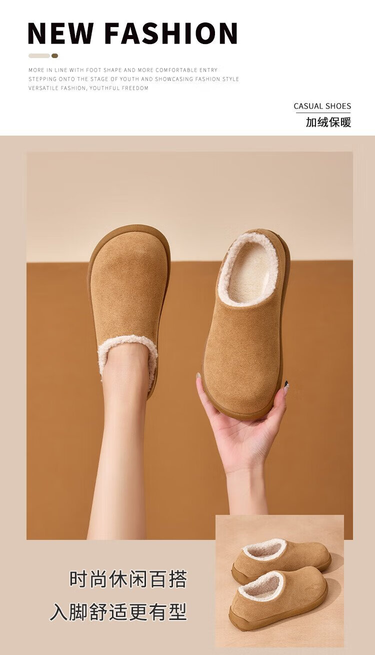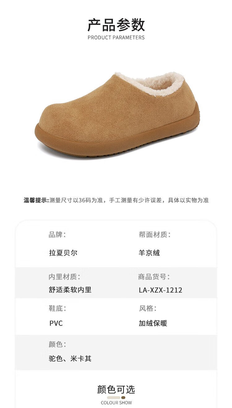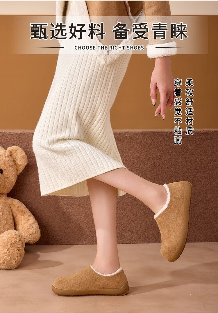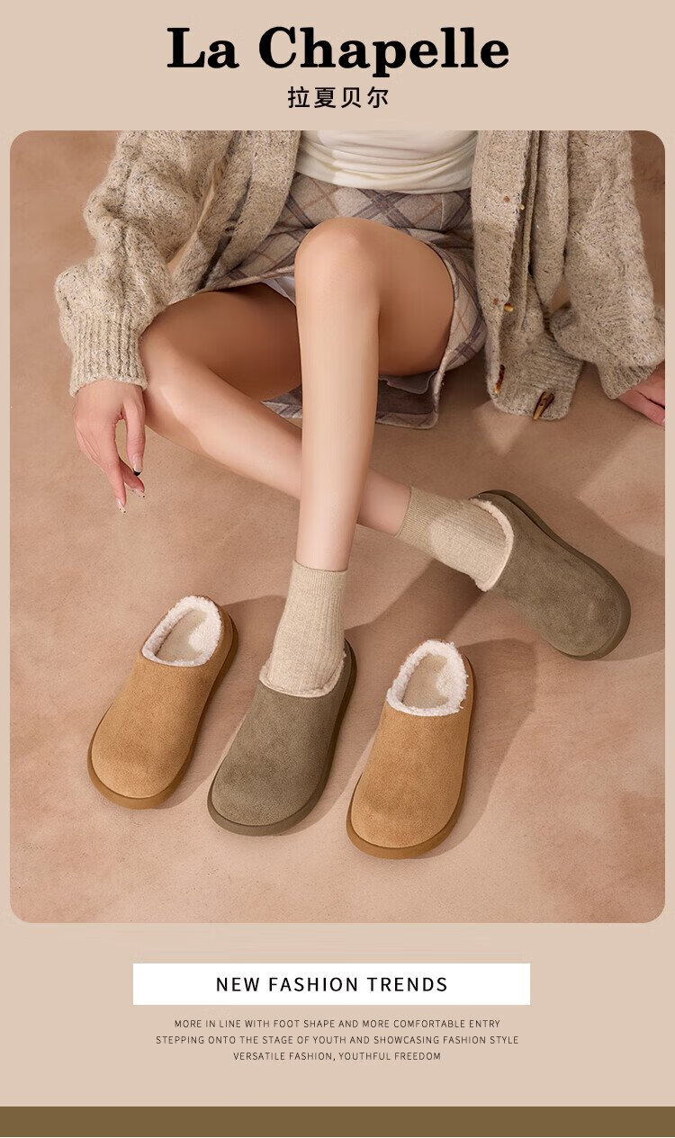 La Chapelle women's shoes plus velvet Birkenstock shoes small potato shoes autumn and winter new warm slip-on flat-heeled cotton shoes Mikaki 37