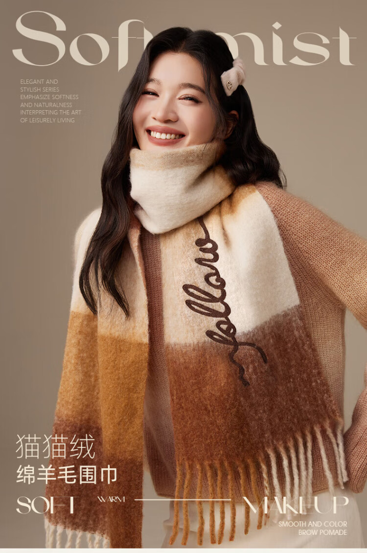 CACUSS wool scarf women's autumn and winter high-end large shawl warm neck scarf Christmas birthday gift for girls gift box