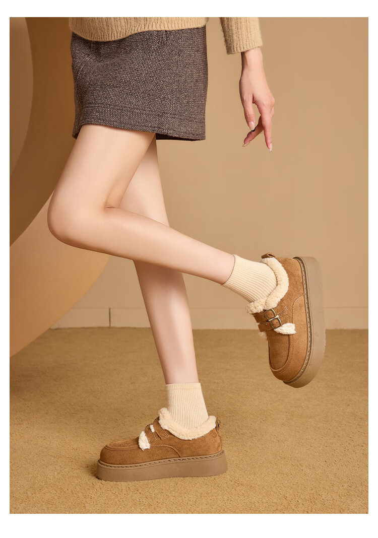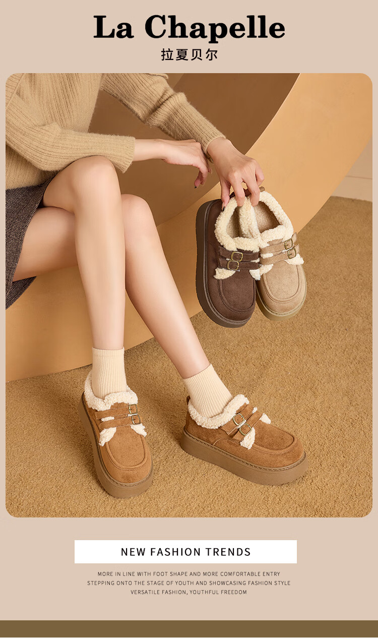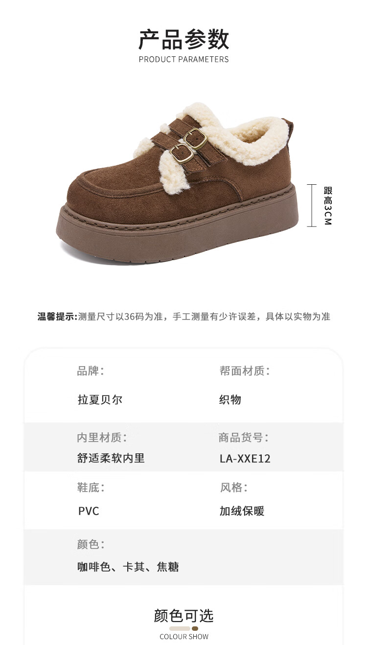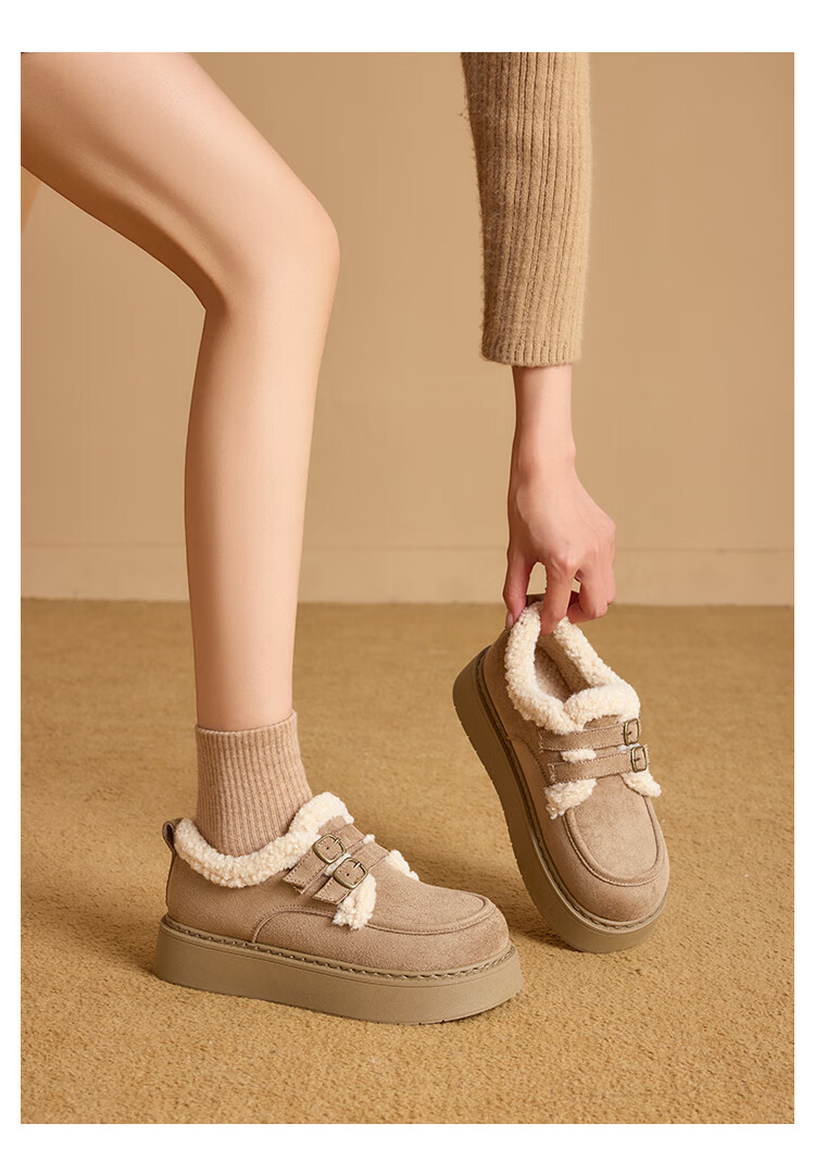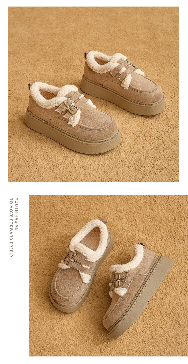 La Chapelle women's shoes new winter cotton shoes plus velvet bread shoes thick soles to increase height and keep warm Birkenstock shoes for women E12 Khaki 36