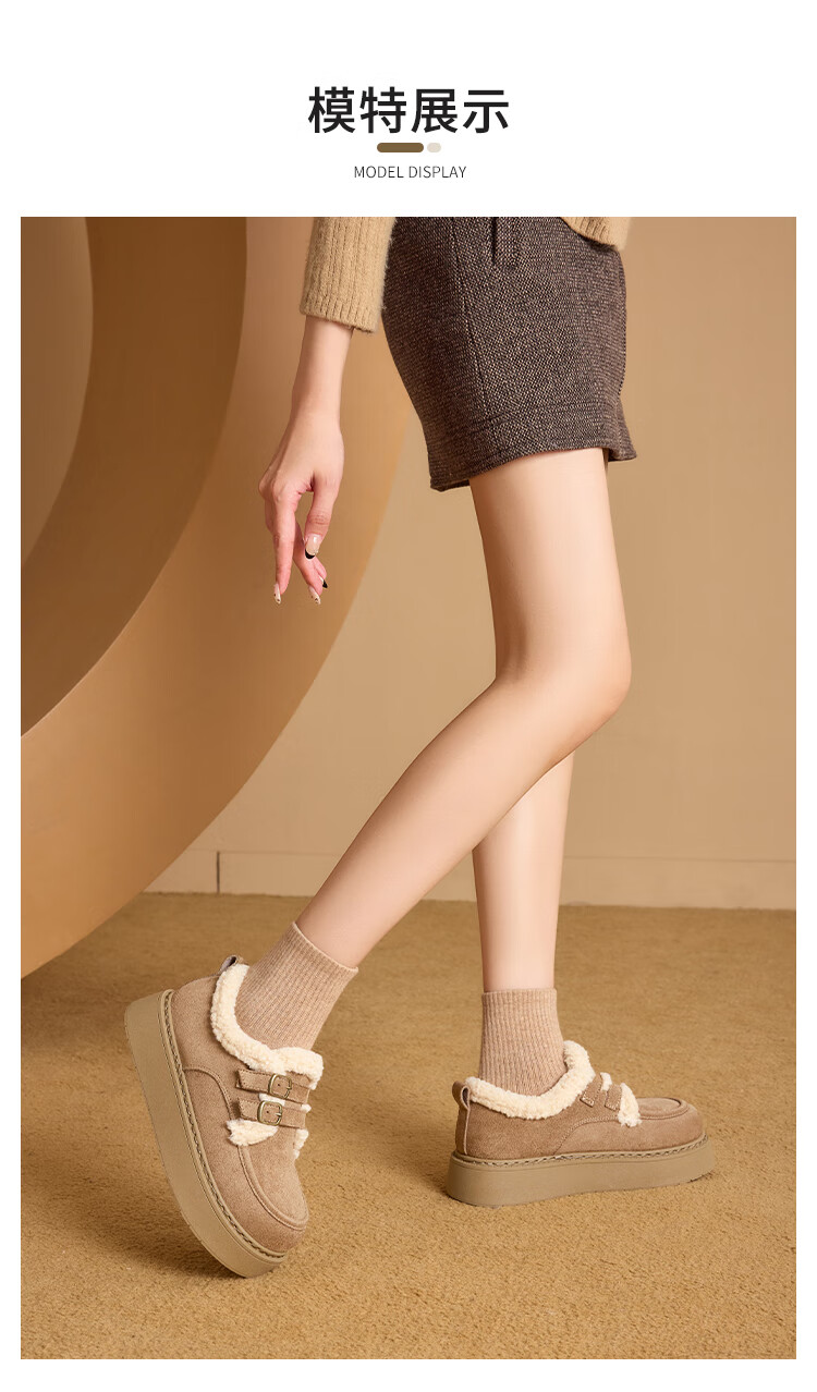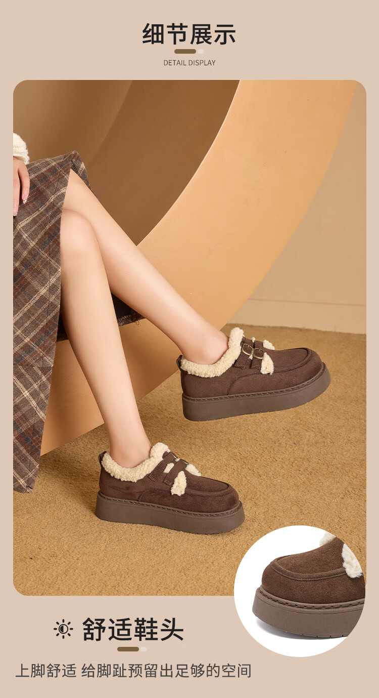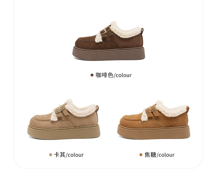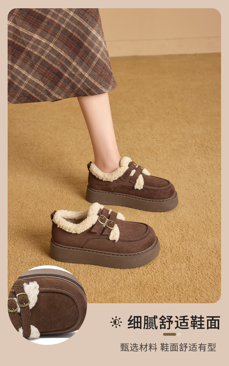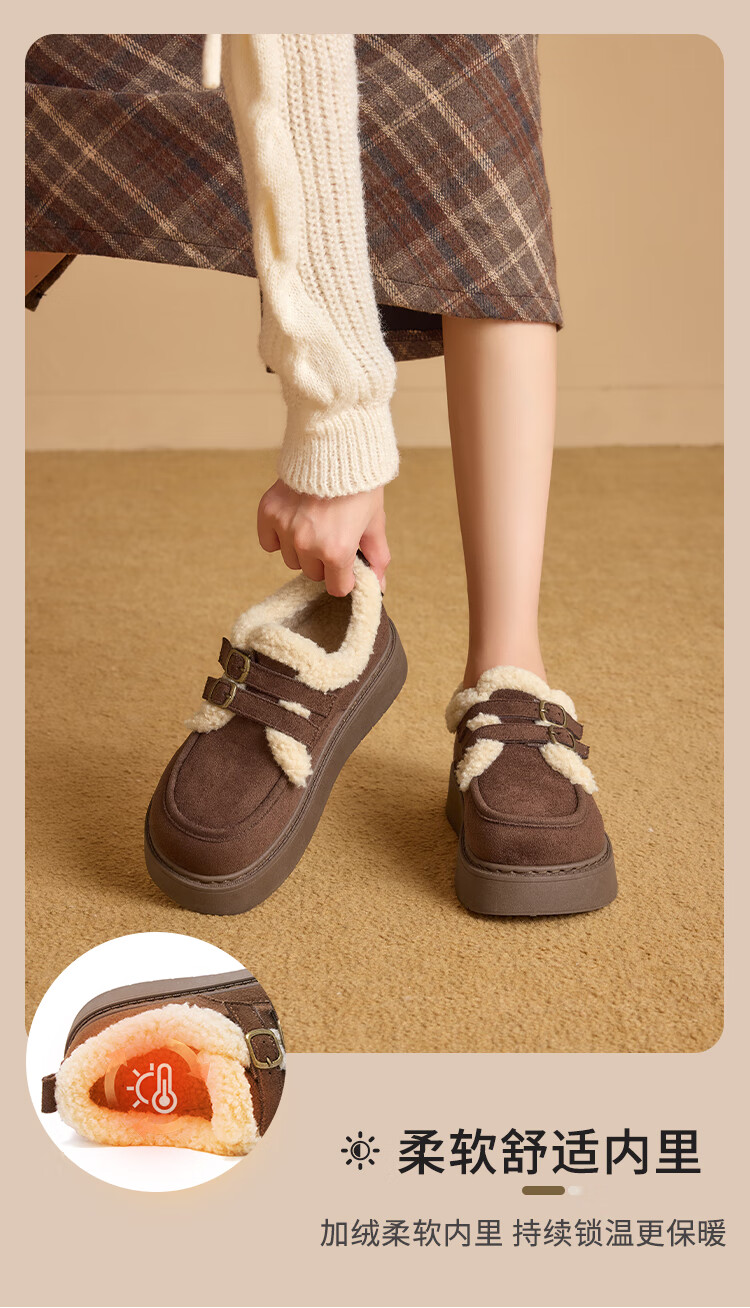 La Chapelle women's shoes new winter cotton shoes plus velvet bread shoes thick soles to increase height and keep warm Birkenstock shoes for women E12 Khaki 36
