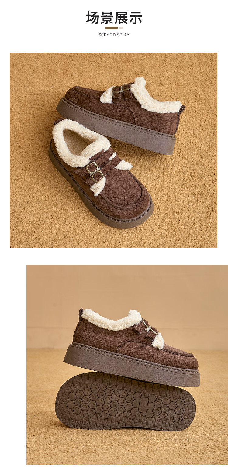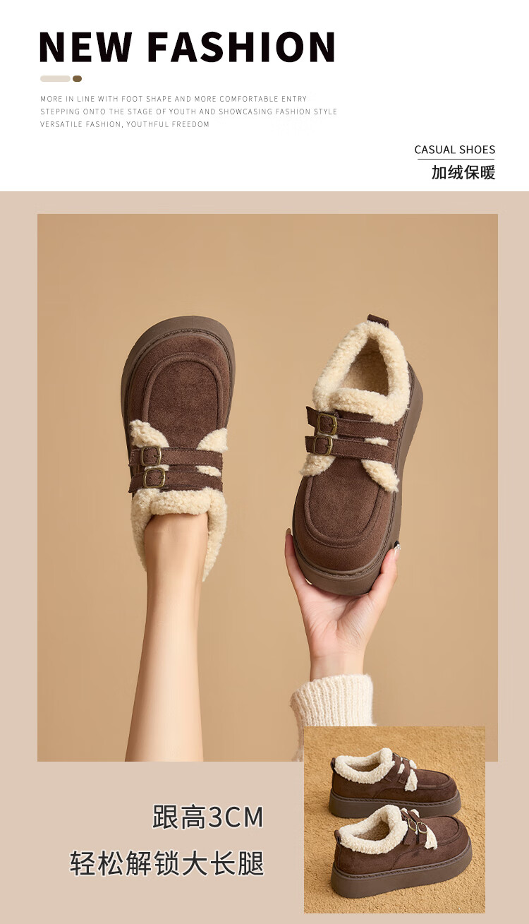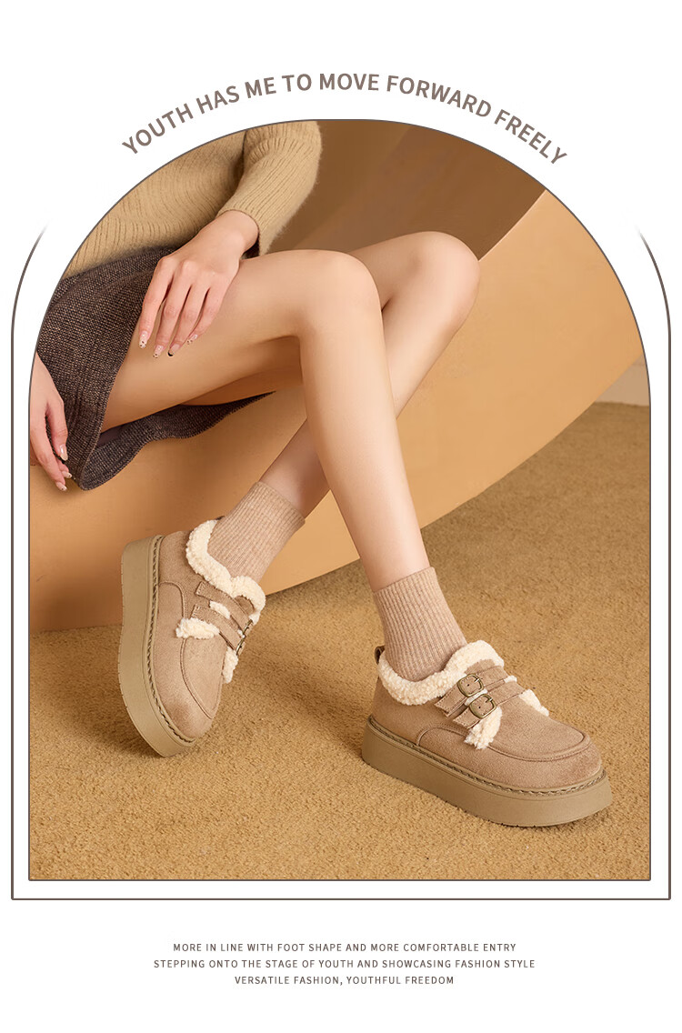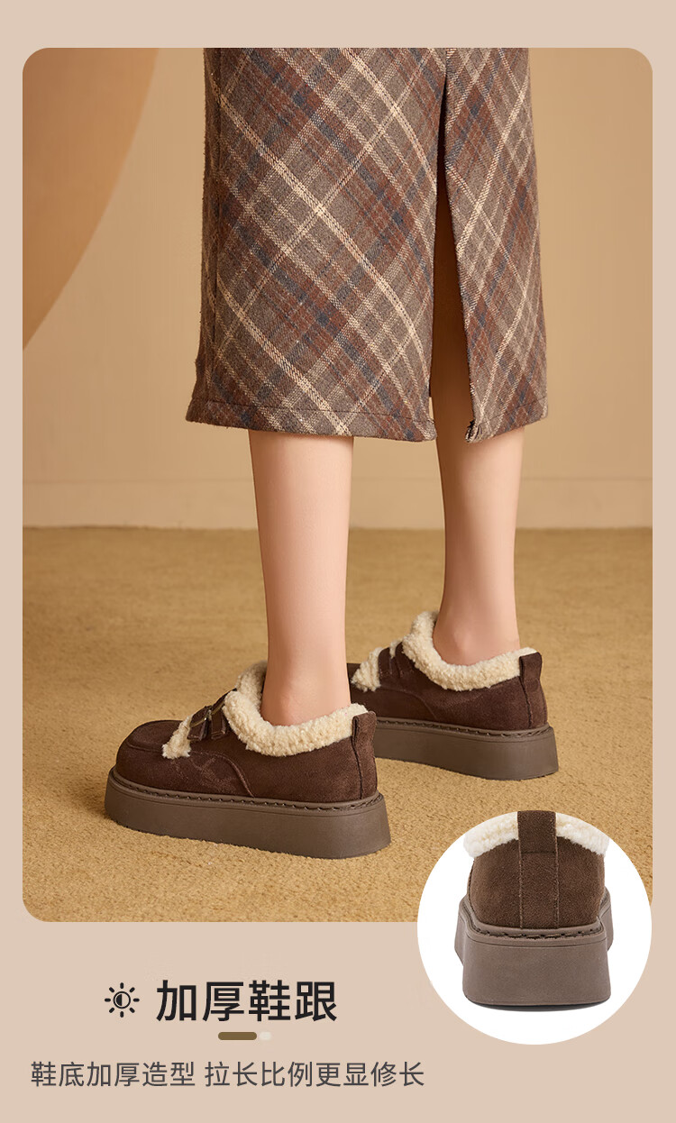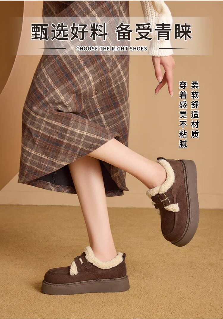 La Chapelle women's shoes new winter cotton shoes plus velvet bread shoes thick soles to increase height and keep warm Birkenstock shoes for women E12 Khaki 36