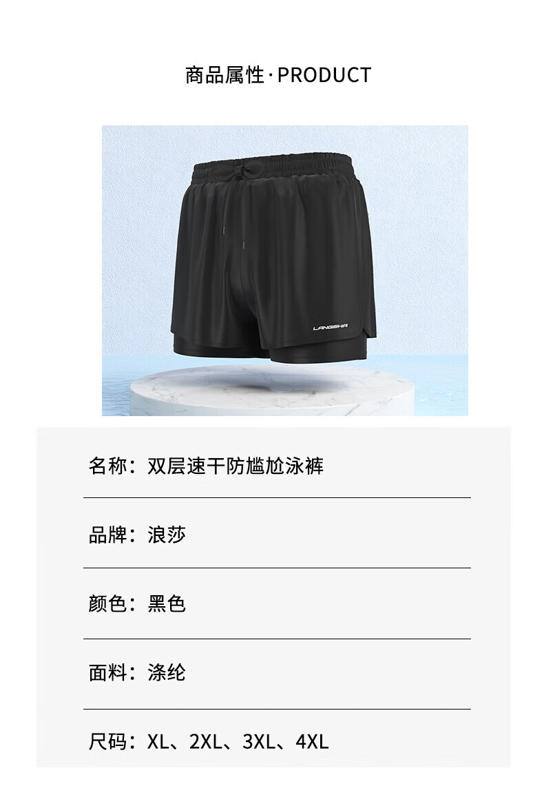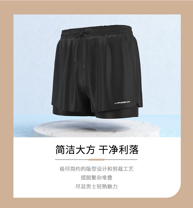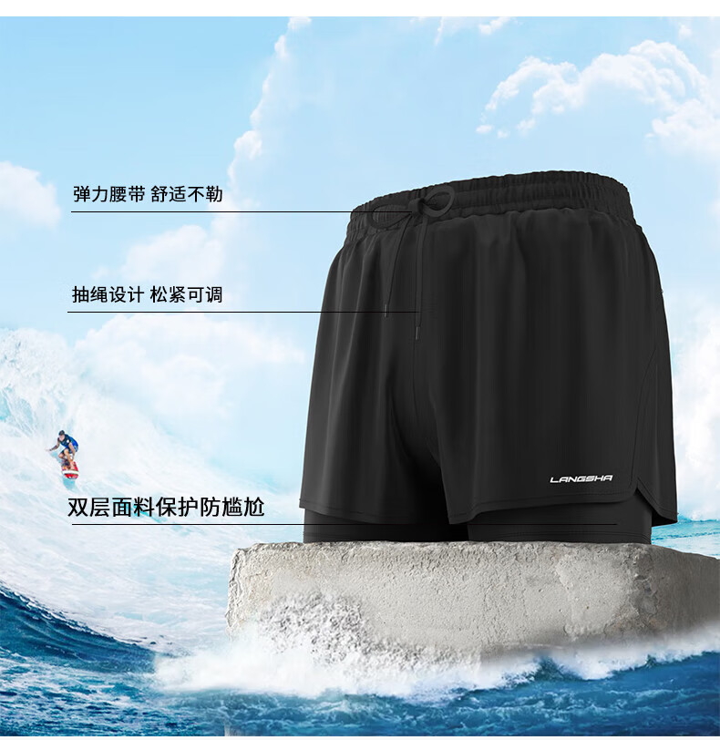 LangSha swimming trunks men's anti-embarrassment double-layer quick-drying loose boxer swimming trunks hot spring seaside vacation beach trunks