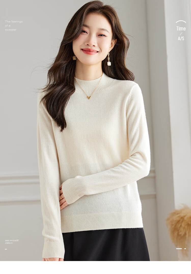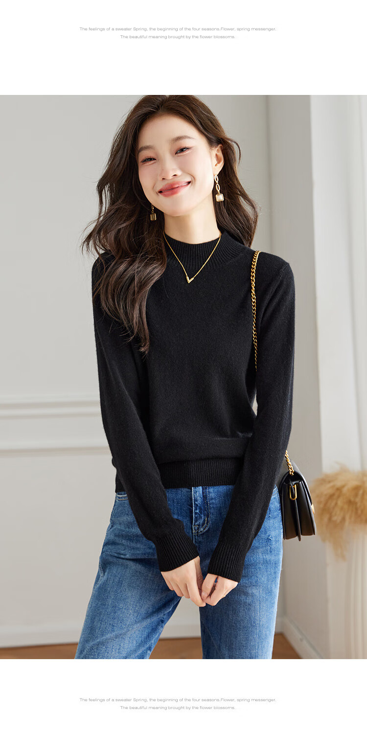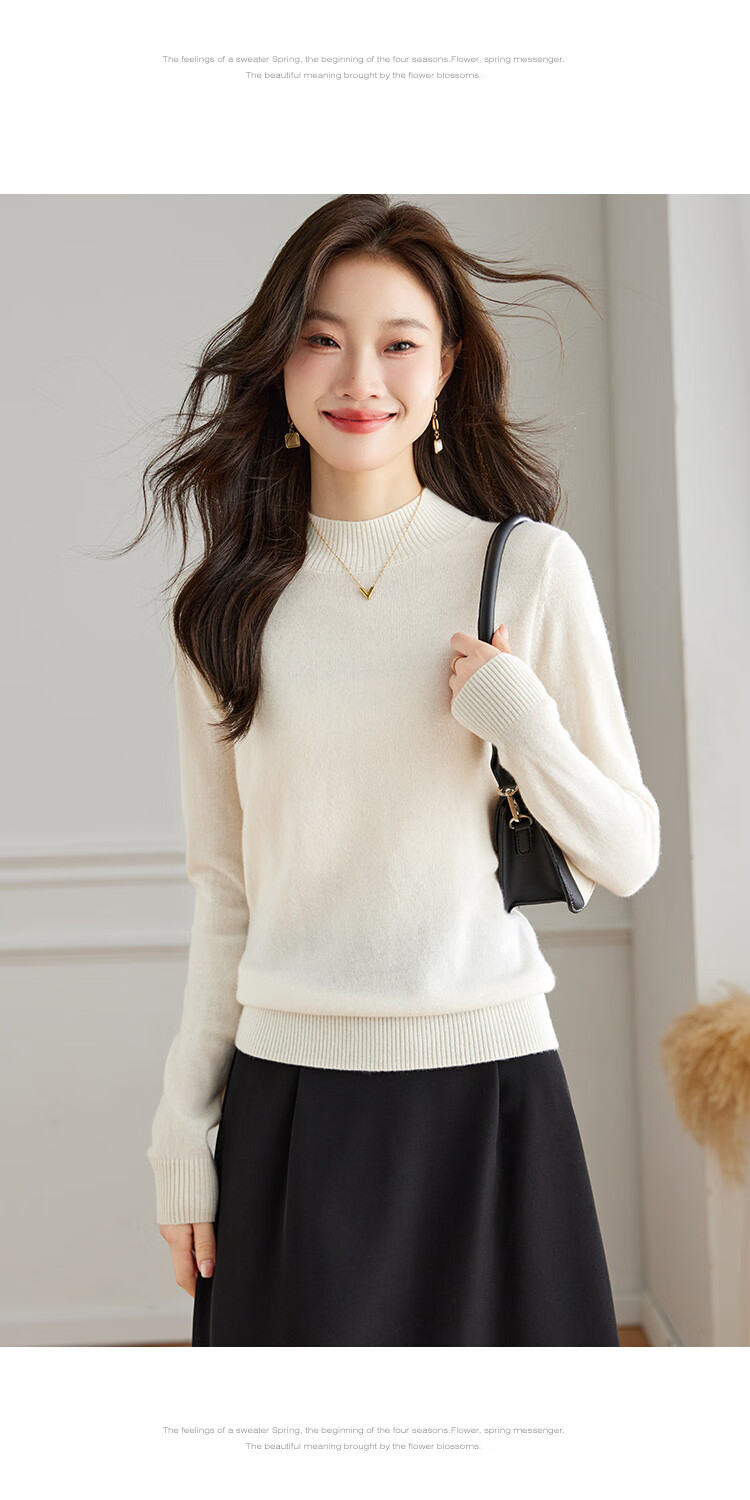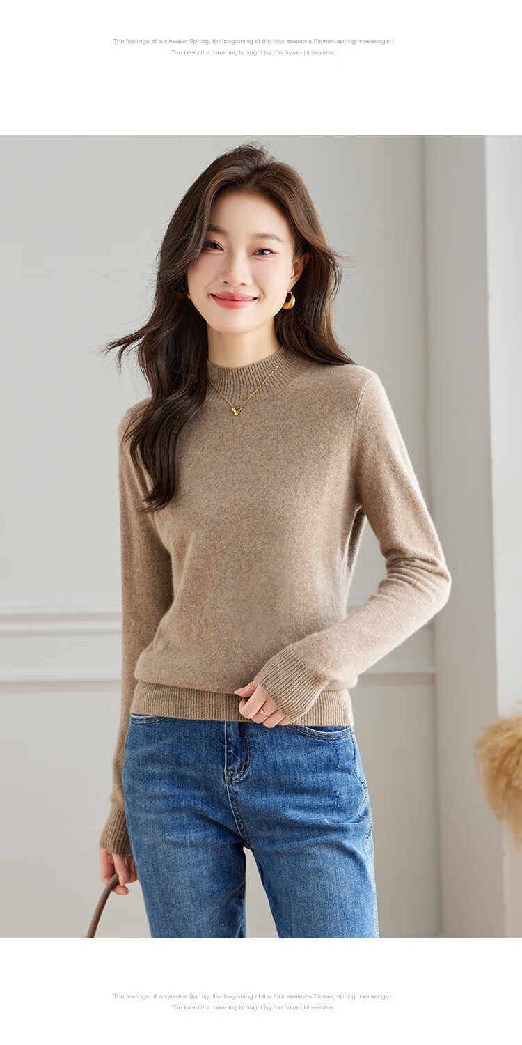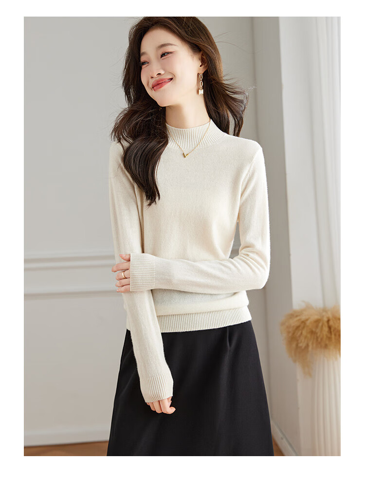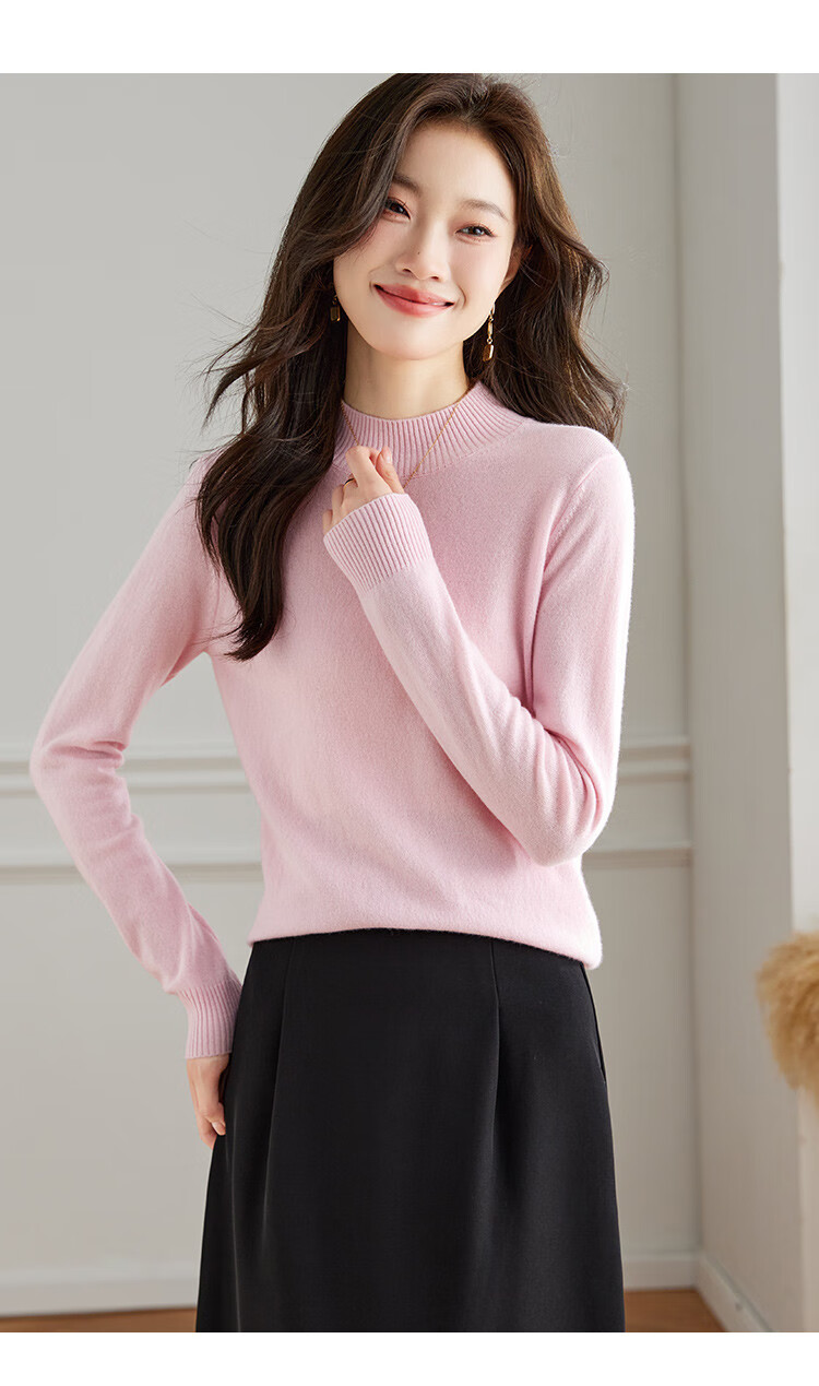 Srcr Cashmere Sweater Women's 100% Cashmere Soft Waxy Sweater Paired with Spring and Autumn Half Turtle Collar Knitted Bottoming Sweater