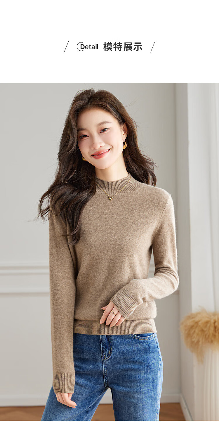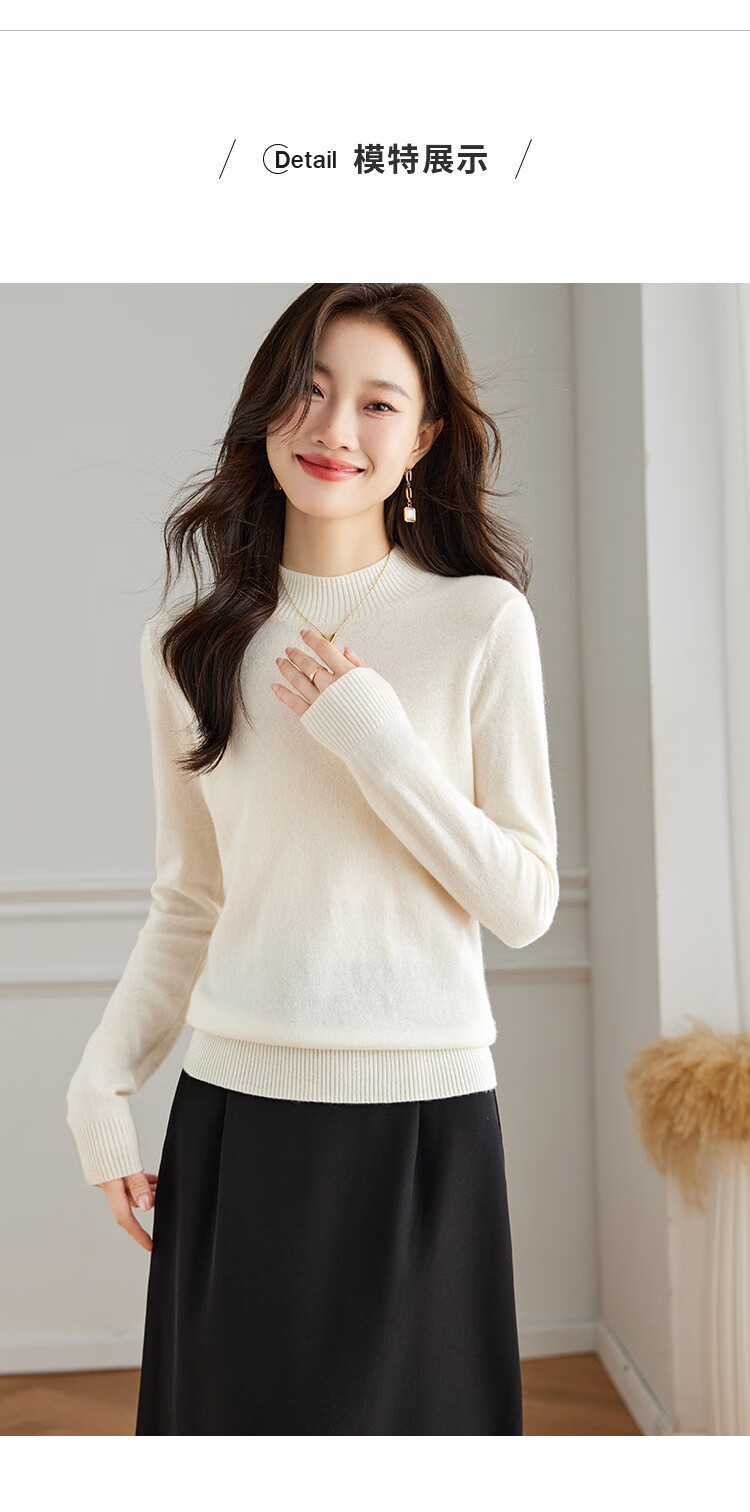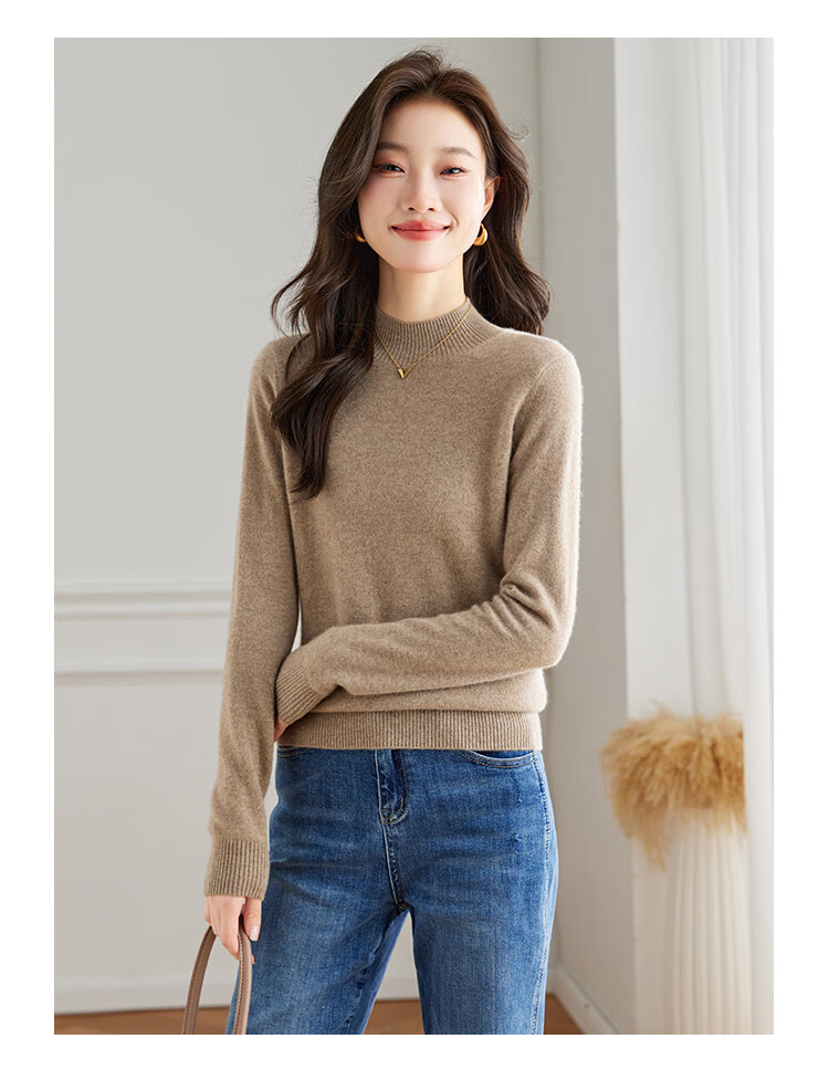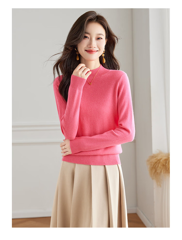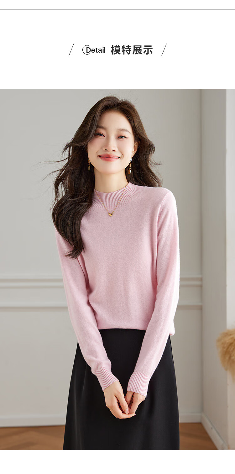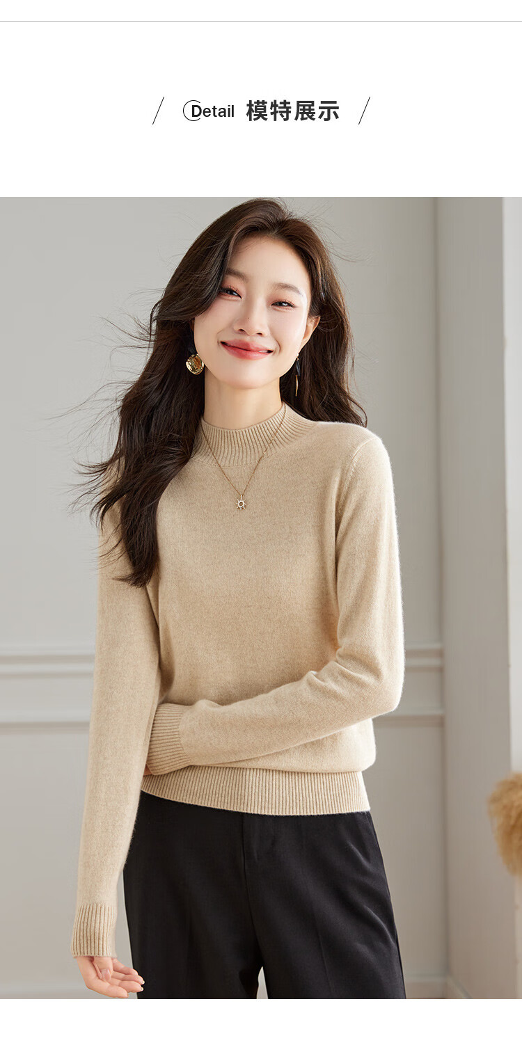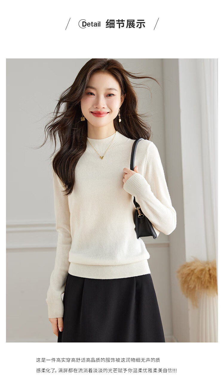 Srcr Cashmere Sweater Women's 100% Cashmere Soft Waxy Sweater Paired with Spring and Autumn Half Turtle Collar Knitted Bottoming Sweater