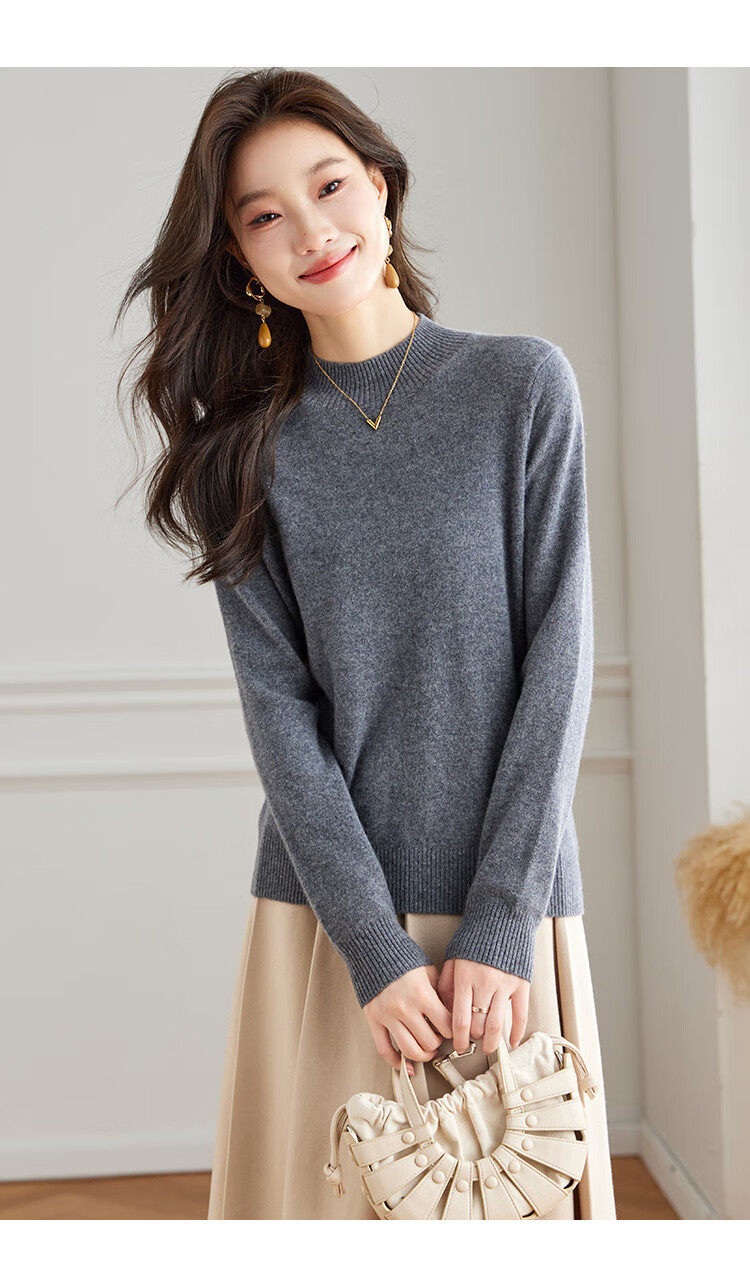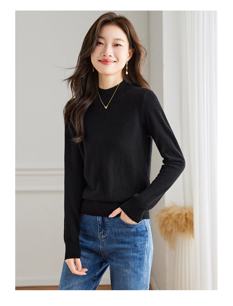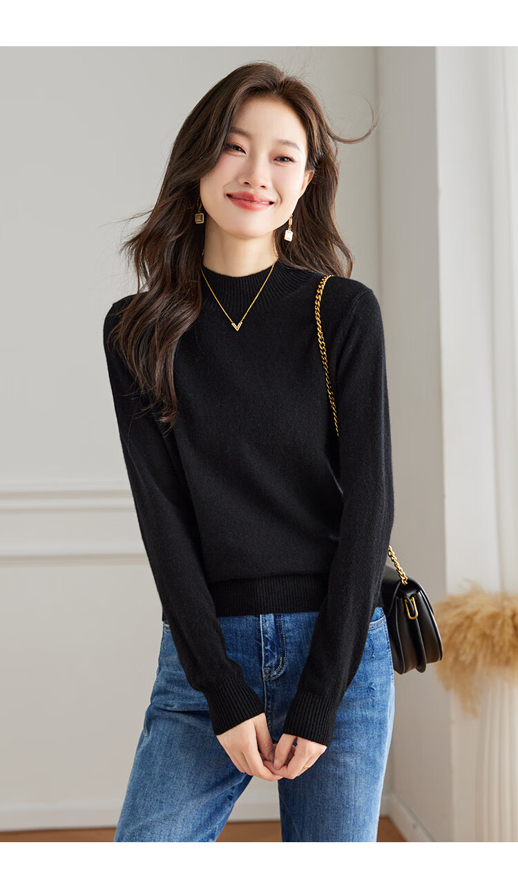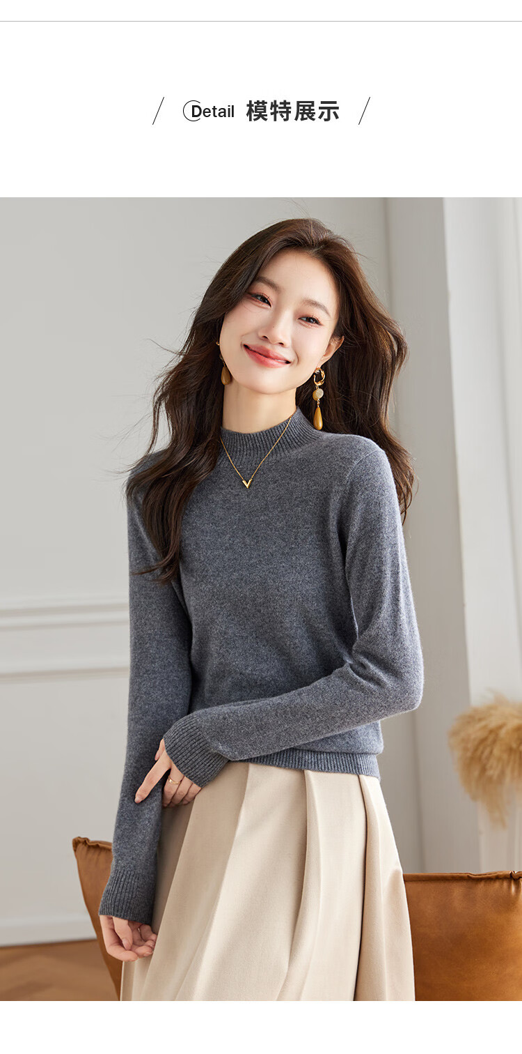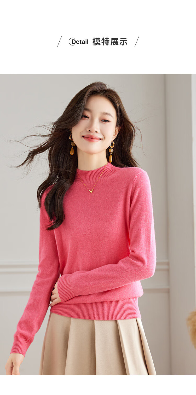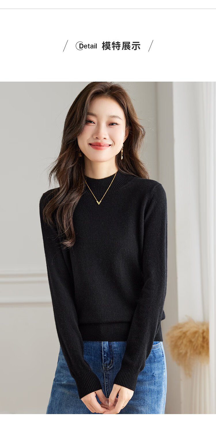 Srcr Cashmere Sweater Women's 100% Cashmere Soft Waxy Sweater Paired with Spring and Autumn Half Turtle Collar Knitted Bottoming Sweater