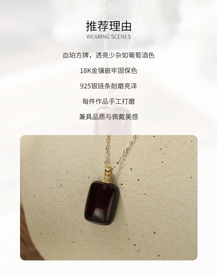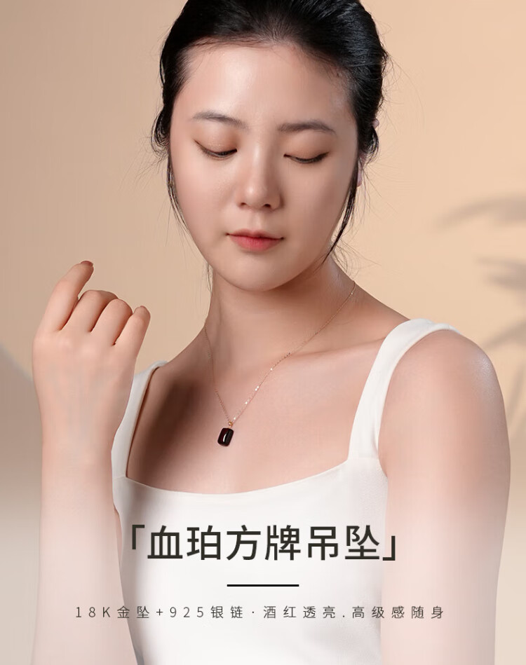 Dara 18K gold blood amber pendant Ping An Wu Shi brand beeswax amber clavicle necklace Chinese Valentine's Day gift for girlfriend