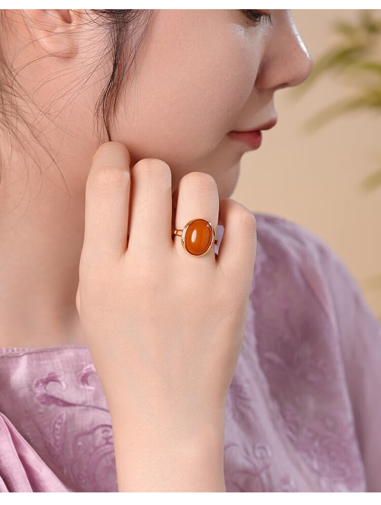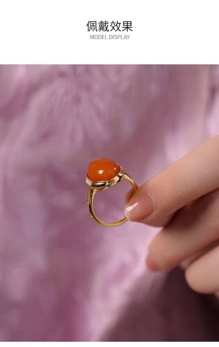 Dara beeswax ring open single ring S925 silver gold-plated old wax women's ring for mother in the year of birth, Chinese Valentine's Day gift for girlfriend