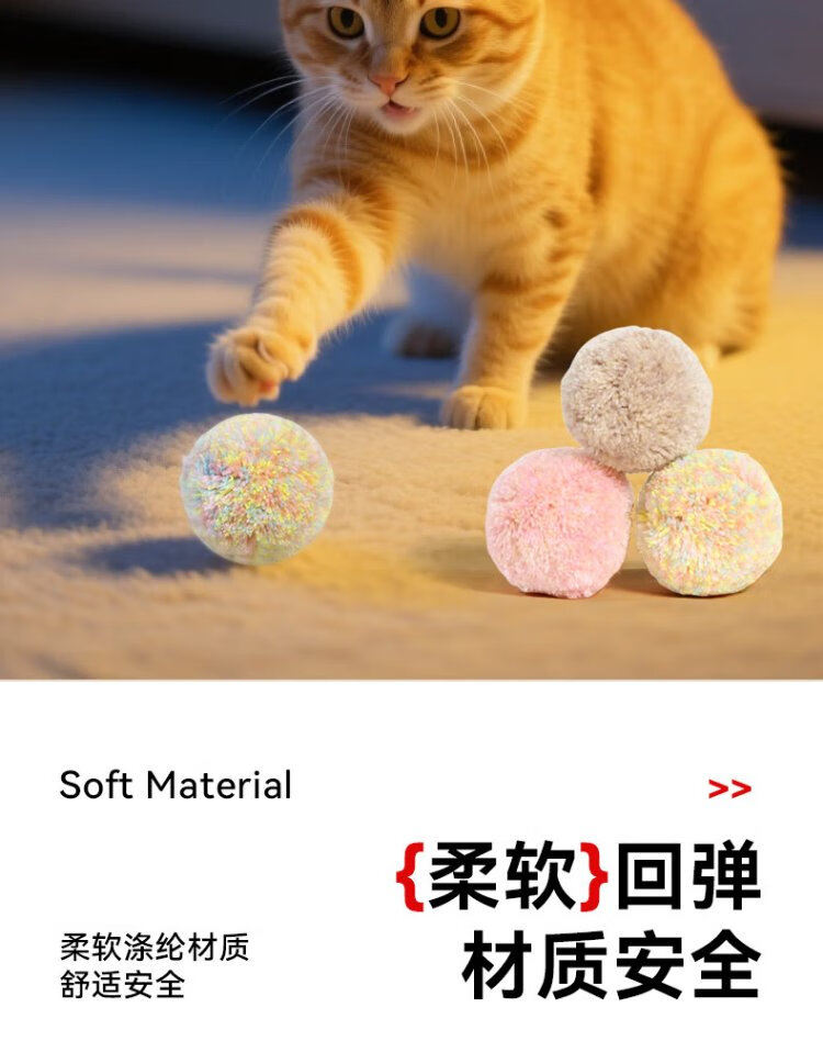 EETOYS cat self-pleasure silent fur ball cat toy cat amusing cat fur ball elastic plush ball relieves boredom and bite-resistant pet toy