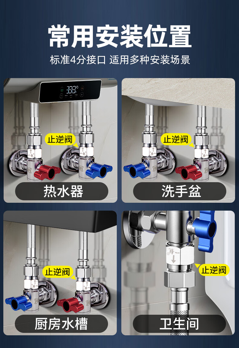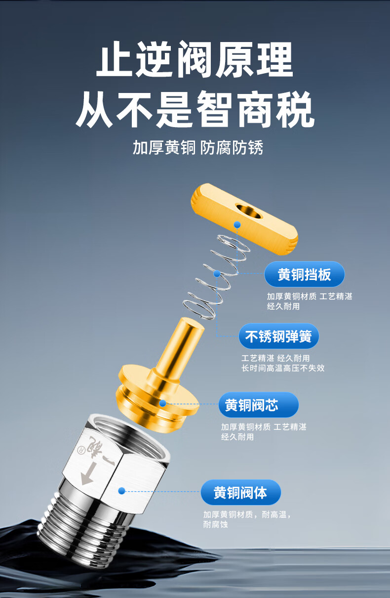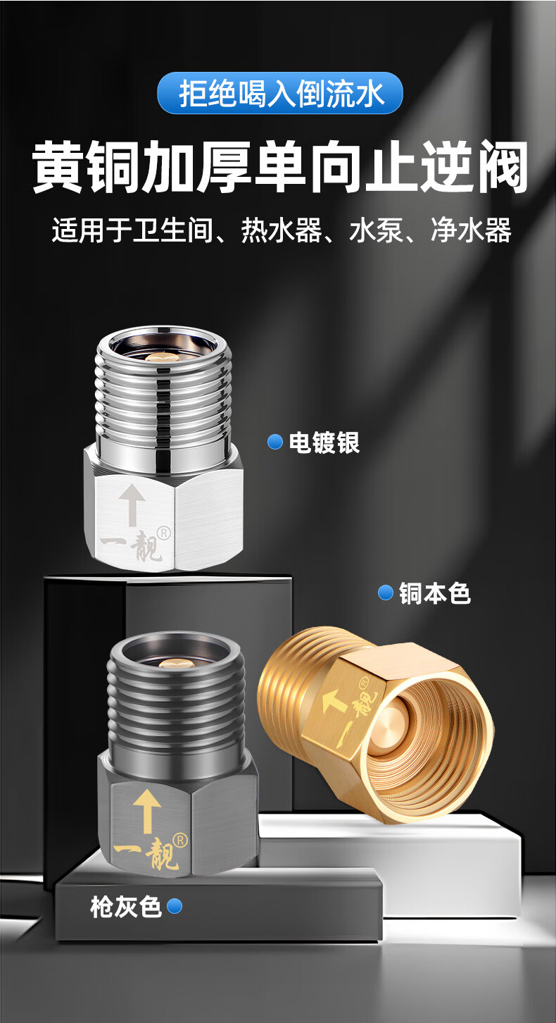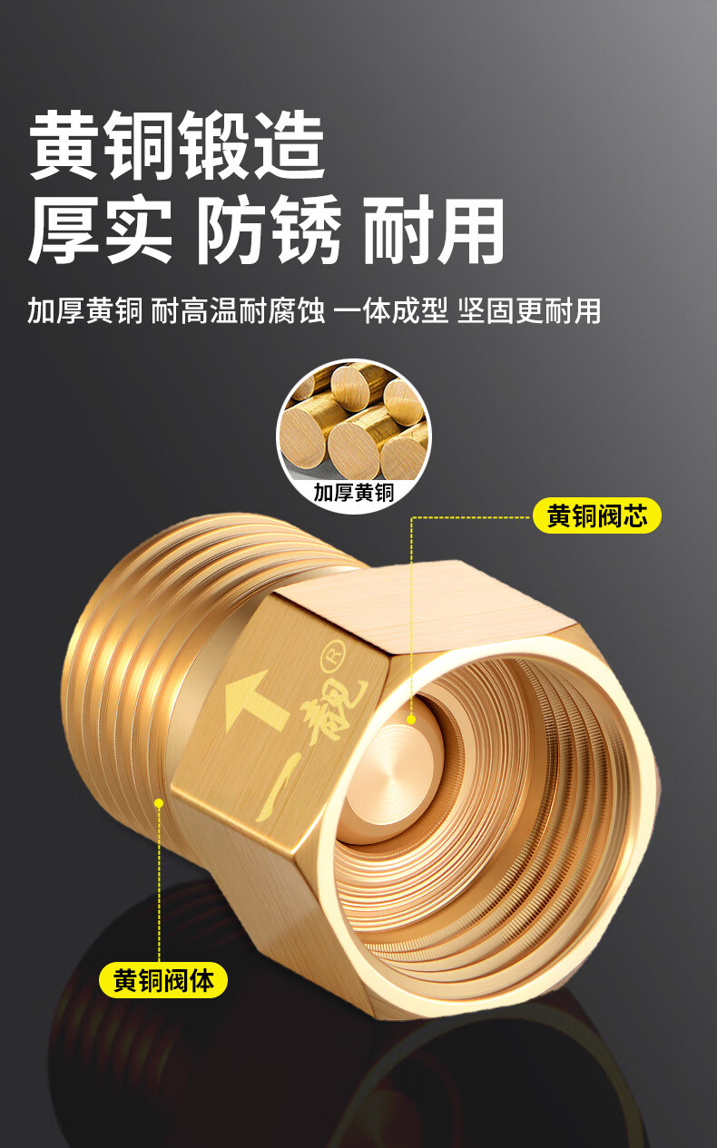 A beautiful brass one-way check valve to prevent water backflow 4-point check valve public toilet pipe toilet check valve copper color 4-point inner wire flows to the outer wire