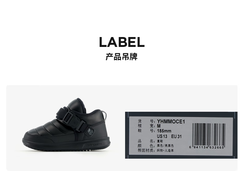 NEW BALANCE 4-14 year old boys and girls plus velvet buckle windproof and warm children's cotton boots